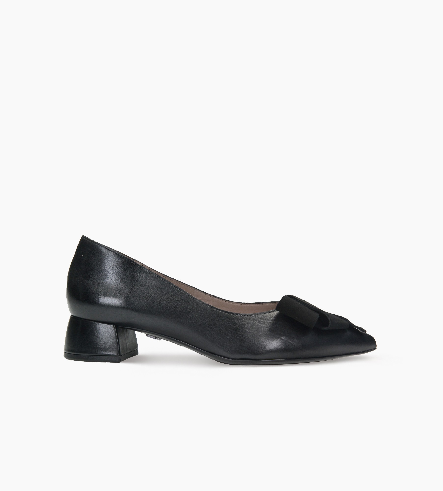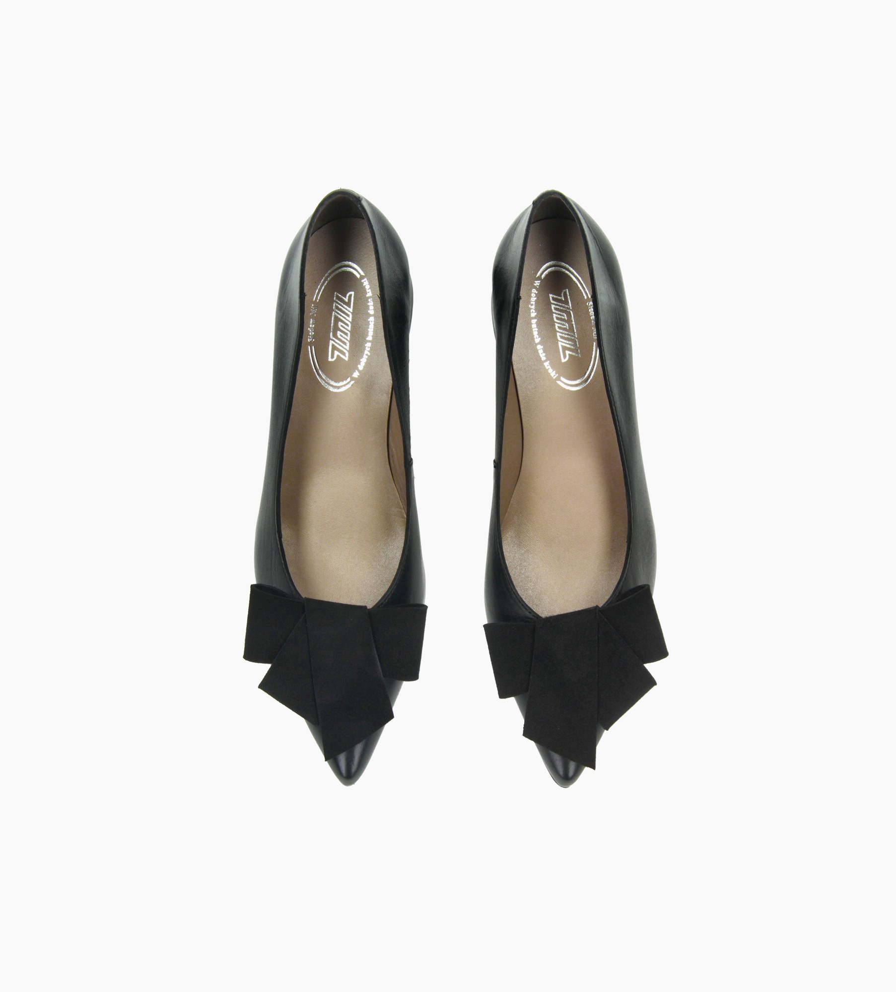Eleganckie czółenka wykonane z naturalnej skóry cielęcej, zaprojektowane z myślą o kobietach ceniących klasykę. Model osadzony na stabilnym, niskim obcasie zapewnia komfort noszenia przez cały dzień, nie rezygnując z eleganckiego wyglądu. Wnętrze wyściełane miękką skórą jagnięcą gwarantuje wygodę, oddychalność i luksusowe wykończenie. Czółenka wyróżnia efektowna, zamszowa kokarda o architektonicznej formie, która stanowi subtelny, ale wyrazisty element dekoracyjny. To ponadczasowy model, który doskonale sprawdzi się w pracy, podczas spotkań czy uroczystości, łącząc styl, wygodę i perfekcyjne wykonanie.