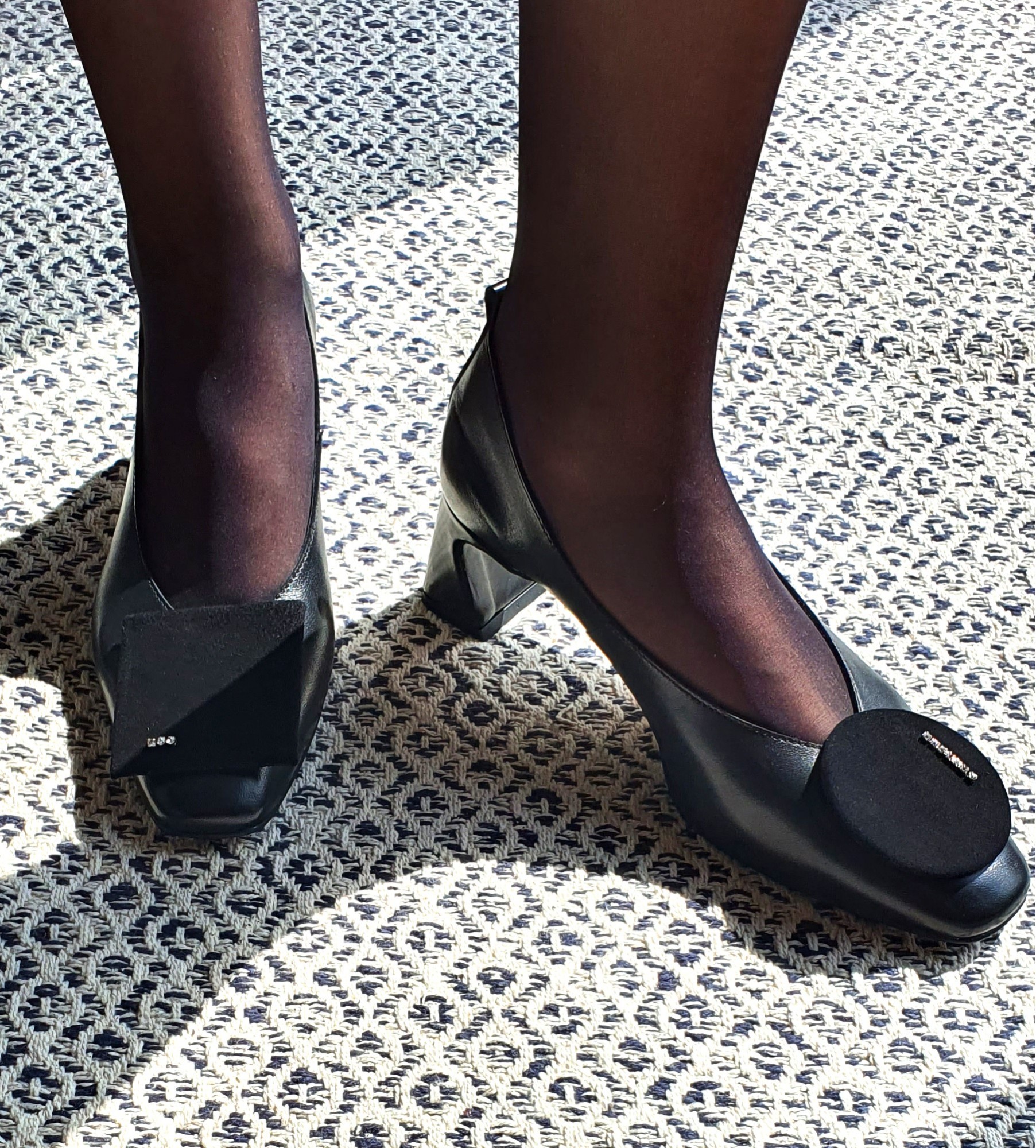 Wyjątkowe czółenka to połączenie klasycznego szyku z nowoczesnym podejściem do detalu. Wykonane z naturalnej skóry licowej, zachwycają prostotą formy i perfekcyjnym wykończeniem. Osadzone na modnym, stabilnym obcasie o subtelnej linii, zapewniają komfort użytkowania i lekkość kroku przez cały dzień. Najmocniejszym akcentem jest geometryczna ozdoba na nosku – kwadratowa lub okrągła, która nadaje butom oryginalnego charakteru. To model stworzony dla kobiet, które cenią wyrafinowany minimalizm z odrobiną artystycznego wyrazu.
