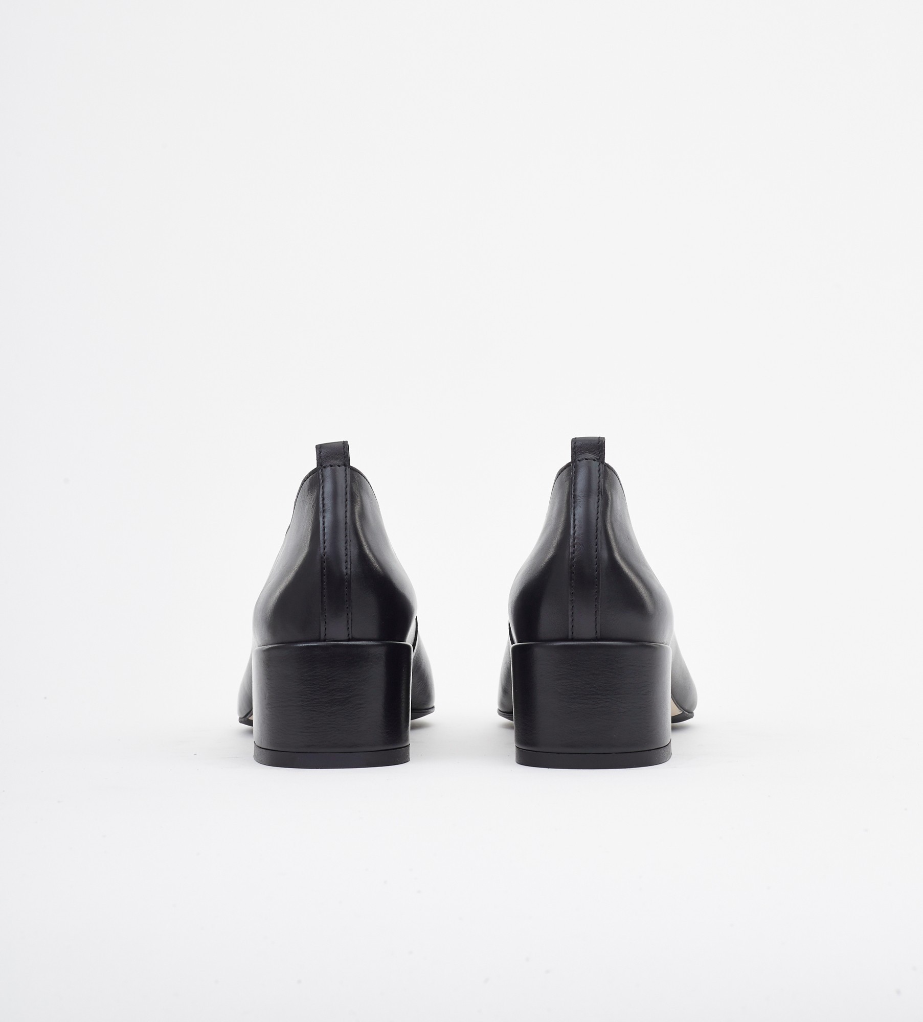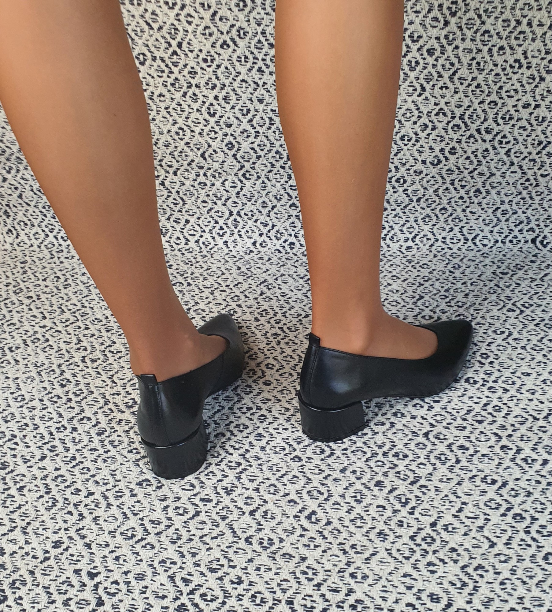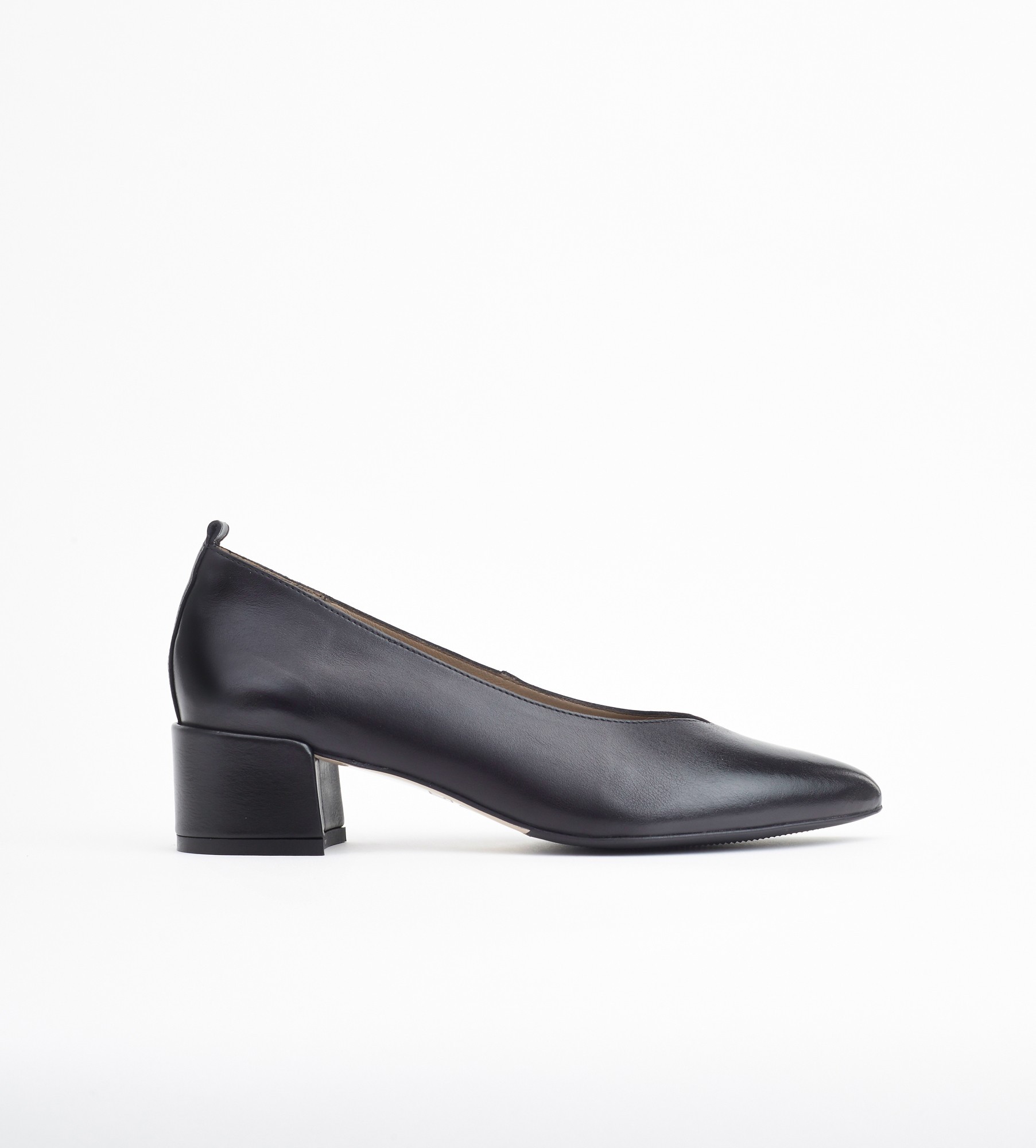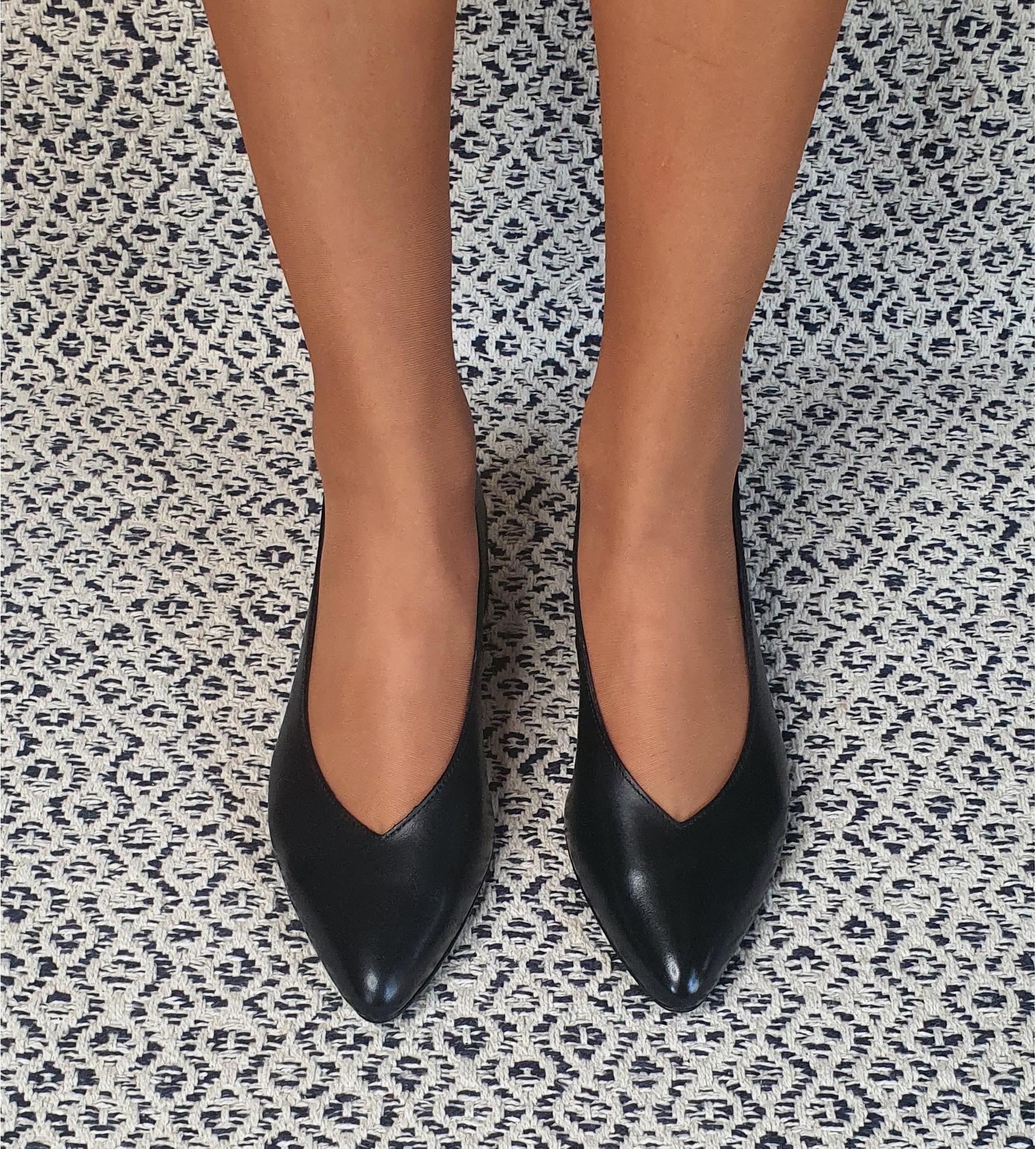 Czółenka damskie w kolorze czarnym z naturalnej skóry cielęcej z modnym czubkiem w szpic i kobiecym wycięciem, wyróżniają się elegancją i wysoką jakością wykonania. Wnętrze buta wyścielono delikatną, naturalną skórą jagnięcą, która nie tylko jest przyjemna w dotyku, ale również zapewnia komfort użytkowania przez cały dzień. Miękka, skórzana wkładka dopasowuje się do kształtu stopy, gwarantując idealne dopasowanie. Czółenka posiadają wygodny stabilny obcas o wysokości 5 cm. Klasyka , którą każda kobieta powinna mieć w swoej szafie, dodając szyku i profesjonalizmu każdej stylizacji.
