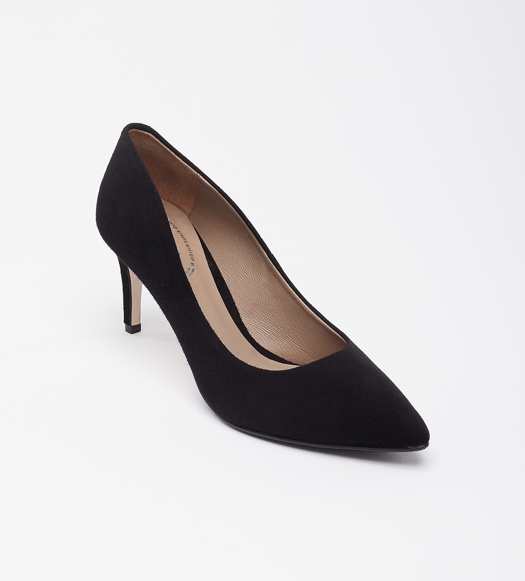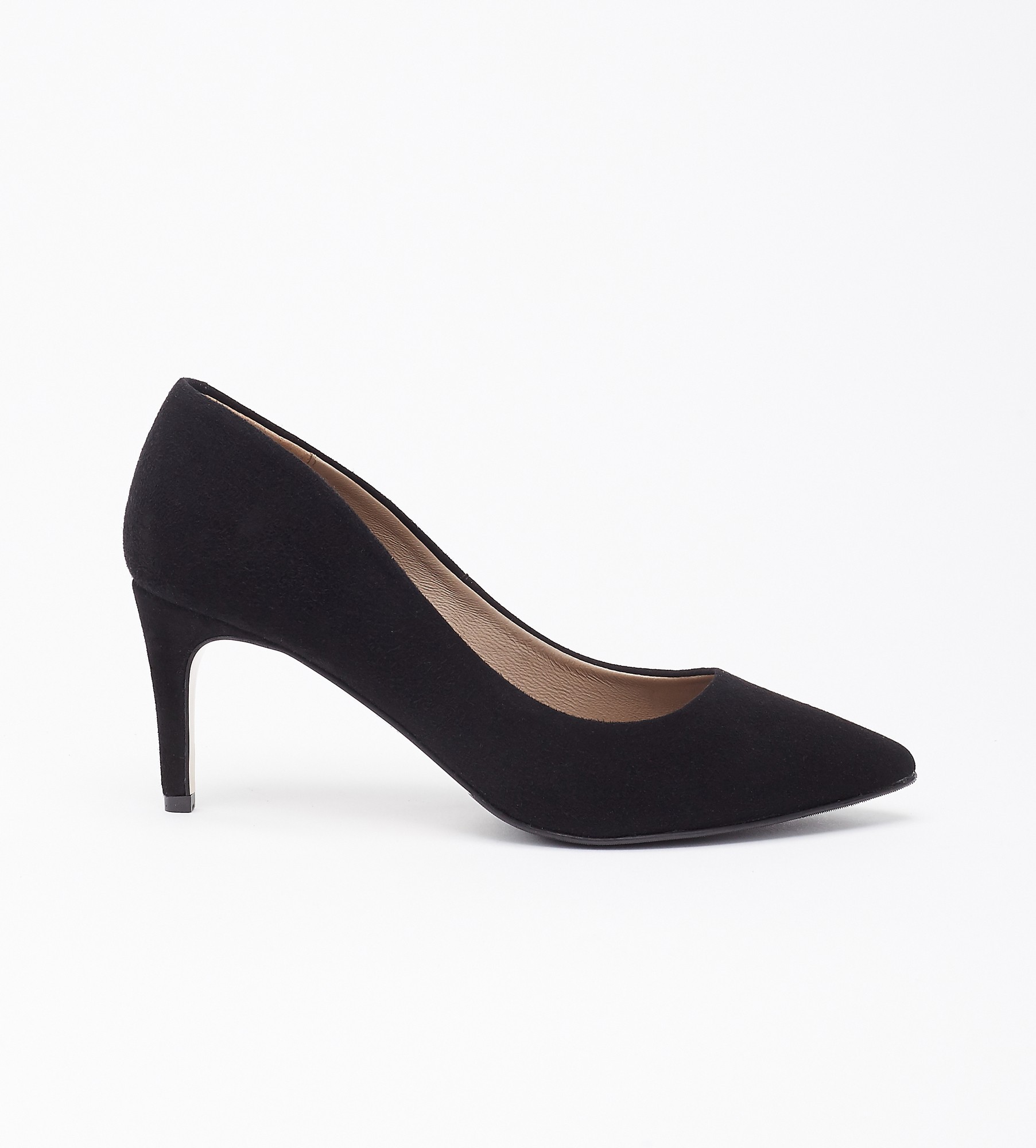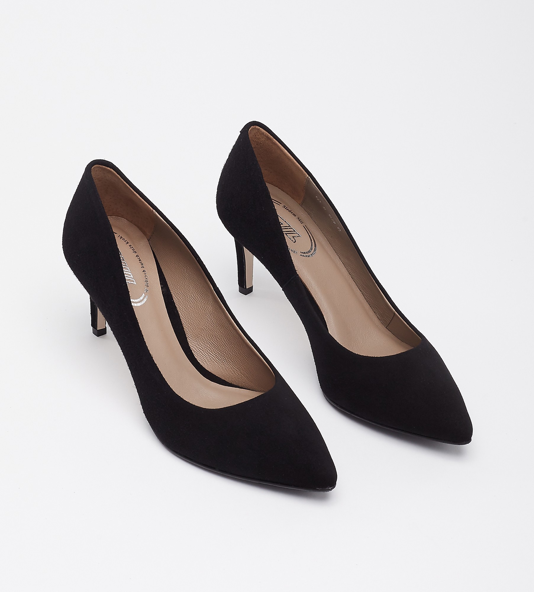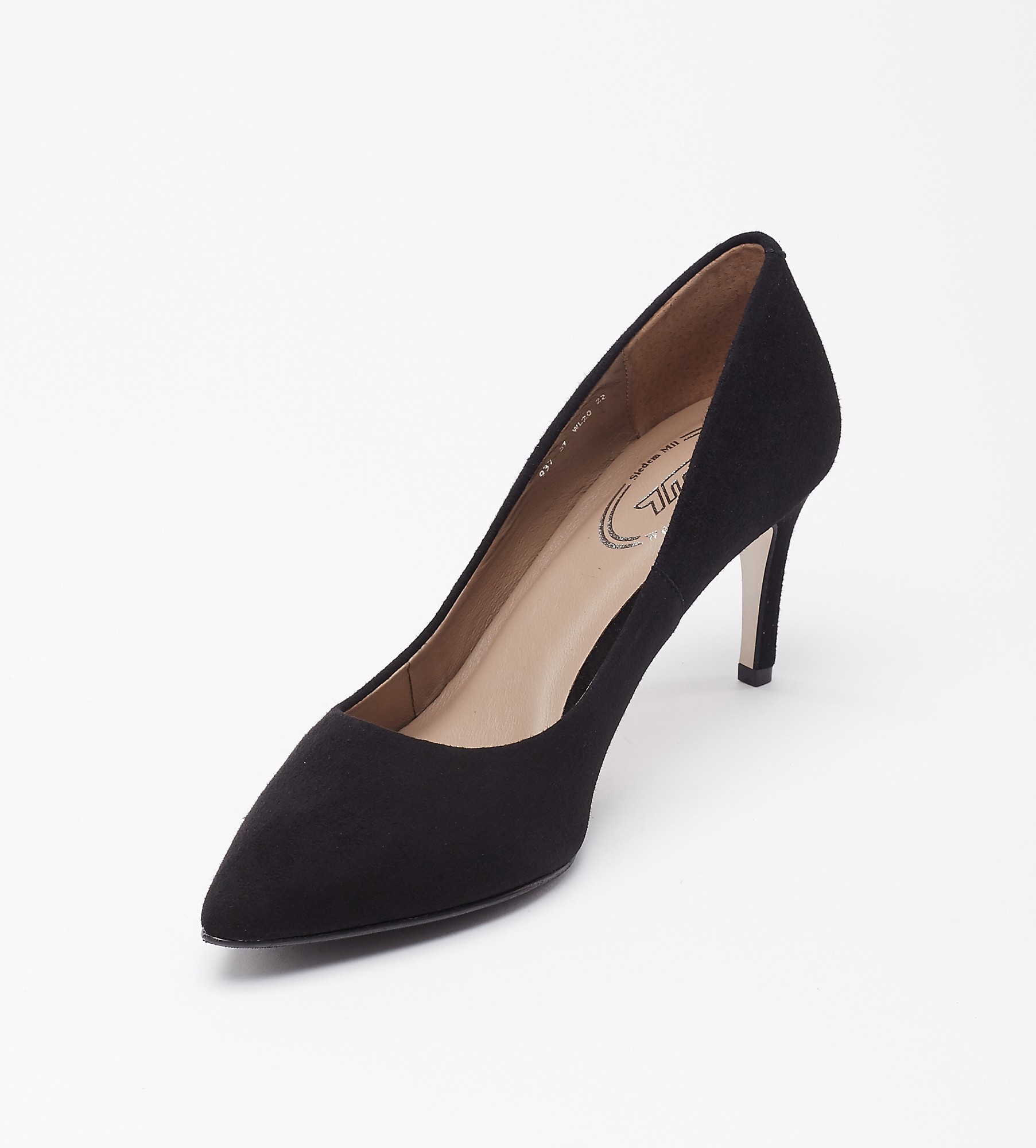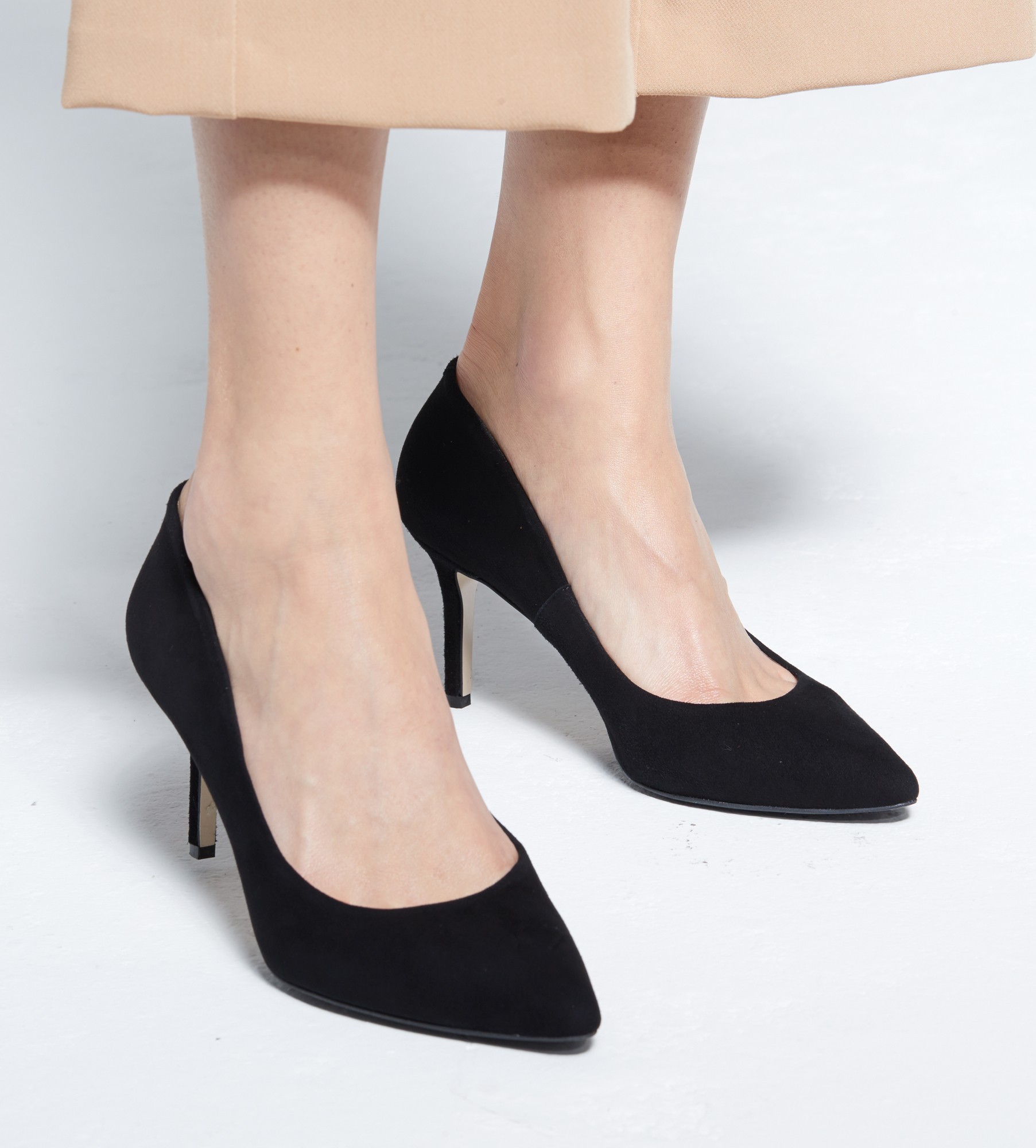Klasyczne czółenka na szpilce z naturanej skóry zamszowej w czarnym kolorze. Ich cholewka z miękkiej naturalnej, zamszowej skóry emanuje subtelnością, podkreślając jednocześnie Twój wyjątkowy gust. Wnętrze butów wyściełane jest naturalną skórą jagnięcą, która otacza stopę delikatnością i zapewnia niezrównany komfort przez cały dzień. Szpilka o wysokości 8 centymetrów nie tylko dodaje butom elegancji, ale również subtelnie wydłuża sylwetkę.