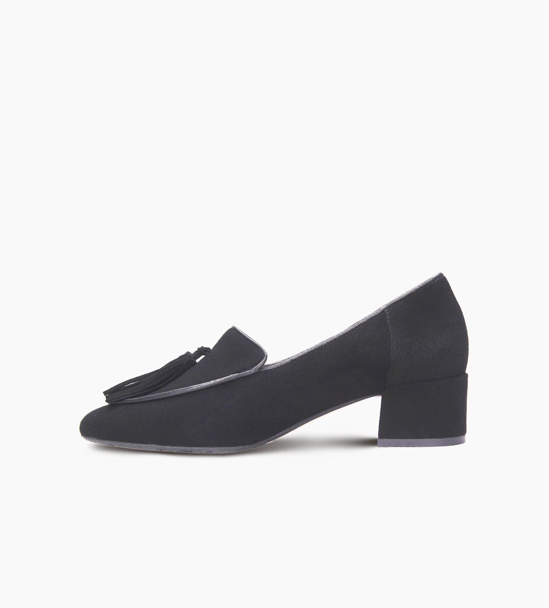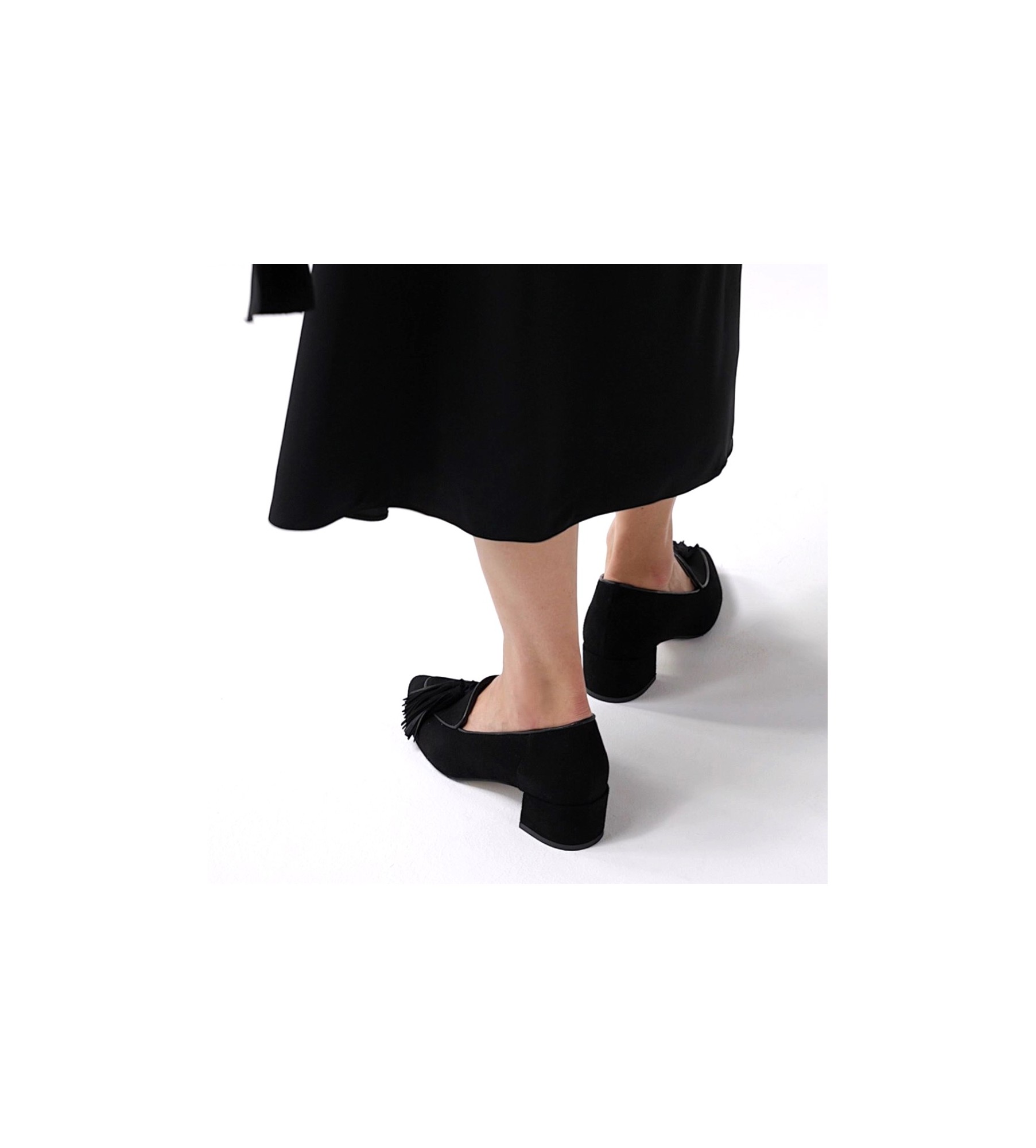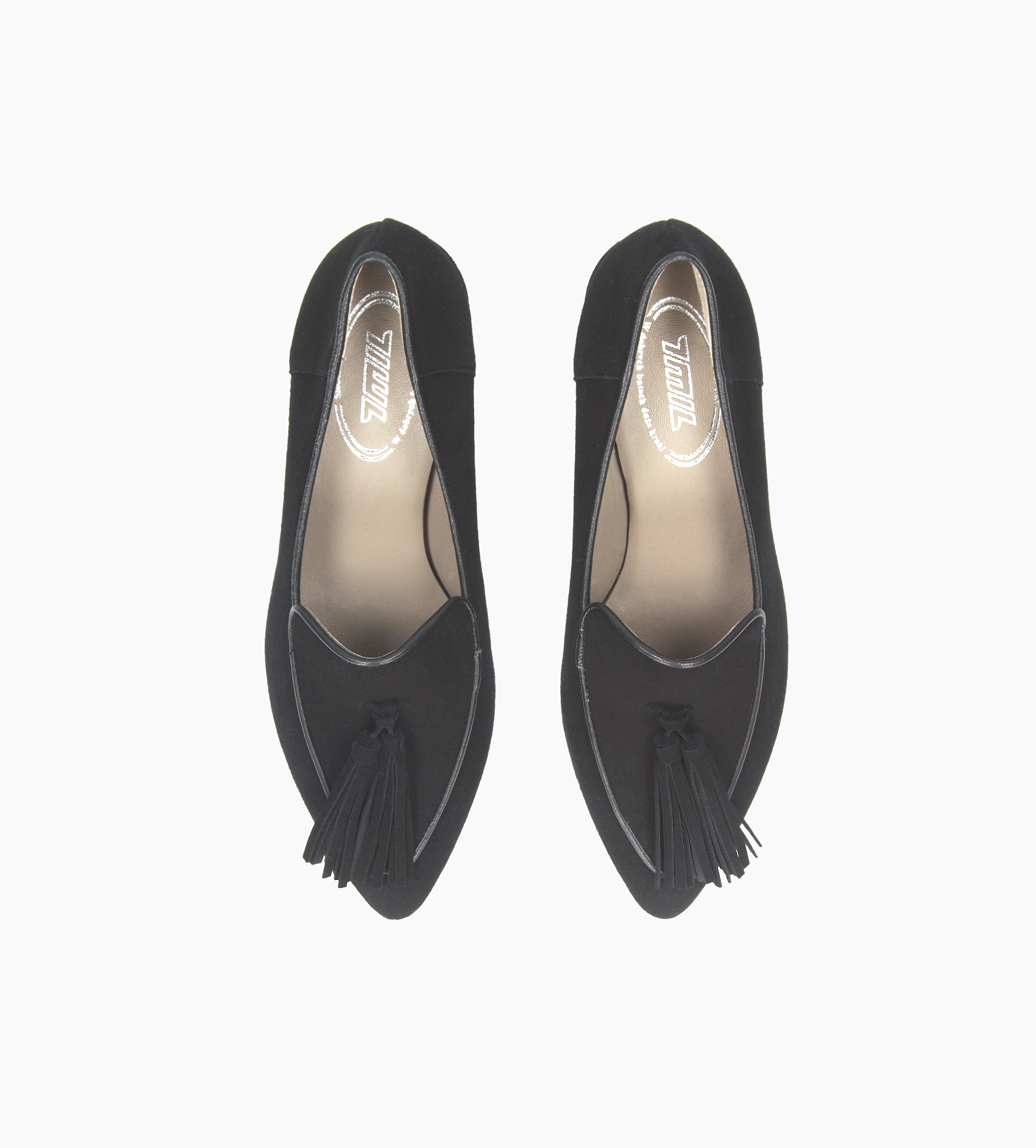 Czarne czółenka z chwostami wykonane z naturalnej skóry zamszowej, stworzone zostały z myślą o zapewnieniu komfortu i stylowego wyglądu na co dzień. Buty o klasycznym kroju z 5 centymetrowym stabilnym obcasem to perfekcyjne połączenie elegancji z miejskim stylem. Znakomicie komponują się z ubraniami biznesowymi, okazjonalnymi, ale także casualowymi.