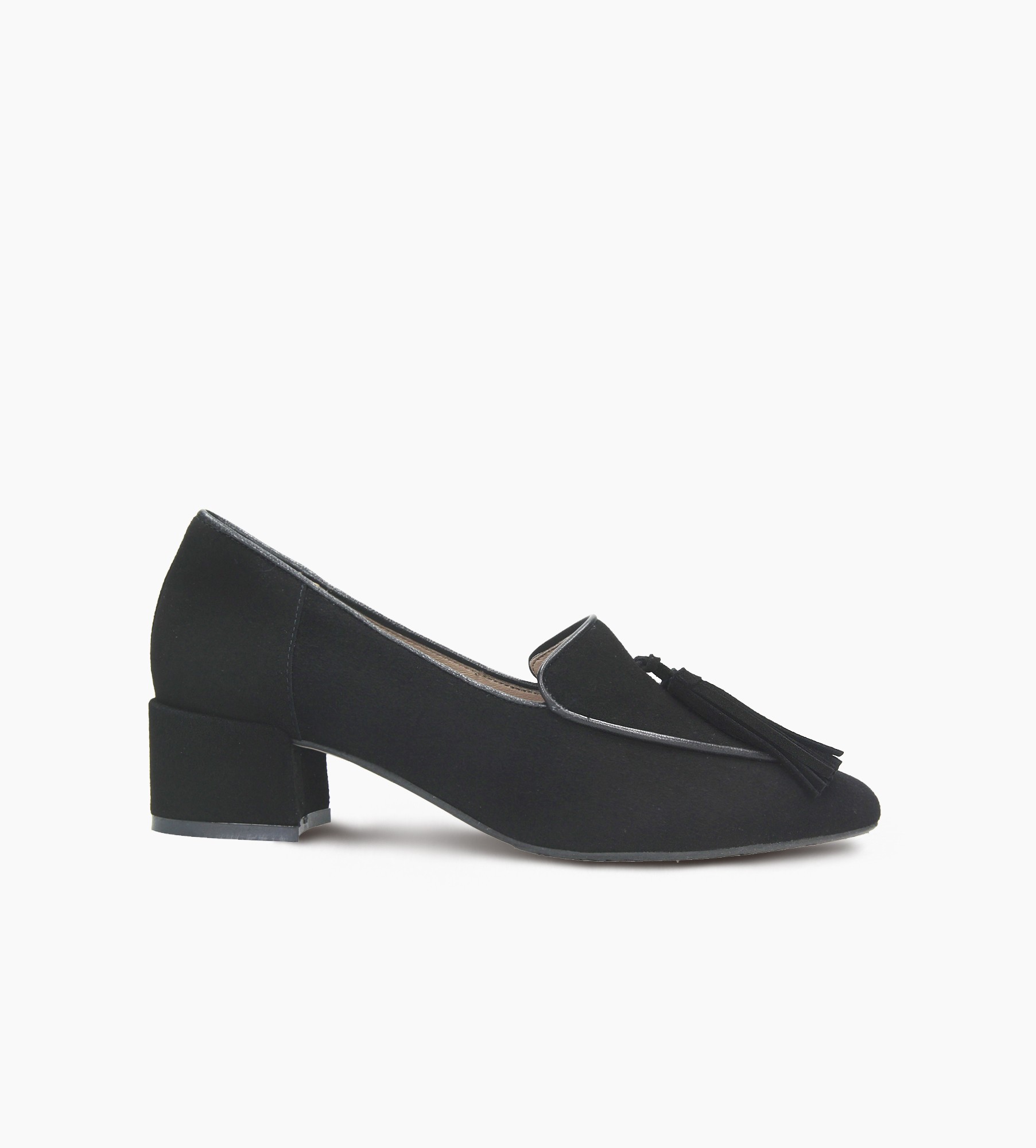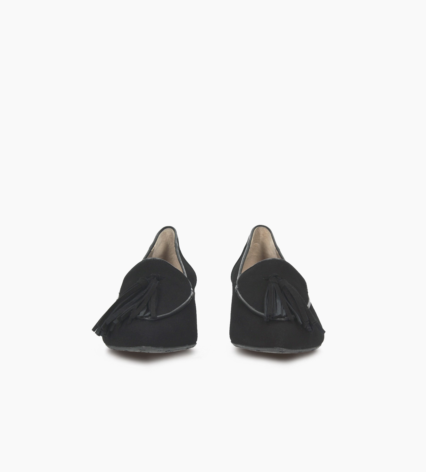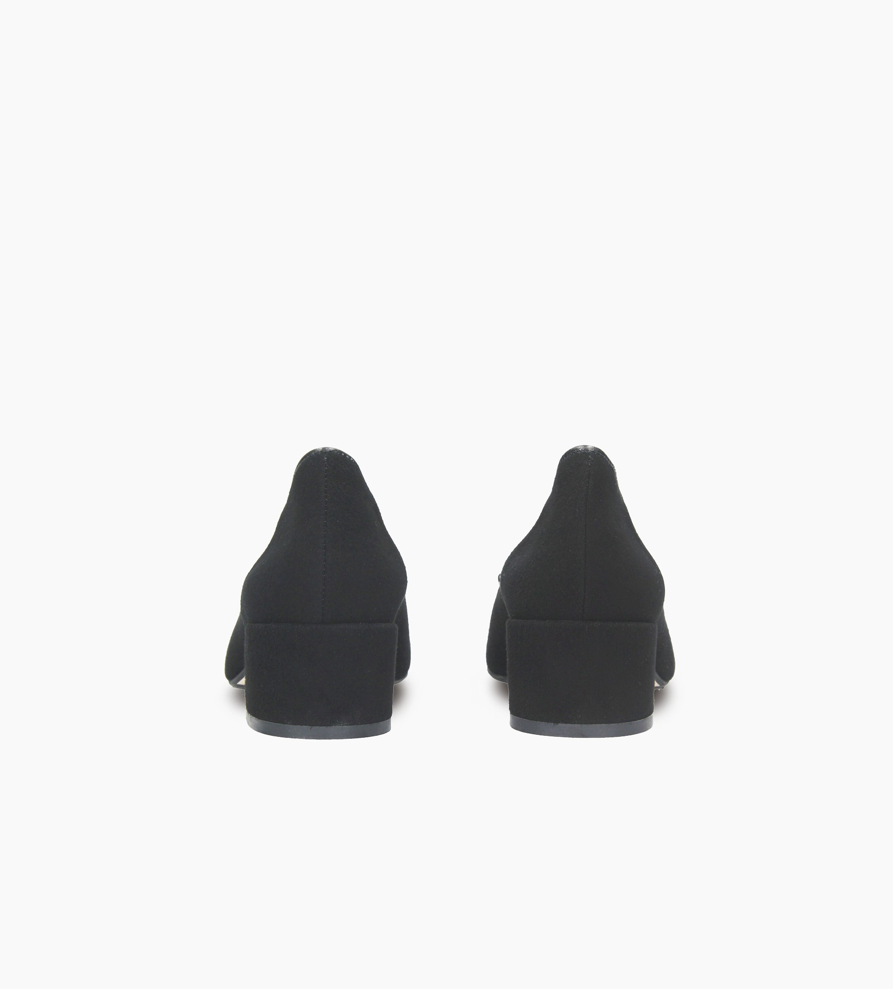 Czarne czółenka z chwostami wykonane z naturalnej skóry zamszowej, stworzone zostały z myślą o zapewnieniu komfortu i stylowego wyglądu na co dzień. Buty o klasycznym kroju z 5 centymetrowym stabilnym obcasem to perfekcyjne połączenie elegancji z miejskim stylem. Znakomicie komponują się z ubraniami biznesowymi, okazjonalnymi, ale także casualowymi.