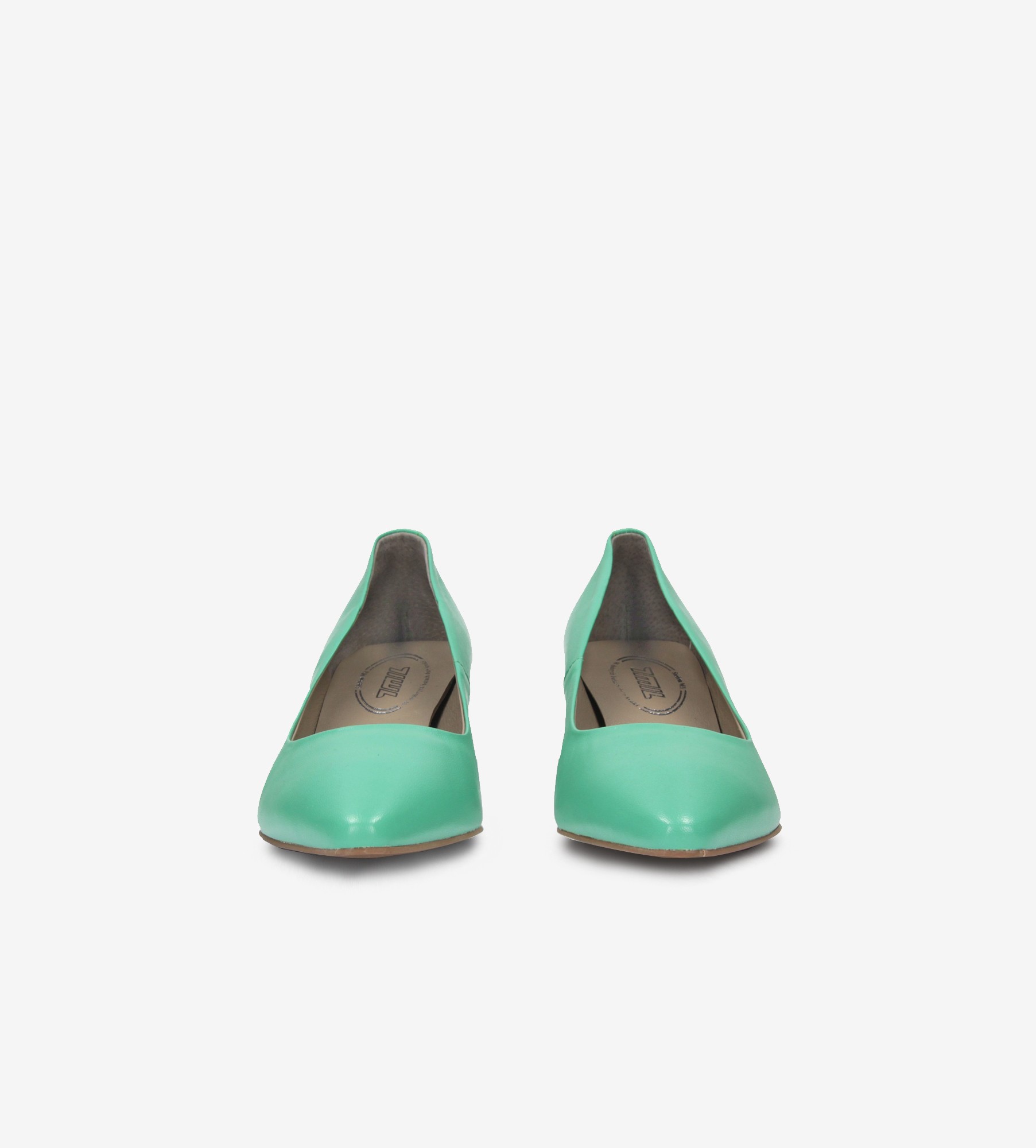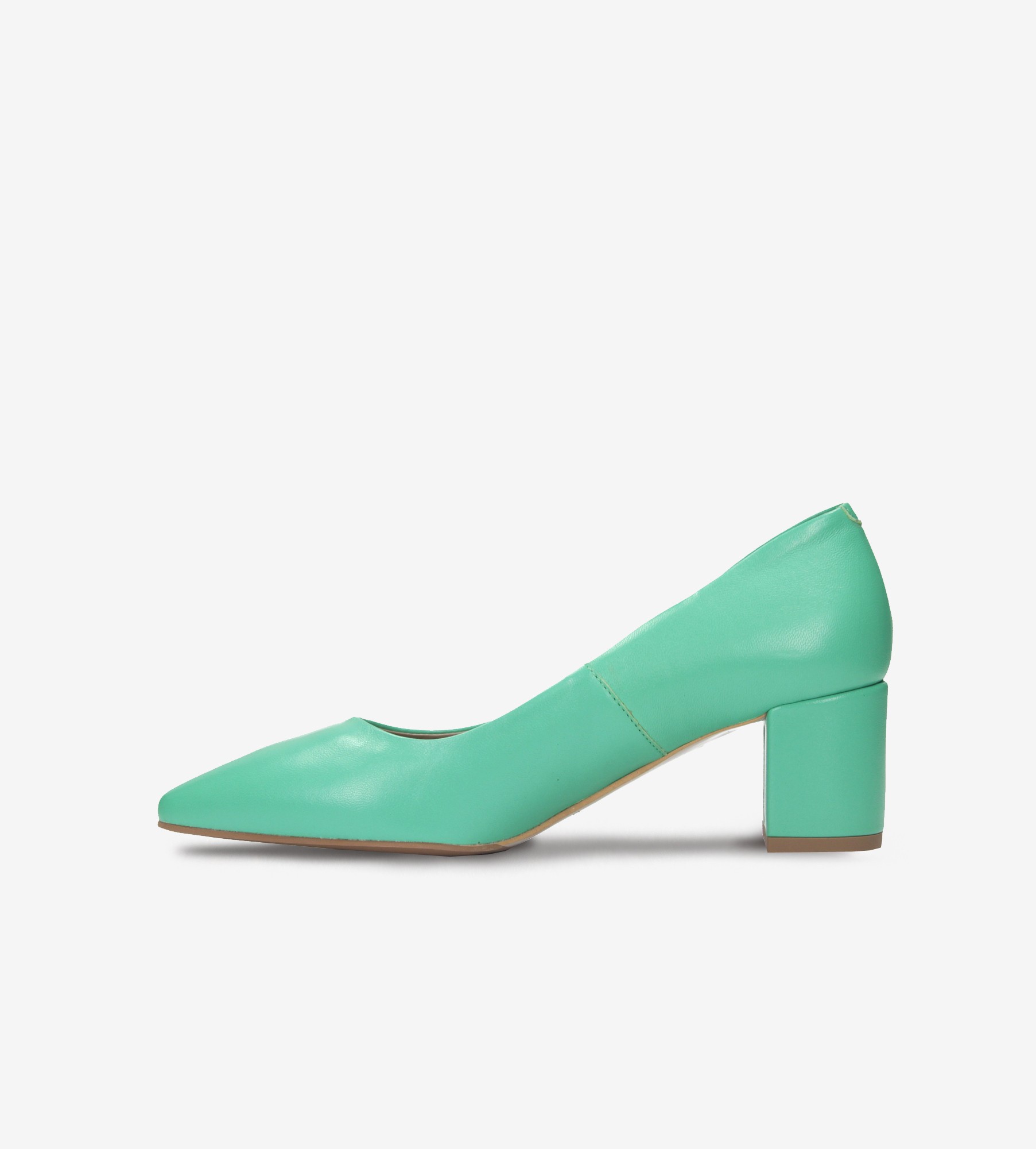 Klasyczne czółenka damskie w wiosennym kolorze zielonym, które wyróżniają się elegancją i wysoką jakością wykonania. Ich cholewka została starannie wykonana z naturalnej cielęcej skóry. Wnętrze buta wyścielono delikatną, naturalną skórą jagnięcą, która nie tylko jest przyjemna w dotyku, ale również zapewnia komfort przez cały dzień. Miękka, skórzana wkładka dopasowuje się do kształtu stopy, gwarantując idealne dopasowanie. Czółenka posiadają wygodny stabilny obcas o wysokości 5,5 cm.. Klasyczny kolor czarny pasuje do każdej garderoby, dodając szyku i profesjonalizmu każdej stylizacji.