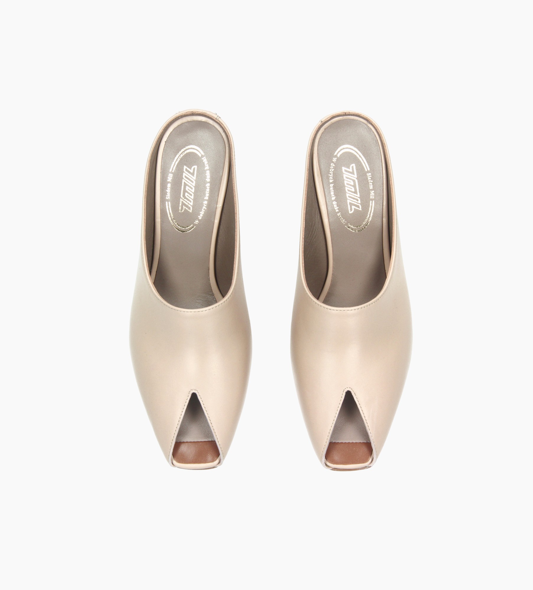Beżowe klapki damskie z naturalnej skóry to kwintesencja minimalistycznej elegancji w nowoczesnym wydaniu. Ich gładka, zabudowana cholewka o łagodnym połysku nadaje całości ponadczasowego charakteru, a modne wycięcie w okolicy palców subtelnie eksponuje stopę, dodając sylwetce lekkości. Stabilny, szeroki obcas o eleganckim kształcie nie tylko wydłuża nogę, ale zapewnia również komfort podczas całodziennego noszenia. Wnętrze wyściełane wyjątkowo miękką skórą jagnięcą gwarantuje uczucie komfortu przy każdym kroku. Ten model doskonale łączy klasykę z nowoczesną formą, wpisując się w aktualne trendy, a jednocześnie zachowując wyjątkową wygodę.