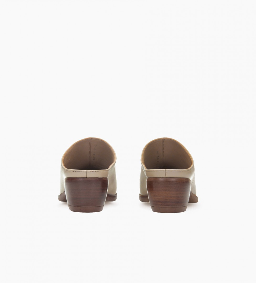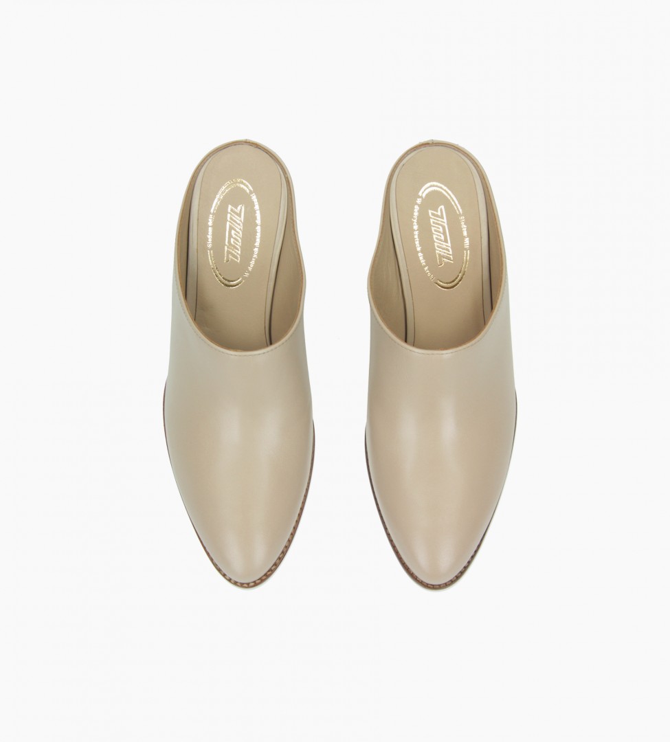 Stylowe, skórzane klapki w odcieniu subtelnego beżu to wyjątkowa propozycja dla kobiet ceniących połączenie wygody i ponadczasowej elegancji. Cholewka wykonana z wysokogatunkowej skóry naturalnej została zaprojektowana w minimalistycznej formie, która nawiązuje do estetyki kowbojskich butów, ale w lekkim, letnim wydaniu. Wnętrze wyściełane miękką jagnięcą skórą zapewnia doskonały komfort użytkowania nawet przez cały dzień. Stabilny, drewniany obcas o średniej wysokości dodaje sylwetce lekkości, nie rezygnując przy tym z wygody chodzenia. Wsuwany fason ułatwia zakładanie i czyni model idealnym na szybkie wyjścia w stylu smart casual lub miejskim boho.