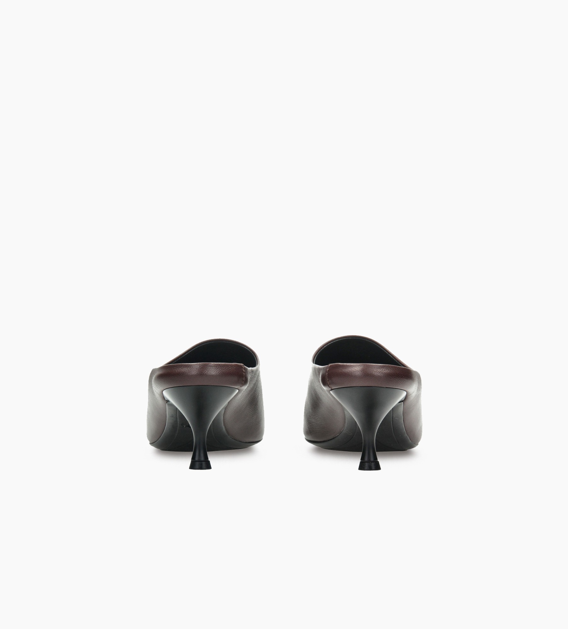 Brązowe klapki damskie wykonane z wysokogatunkowej skóry z miękką wyściółką ze skóry jagnięcej to stylowy wybór dla kobiet ceniących elegancję i wygodę. Model osadzony na subtelnej, dobrze wyprofilowanej szpilce zapewnia stabilność i delikatne podniesienie sylwetki. Zabudowana cholewka z noskiem w szpic podkreśla minimalistyczny charakter klapek i sprawia, że doskonale komponują się z eleganckimi, jak i bardziej swobodnymi stylizacjami.