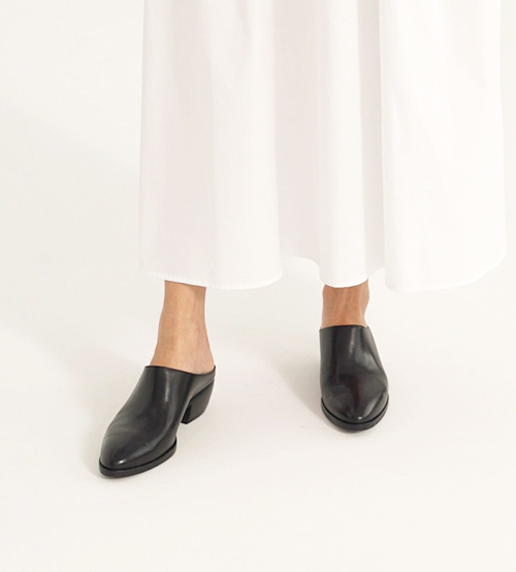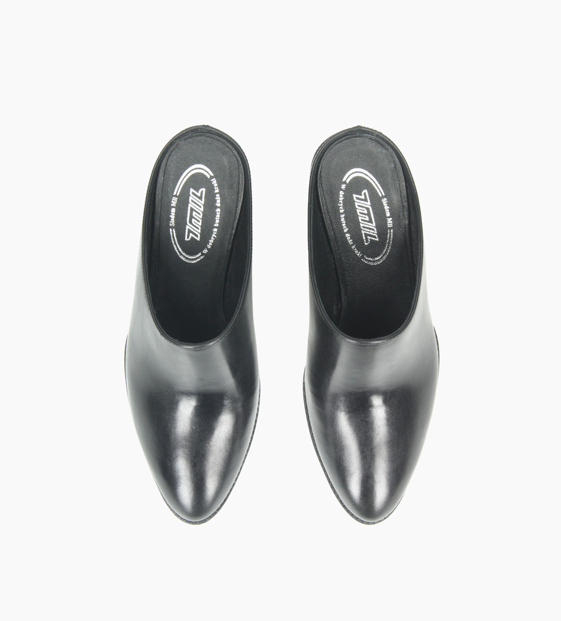 Czarne klapki damskie to połączenie klasycznej elegancji z nowoczesnym minimalizmem. Wykonane z najwyższej jakości naturalnej skóry cielęcej, charakteryzują się niezwykłą miękkością i trwałością, zapewniając maksymalny komfort użytkowania. Wnętrze buta wyściełane delikatną skórą jagnięcą gwarantuje doskonałą oddychalność i dopasowanie do stopy. Model wyróżnia się mocno zabudowaną cholewką, która nadaje butom wyrafinowanego, architektonicznego charakteru, idealnie wpisującego się w aktualne trendy. Stabilny, niski obcas zapewnia wygodę przez cały dzień, sprawiając, że buty są doskonałym wyborem zarówno do codziennych, jak i bardziej eleganckich stylizacji.