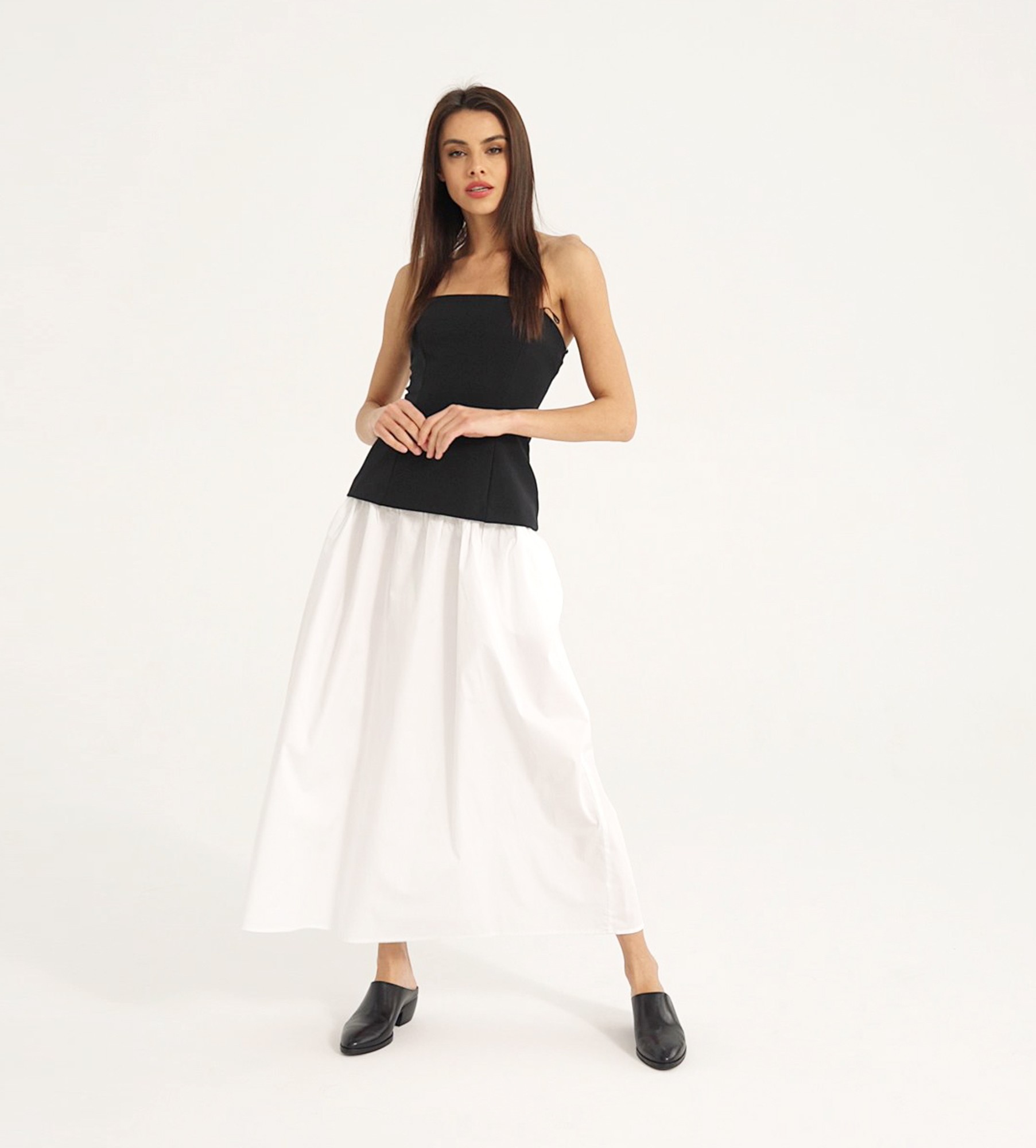 Dla miłośniczek minimalizmu i wygody świetnym wyborem będzie długa, satynowa spódnica w kolorze czarnym lub butelkowej zieleni, która pięknie podkreśli linię sylwetki. Do tego dobierz dopasowany top na cienkich ramiączkach w kolorze nude lub écru, a na wierzch zarzuć krótki kardigan z lekkiej dzianiny w pastelowym odcieniu.