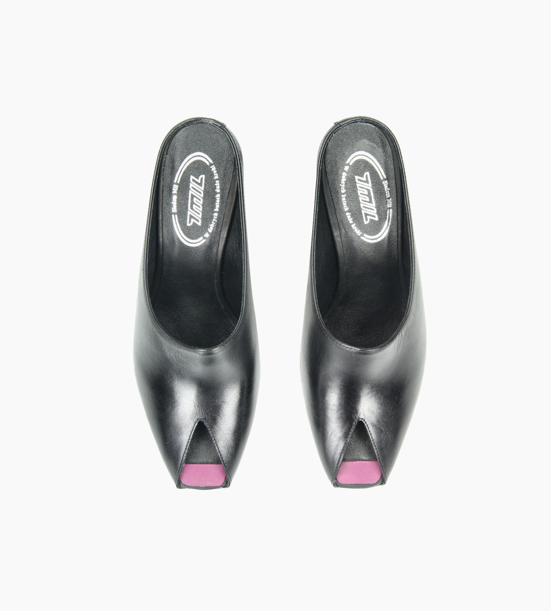 Czarne klapki marki to propozycja dla kobiet ceniących wyrafinowany styl i wygodę. Wykonane z wysokiej jakości naturalnej skóry cielęcej, z miękką skórą jagnięcą wewnątrz, zachwycają komfortem i perfekcyjnym dopasowaniem do stopy. Model wyróżnia się zabudowaną cholewką o miękkiej linii oraz subtelnym wycięciem przy palcach, które pięknie podkreśla kobiecą sylwetkę. Stabilny, wygodny obcas dodaje lekkości, a jednocześnie zapewnia swobodę ruchu.