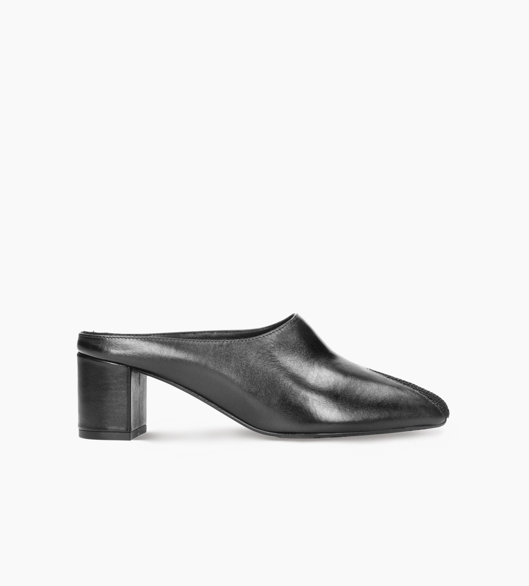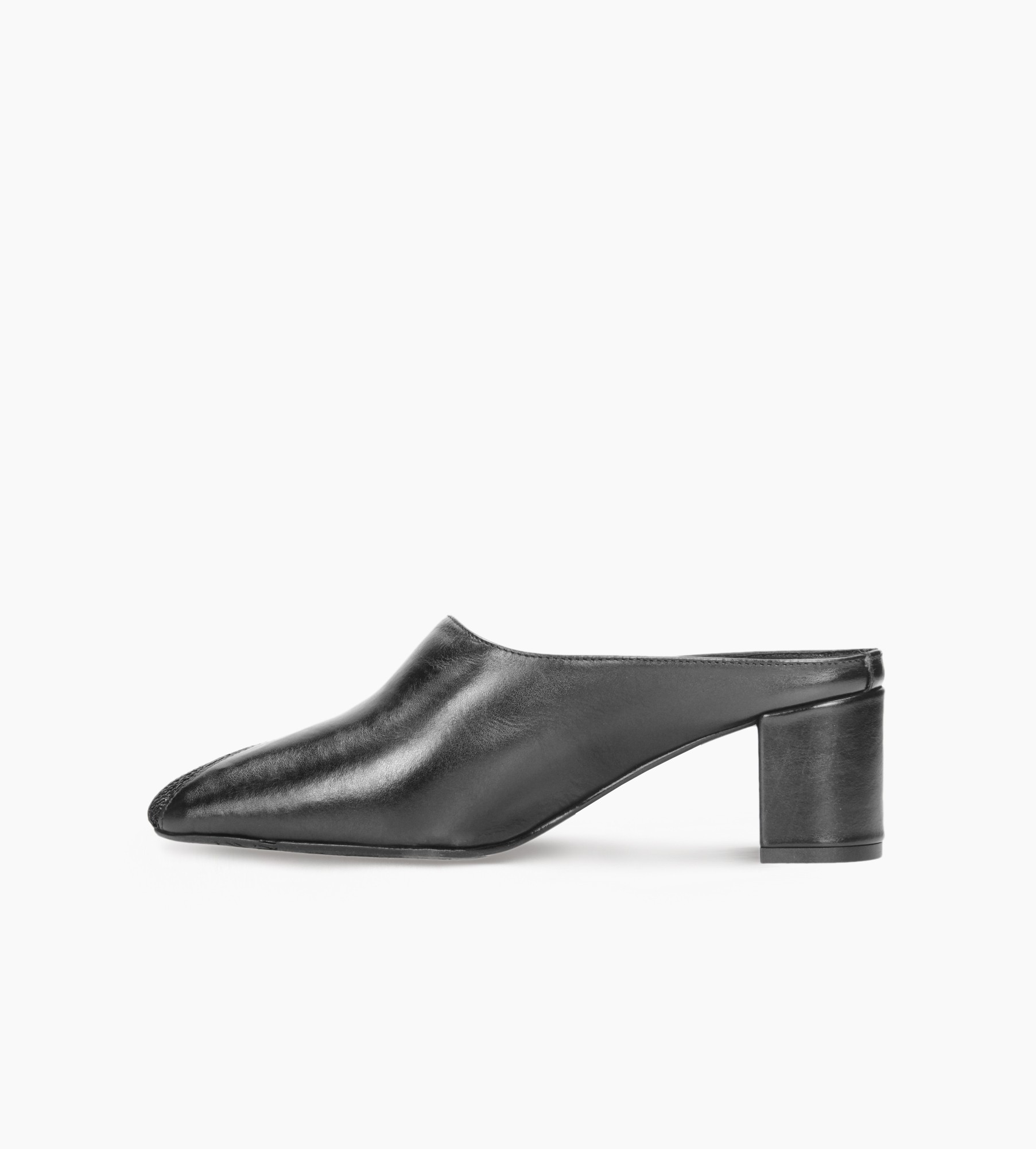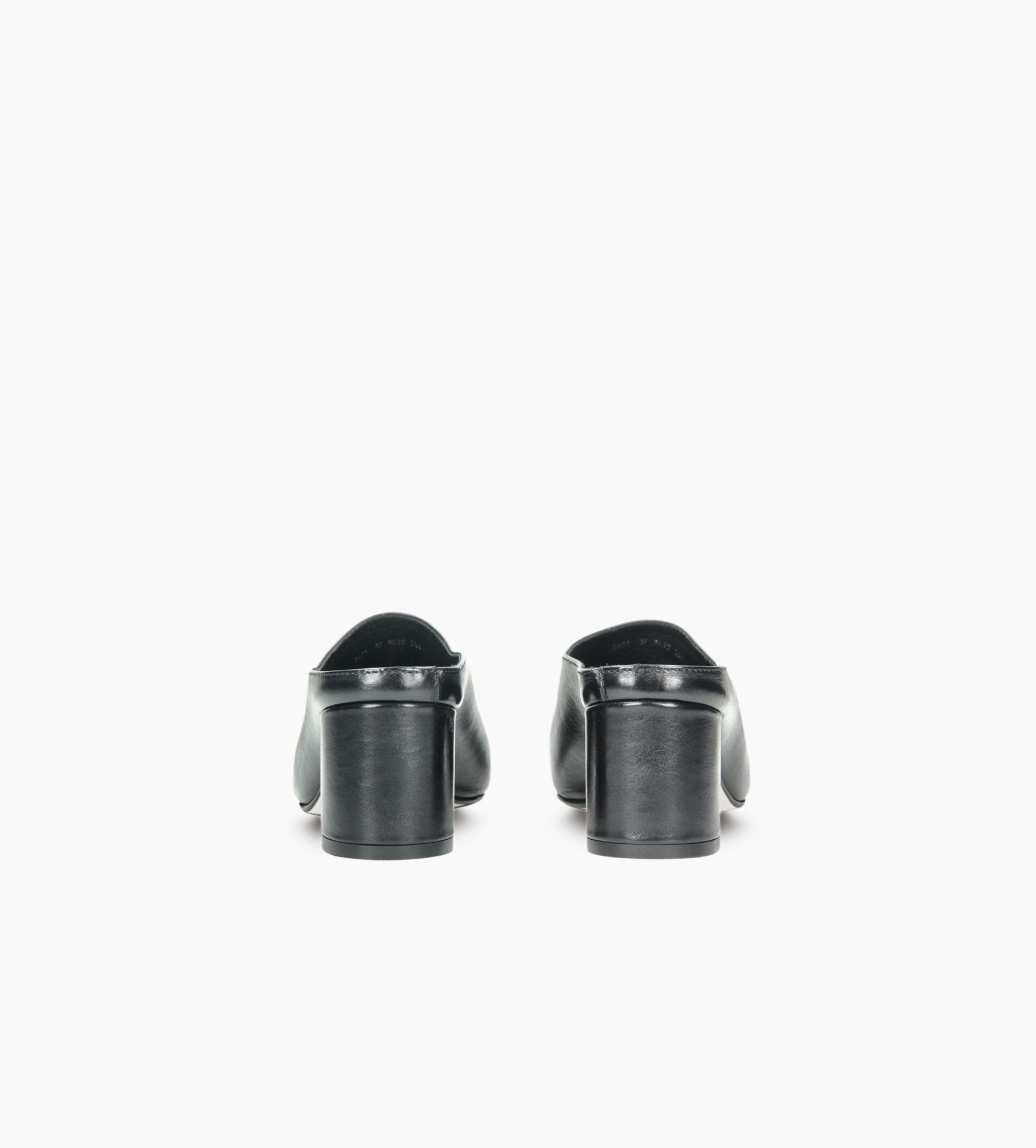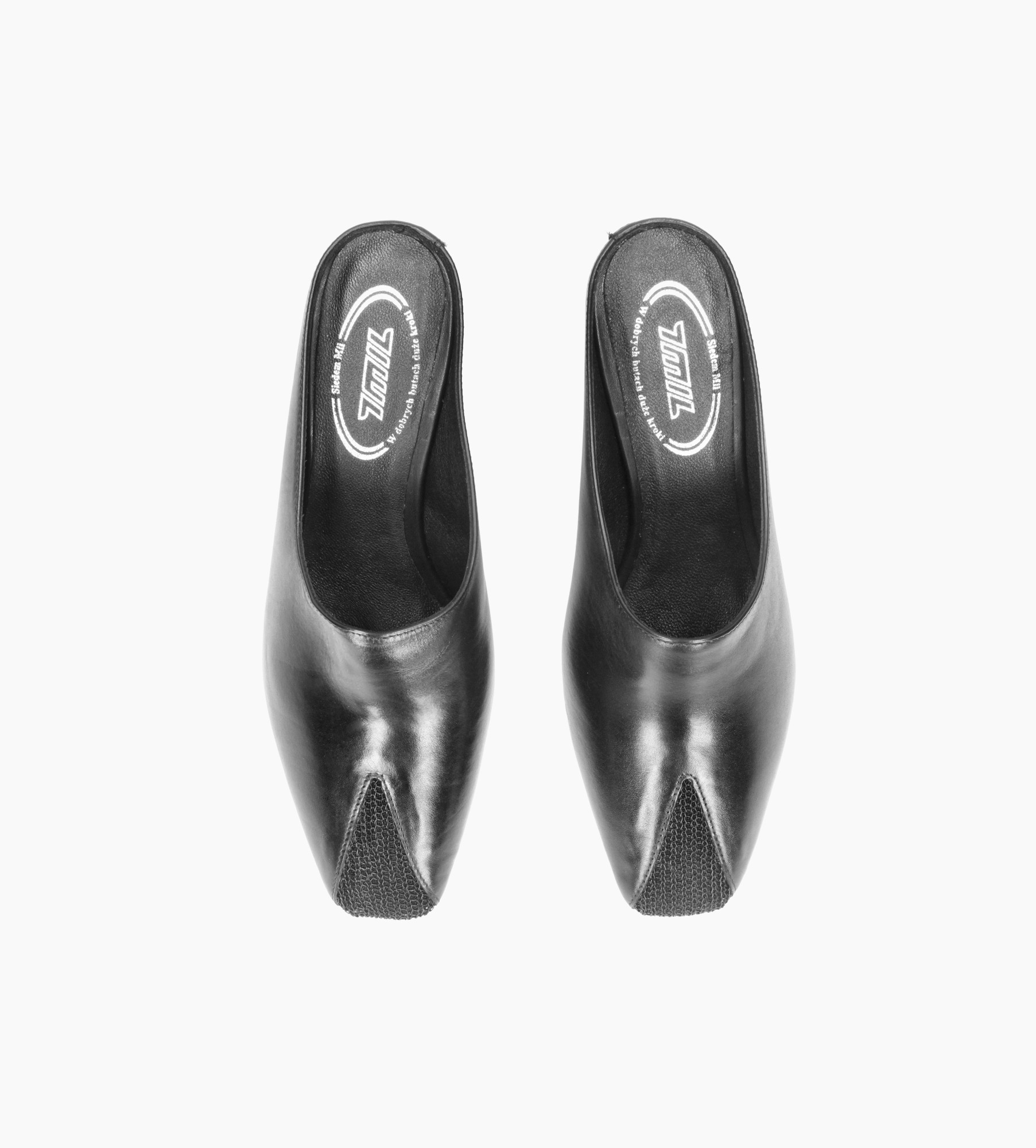 Stylowe klapki damskie to połączenie klasycznego minimalizmu z subtelną nutą modowej awangardy. Wykonane z wysokiej jakości naturalnej skóry cielęcej, zachwycają gładką fakturą i ponadczasową czernią. Wnętrze buta zostało wyściełane miękką, oddychającą skórą jagnięcą, która zapewnia wysoki komfort noszenia nawet przez cały dzień. Model wyróżnia się zabudowaną linią z delikatnie wydłużonym noskiem oraz stabilnym, średniej wysokości obcasem typu klocek. Odkryte palce zostały subtelnie wyeksponowane dzięki przewiewnemu, dekoracyjnemu wstawieniu z ażurowej siateczki – to detal, który nadaje lekkości i wizualnej finezji, jednocześnie zwiększając oddychalność buta.