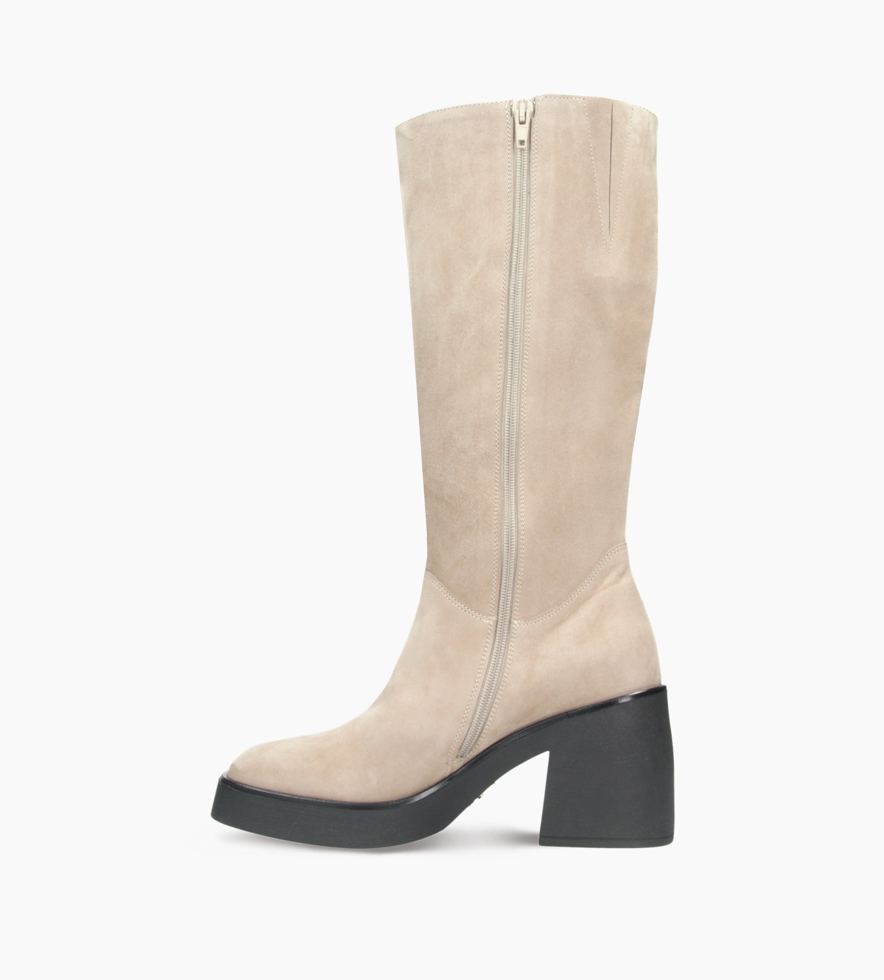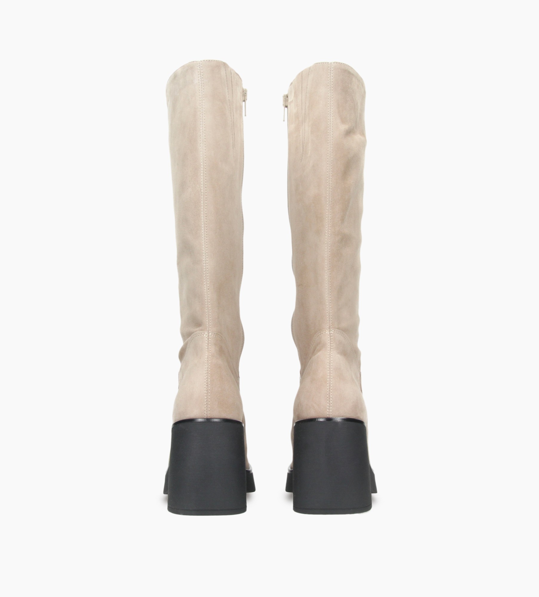 Beżowe kozaki damskie wykonane z naturalnej skóry zamszowej to elegancka propozycja, która doskonale sprawdzi się w chłodniejsze dni, zapewniając nie tylko stylowy wygląd, ale także komfort i ciepło. Zamszowa skóra, z której są wykonane, charakteryzuje się miękkością i przyjemną w dotyku fakturą. Praktyczny suwak umieszczony z boku kozaka ułatwia ich szybkie zakładanie i zdejmowanie, a także zapewnia idealne dopasowanie do nogi. Wysoki, ale bardzo stabilny obcas nie tylko dodaje elegancji, ale również gwarantuje komfort noszenia, nawet przez wiele godzin.