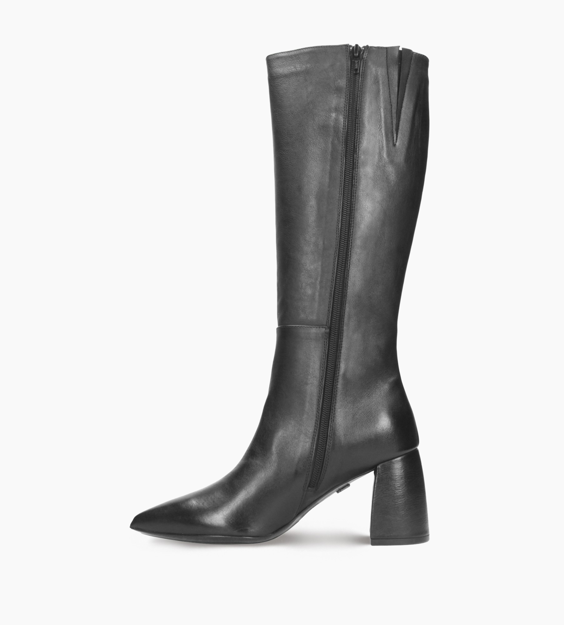 Czarne kozaki damskie wykonane z naturalnej skóry cielęcej to elegancki i ponadczasowy wybór, który doskonale sprawdzi się w jesienno-zimowej garderobie. Skóra cielęca charakteryzuje się wyjątkową miękkością, gładkością oraz wytrzymałością, co gwarantuje komfort noszenia i trwałość. Klasyczny czarny kolor tych kozaków sprawia, że są niezwykle uniwersalne i łatwo komponują się z różnymi stylizacjami, dodając im szyku i elegancji. Kozaki mają prosty, minimalistyczny design, który podkreśla ich charakter. Dzięki smukłej linii i starannemu wykonaniu, idealnie dopasowują się do kształtu nogi, co dodatkowo wysmukla sylwetkę. Solidna podeszwa i stabilny obcas zapewniają komfort i pewność kroku, nawet na śliskiej nawierzchni, co czyni te buty idealnym wyborem na chłodniejsze dni. Wysokość cholewki tych kozaków sprawia, że są one doskonałe do noszenia zarówno z sukienkami, jak i z wąskimi spodniami.