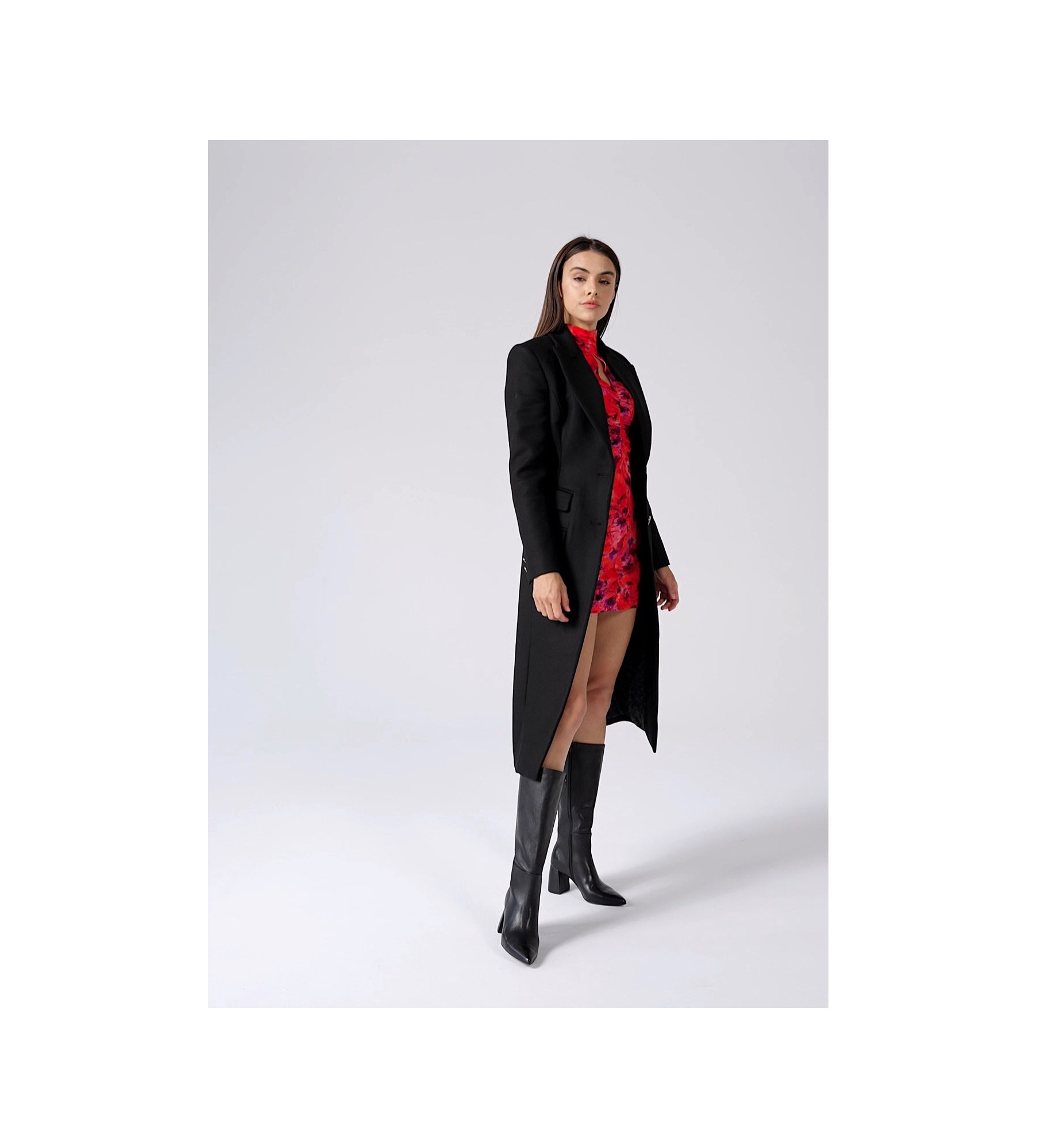 Czarne kozaki z naturalnej skóry cielęcej doskonale skomponują się z sukienką swetrową w odcieniu ciemnego burgunda lub butelkowej zieleni. Taki fason sukienki zapewnia wygodę, a jednocześnie podkreśla kobiecość, idealnie współgrając z wysokimi kozakami. Na wierzch wybierz długi, pikowany płaszcz w kolorze czarnym lub granatowym, który zapewni dodatkowe ciepło i ochronę przed zimnem. Do tego możesz dodać szeroki szal w odcieniu szarości oraz czapkę typu beanie, aby wprowadzić dodatkowe warstwy i tekstury do stylizacji. Stylizację uzupełnij małą torebką na ramię z łańcuszkiem w kolorze czarnym oraz srebrnymi dodatkami, takimi jak naszyjnik lub bransoletka.