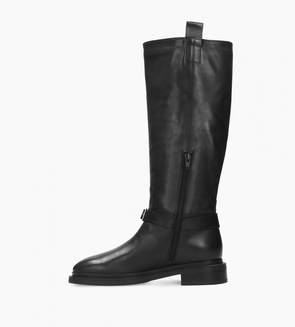 Eleganckie kozaki wykonane zostały z najwyższej jakości naturalnej skóry cielęcej, która charakteryzuje się subtelnym połyskiem i delikatnością. Wnętrze wykończone miękką skórą jagnięcą otula stopę niczym druga skóra, zapewniając komfort nawet przy wielogodzinnym użytkowaniu. Model zapinany jest na suwak z boku, co gwarantuje łatwe zakładanie i zdejmowanie bez zaburzenia estetyki buta. W okolicy podbicia dominują subtelne dekoracje — metalowe kółko które dodaje całości szyku, nie przytłaczając minimalistycznej formy. Smukła, wydłużona linia cholewki podkreśla łydkę, a klasyczna czerń sprawia, że kozaki te będą stylowym i uniwersalnym wyborem do wielu zimowych stylizacji.