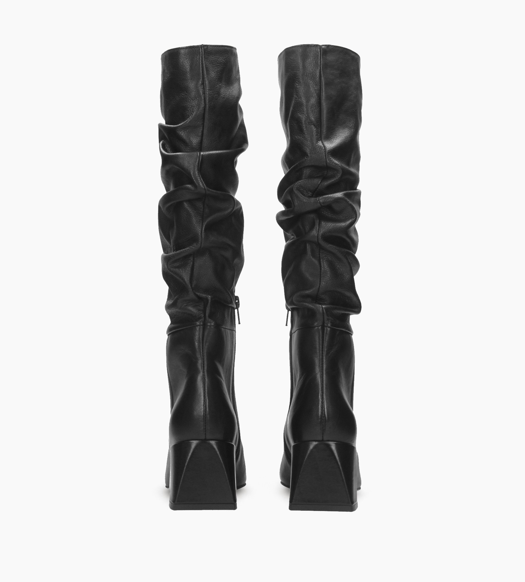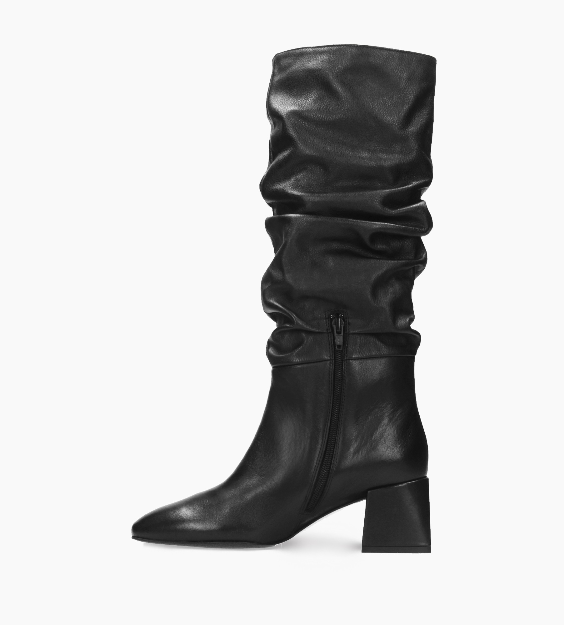 Wysokie kozaki wykonane ze skóry cielęcej to kwintesencja kobiecego stylu na sezon jesienno-zimowy. Miękko układająca się cholewka z subtelnym marszczeniem pięknie podkreśla linię nogi, nadając sylwetce lekkości i nowoczesnej finezji. Zgrabny, stabilny obcas dodaje centymetrów, nie rezygnując z komfortu – to model idealny zarówno na co dzień, jak i do eleganckich stylizacji. Wnętrze buta wyścielone zostało przyjemną w dotyku mikrofibrą typu welur, która delikatnie otula stopę i zapewnia komfort termiczny w chłodniejsze dni. Częściowo wsuwane, z praktycznym bocznym suwakiem, pozwalają na szybkie i wygodne zakładanie.