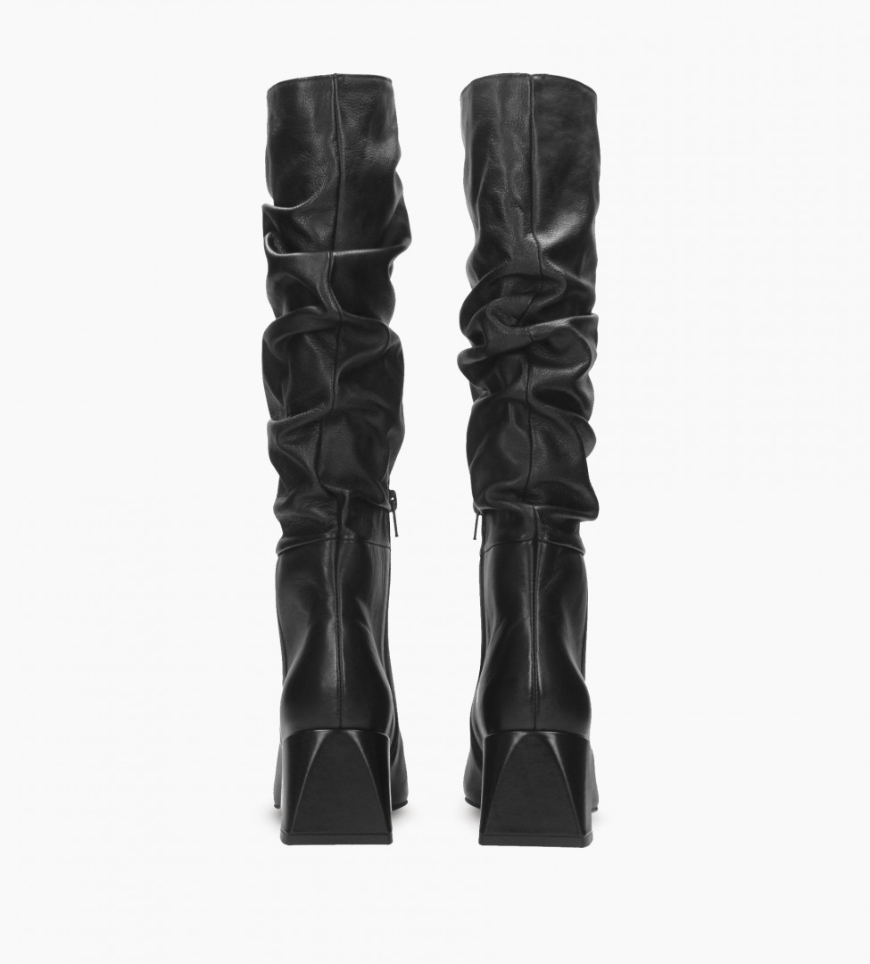 Wysokie kozaki wykonane ze skóry cielęcej to kwintesencja kobiecego stylu na sezon jesienno-zimowy. Miękko układająca się cholewka z subtelnym marszczeniem pięknie podkreśla linię nogi, nadając sylwetce lekkości i nowoczesnej finezji. Zgrabny, stabilny obcas dodaje centymetrów, nie rezygnując z komfortu – to model idealny zarówno na co dzień, jak i do eleganckich stylizacji. Wnętrze buta wyścielone zostało przyjemną w dotyku mikrofibrą typu welur, która delikatnie otula stopę i zapewnia komfort termiczny w chłodniejsze dni. Częściowo wsuwane, z praktycznym bocznym suwakiem, pozwalają na szybkie i wygodne zakładanie.