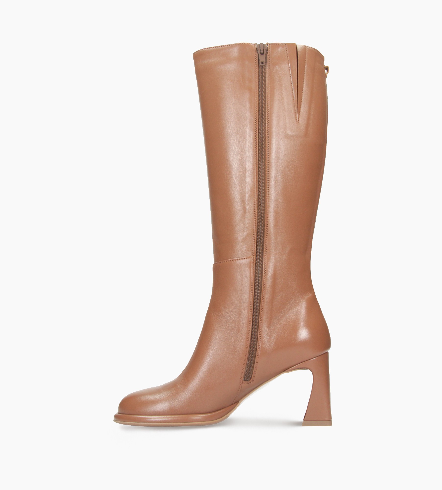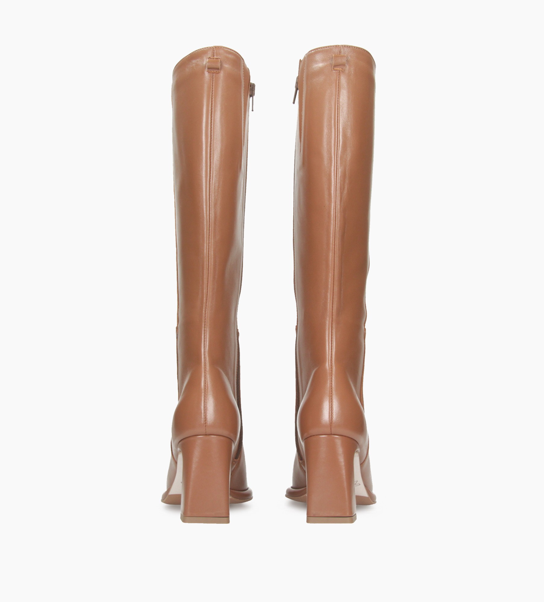 Koniakowe kozaki damskie to elegancka i kobieca propozycja, która doskonale wpisuje się w aktualne trendy. Wykonane z wysokiej jakości skóry, zachwycają głębokim odcieniem koniaku, który nadaje stylizacji wyjątkowej ciepłej nuty, idealnej na jesienne i zimowe dni. Zapinane na wygodny suwak umieszczony z boku, zapewniają komfortowe zakładanie i idealne dopasowanie do nogi, jednocześnie podkreślając jej kształt. Modny, słupkowy obcas dodaje kozakom charakteru, podkreślając kobiecą sylwetkę i zapewniając stabilność oraz wygodę podczas noszenia. Ich uniwersalny design sprawia, że doskonale sprawdzą się zarówno w eleganckich, jak i bardziej casualowych stylizacjach.