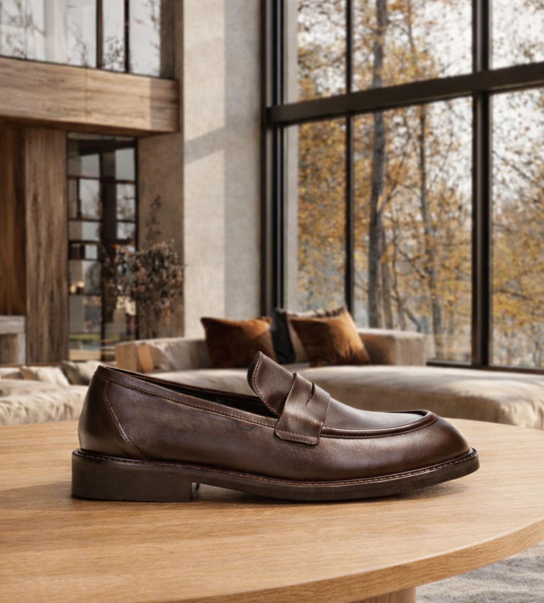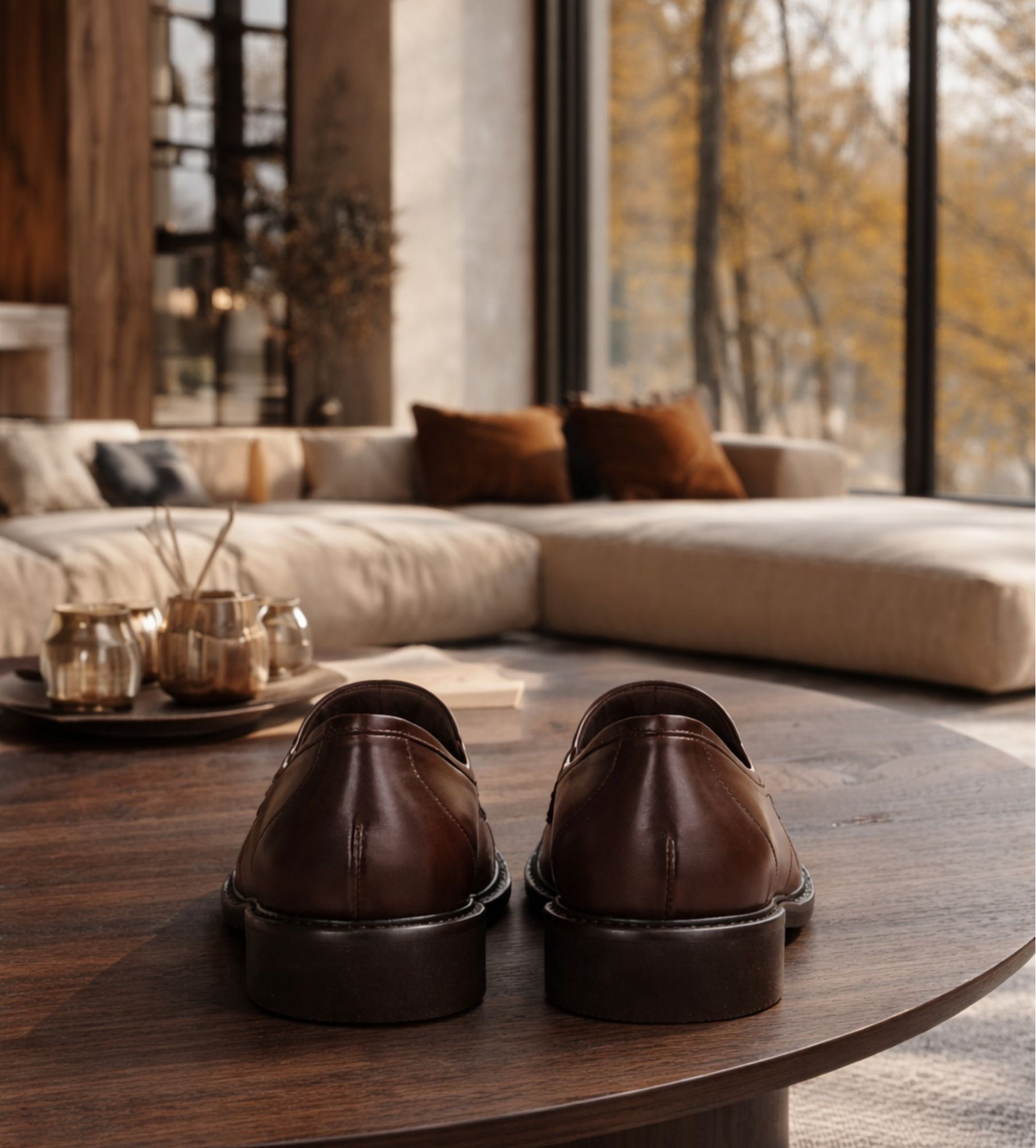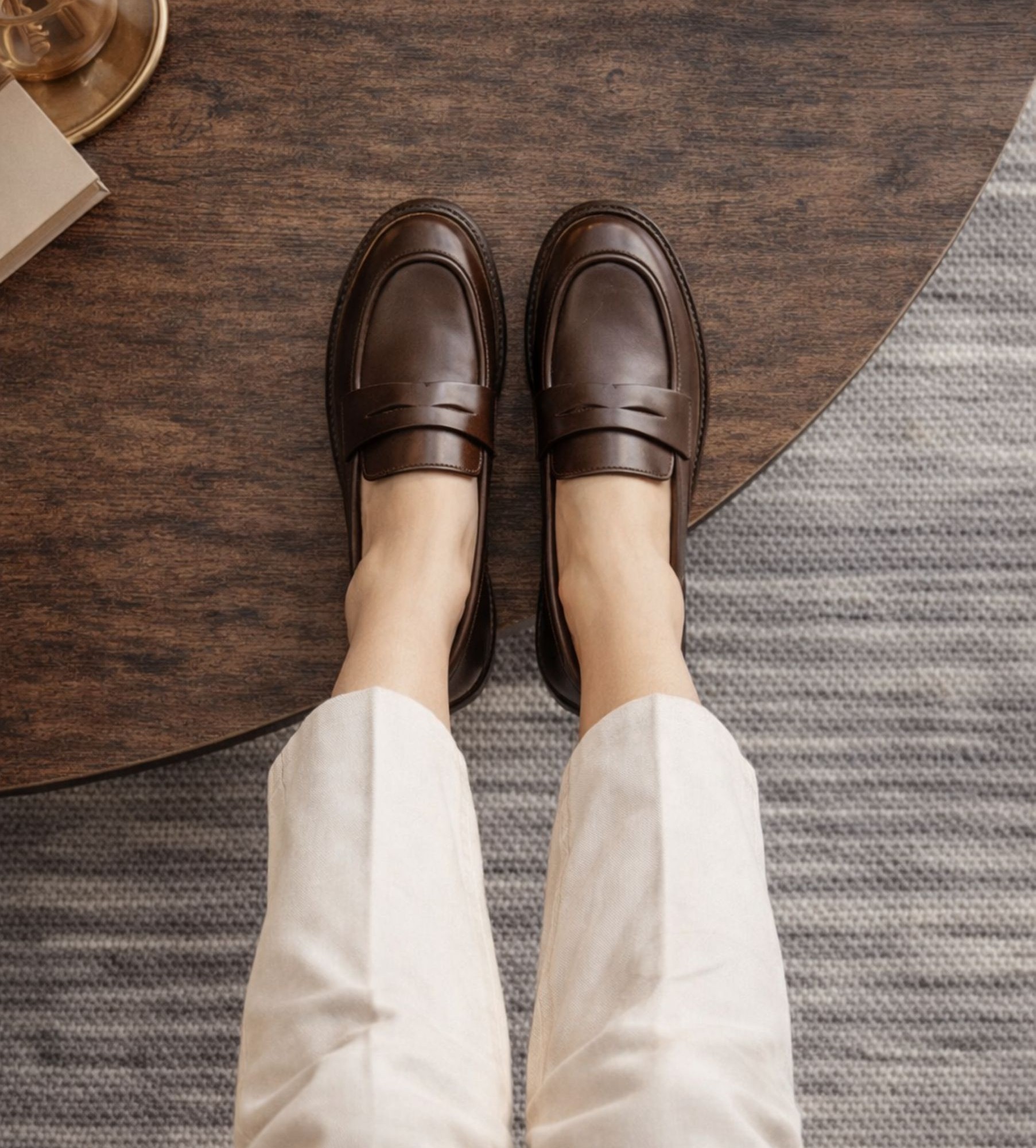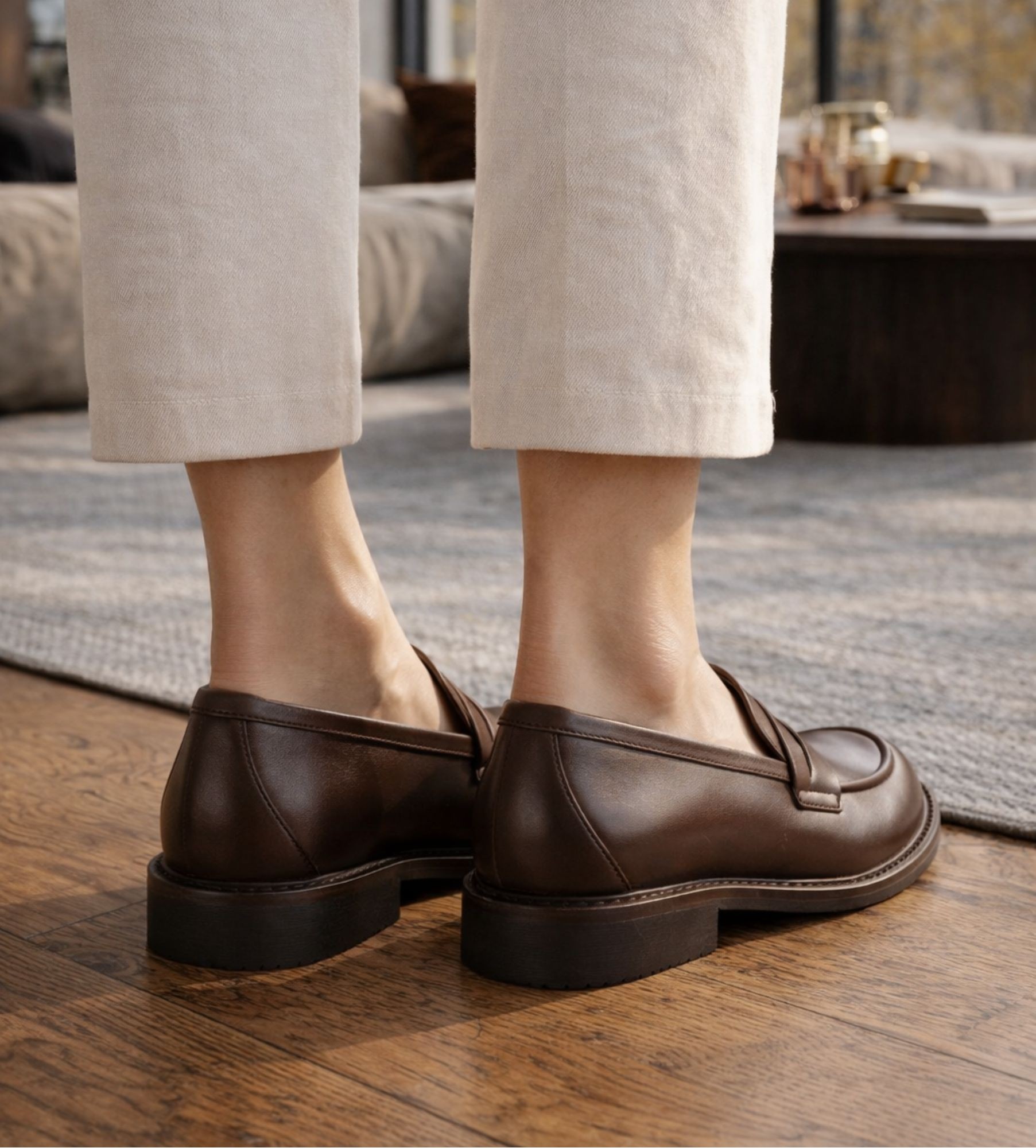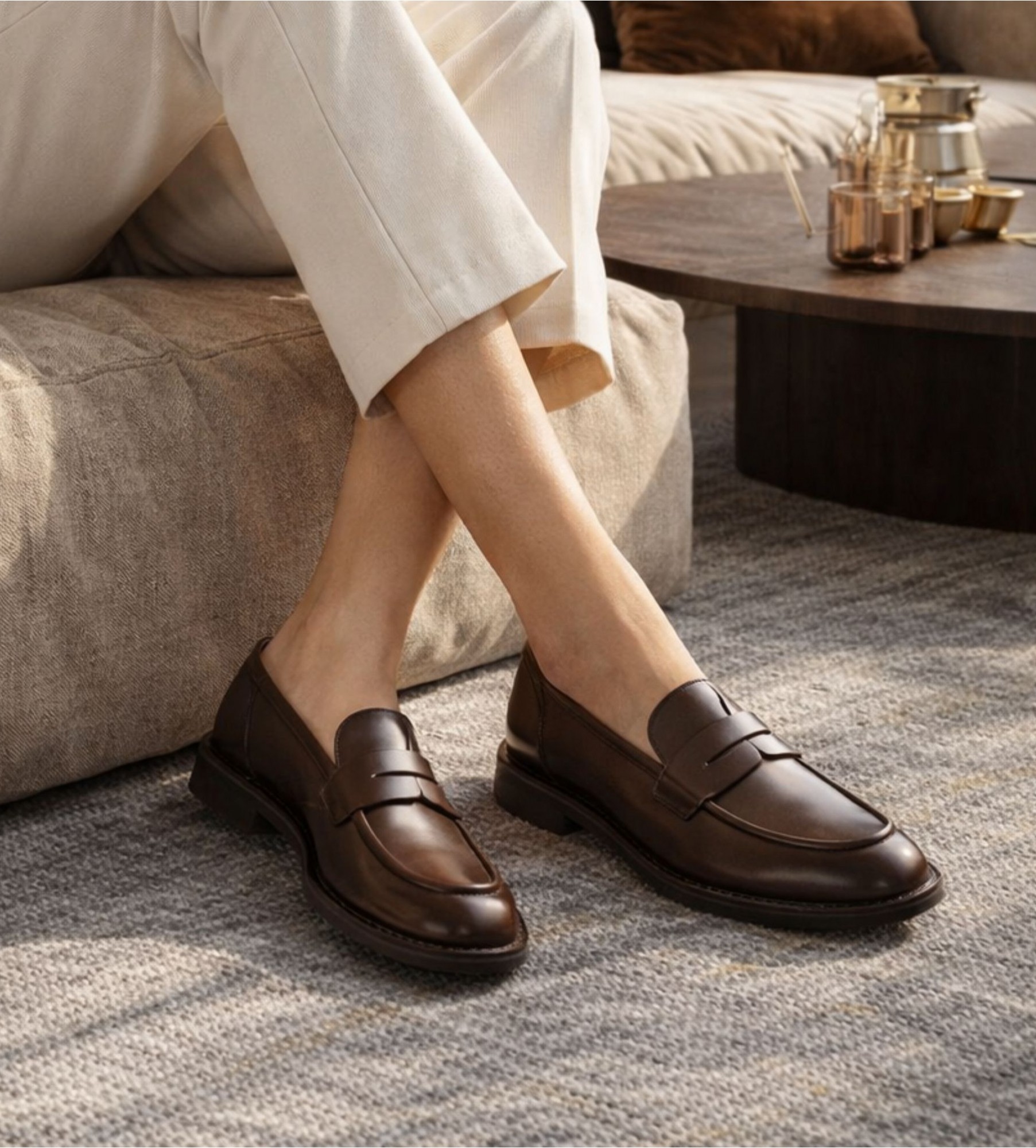 Klasyczne mokasyny w eleganckim odcieniu brązu, wykonane z najwyższej jakości naturalnej skóry cielęcej, to ponadczasowy wybór dla kobiet ceniących klasykę i prostotę. Wnętrze wyściełane miękką skórą jagnięcą zapewnia maksymalny komfort i doskonałą oddychalność, nawet przy intensywnym użytkowaniu. Model wyróżnia się starannym wykonaniem i subtelnymi detalami – klasyczną cholewką, precyzyjnym przeszyciem i minimalistycznym paskiem. Miękka, elastyczna podeszwa i lekko uniesiony profil gwarantują wygodę przez cały dzień.