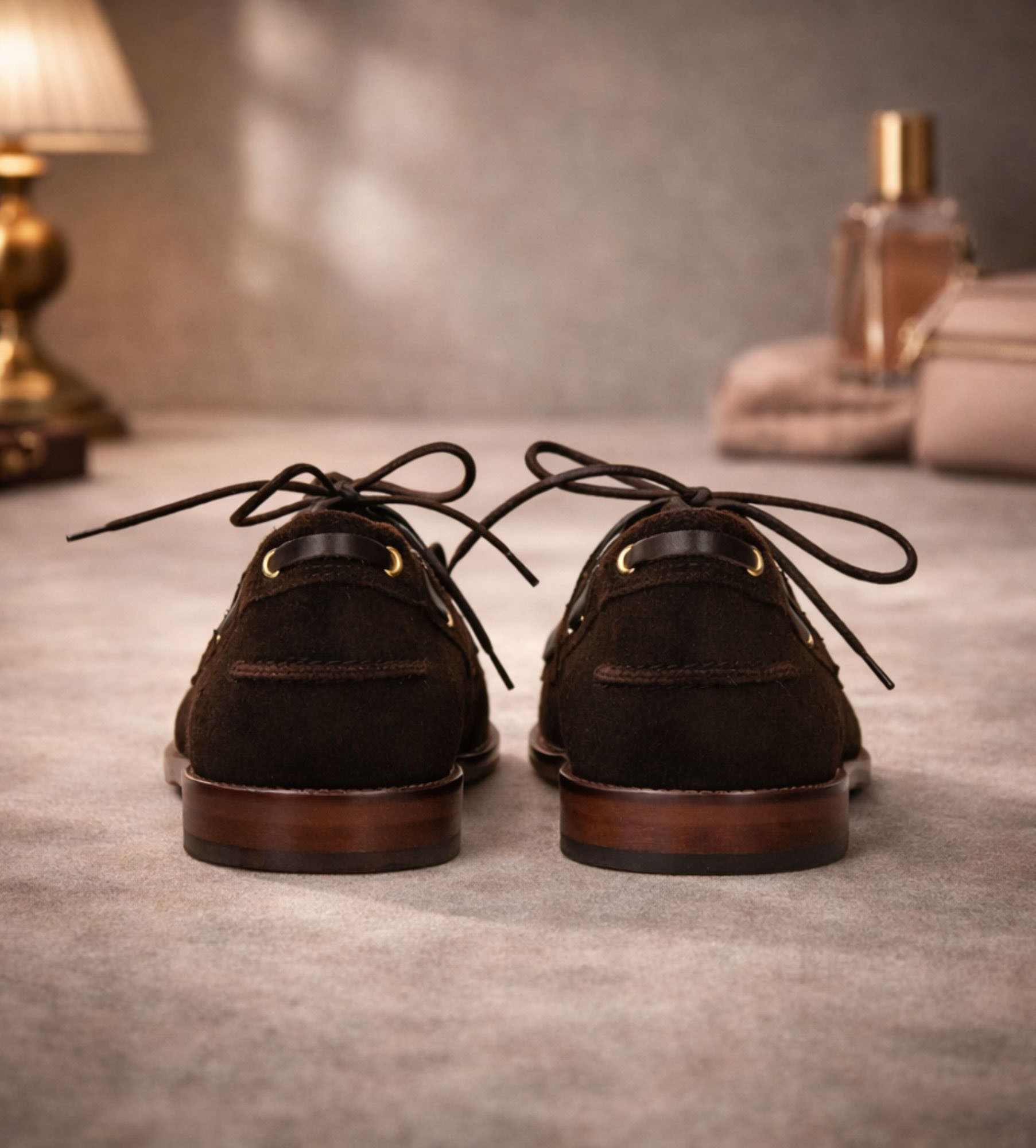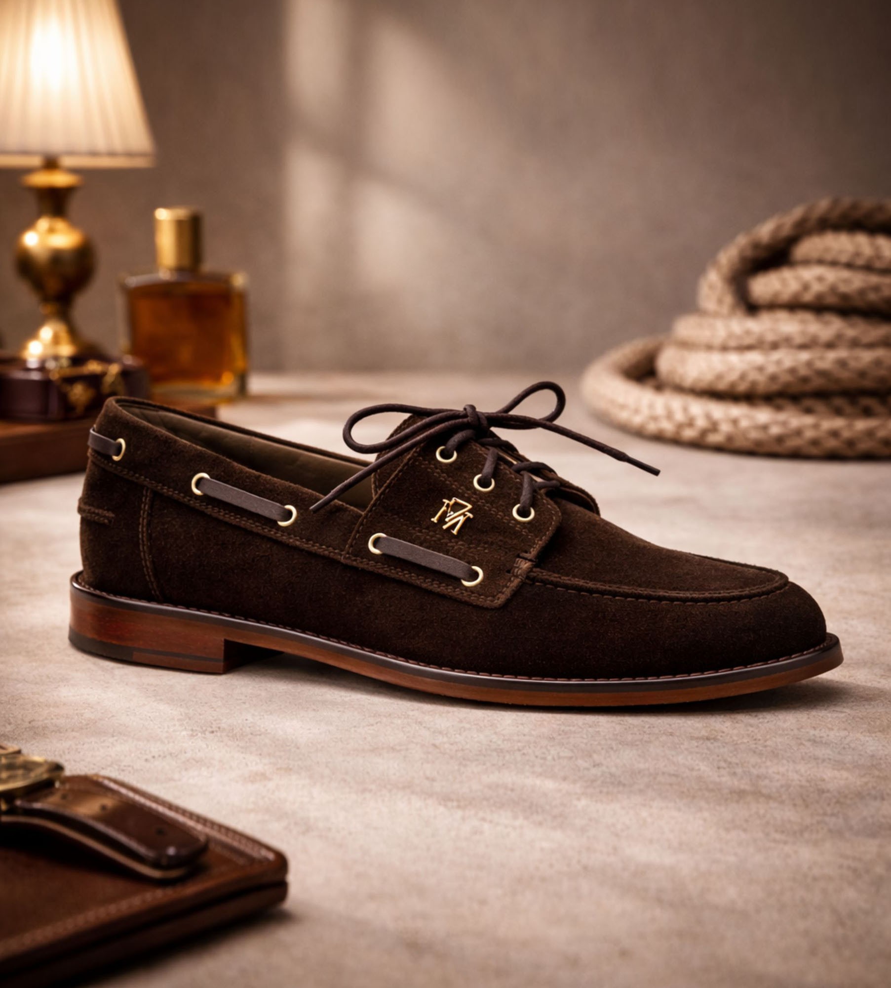 Czekoladowe mokasyny damskie wykonane z miękkiej skóry zamszowej to ukłon w stronę ponadczasowej elegancji w nowoczesnym wydaniu. Ich klasyczny fason, inspirowany stylem żeglarskim, podkreślają szlachetne przeszycia i subtelne detale – złote oczka i delikatne logo marki 7mil w formie monogramu. Środek wyściełany skórą jagnięcą gwarantuje najwyższy komfort noszenia przez cały dzień. Model ten łączy w sobie codzienną wygodę z wyrafinowaną estetyką, dzięki czemu z łatwością dopasuje się do wielu stylizacji – zarówno tych casualowych, jak i bardziej wyrafinowanych. Idealny wybór dla kobiet ceniących jakość, styl i miękkość zamszu w szlachetnym, głębokim odcieniu brązu.