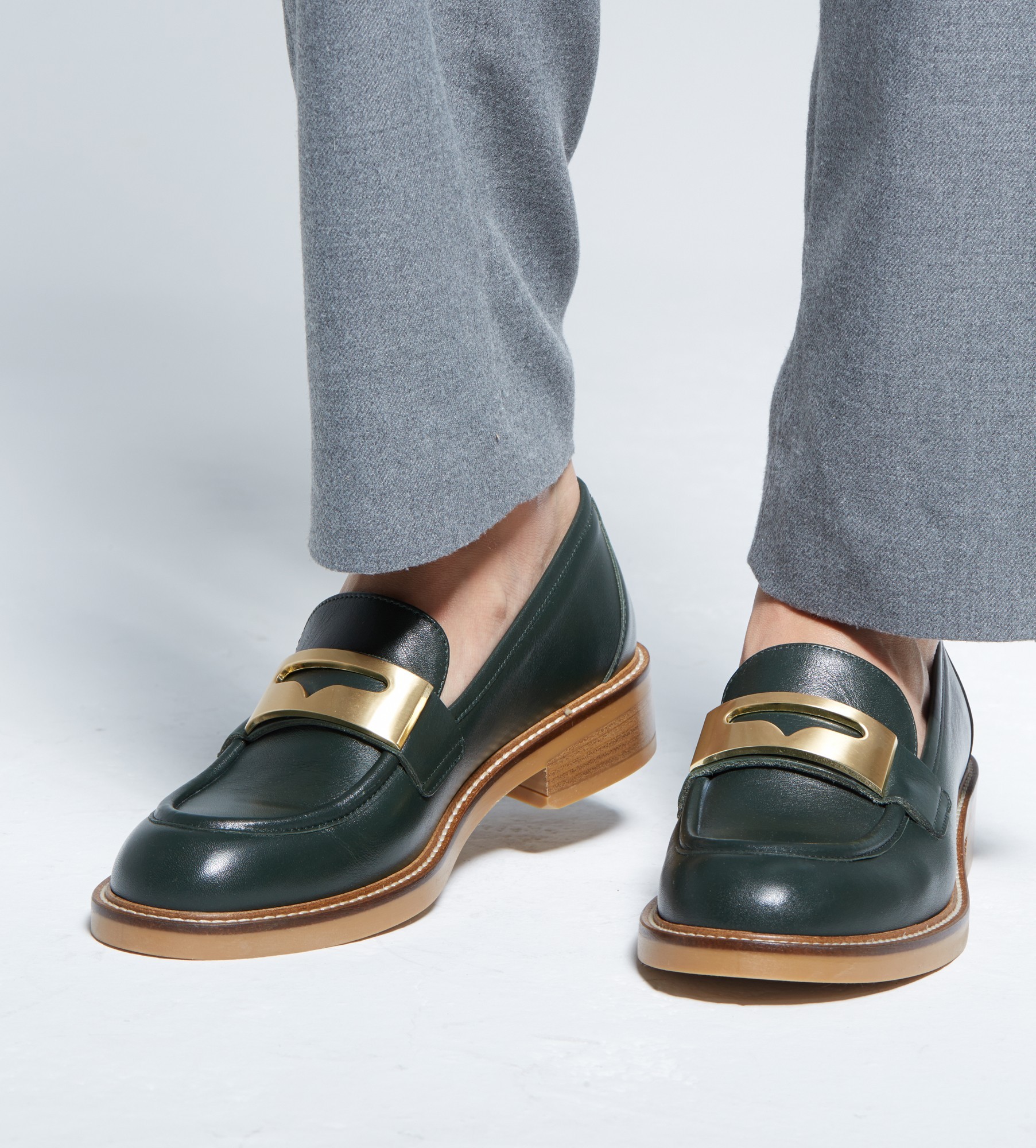 4. Butelkowa zieleń mokasyny damskie