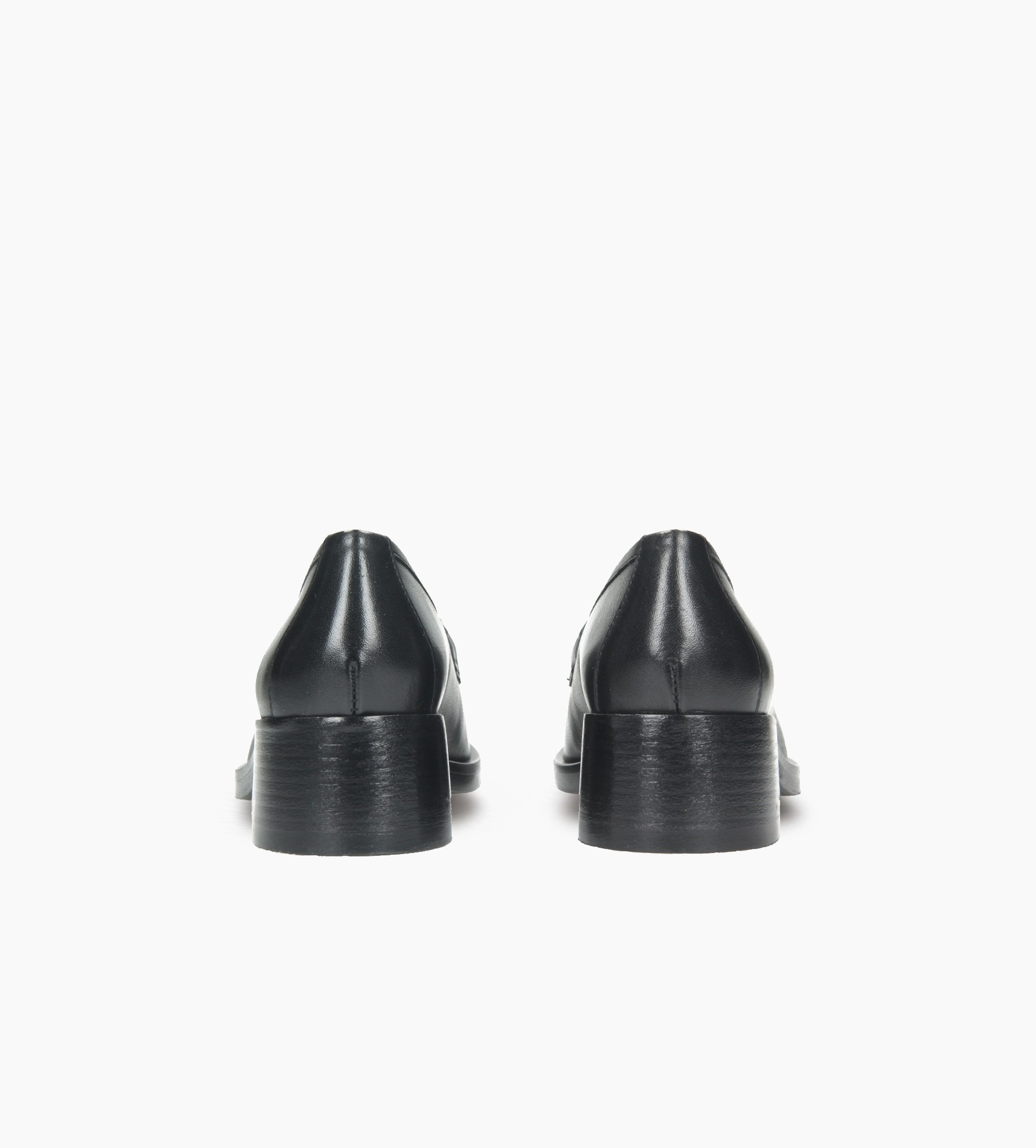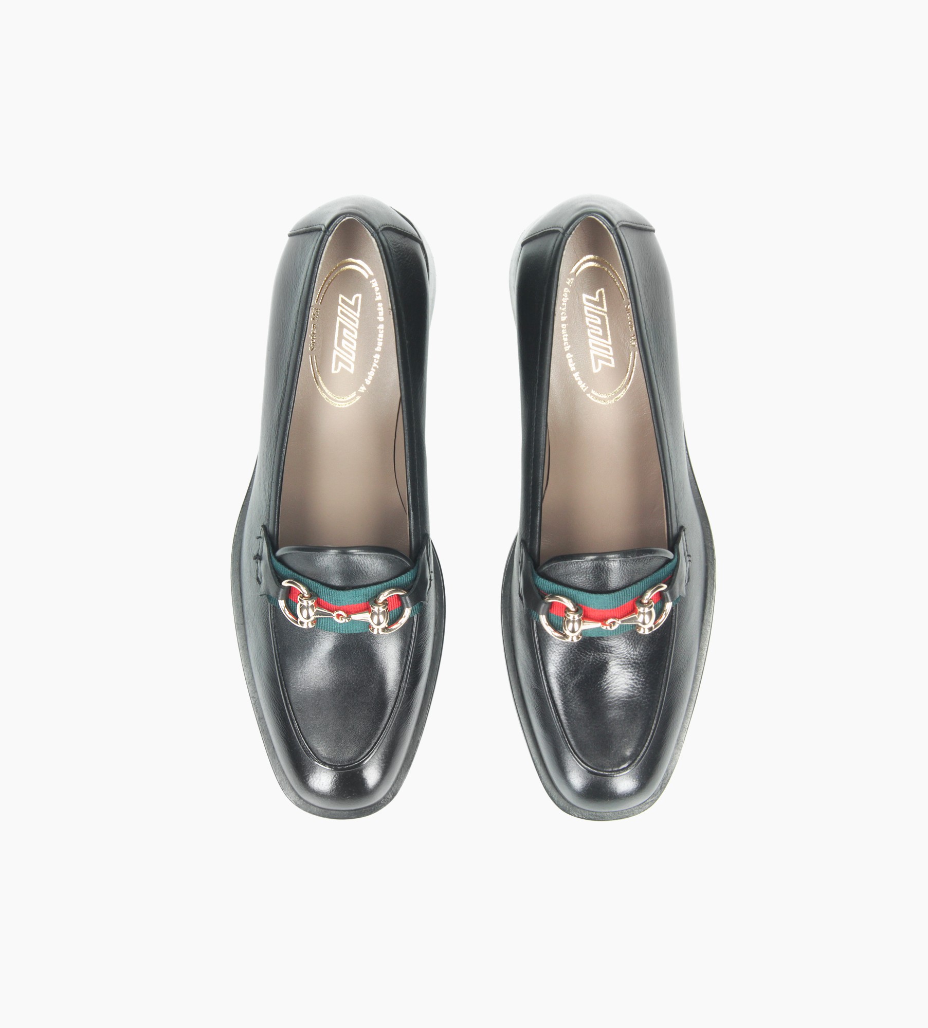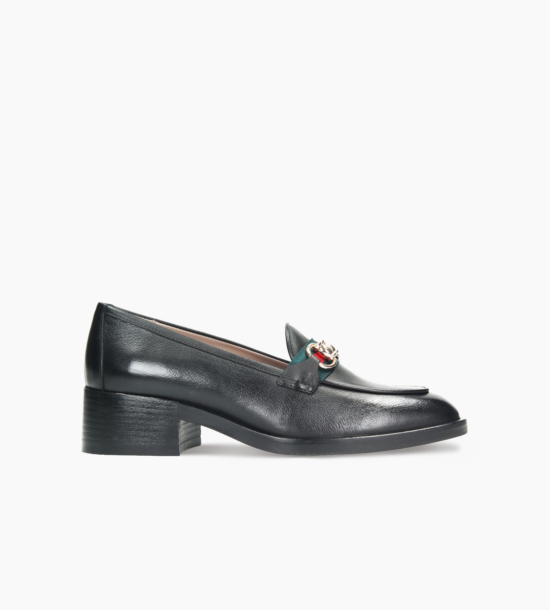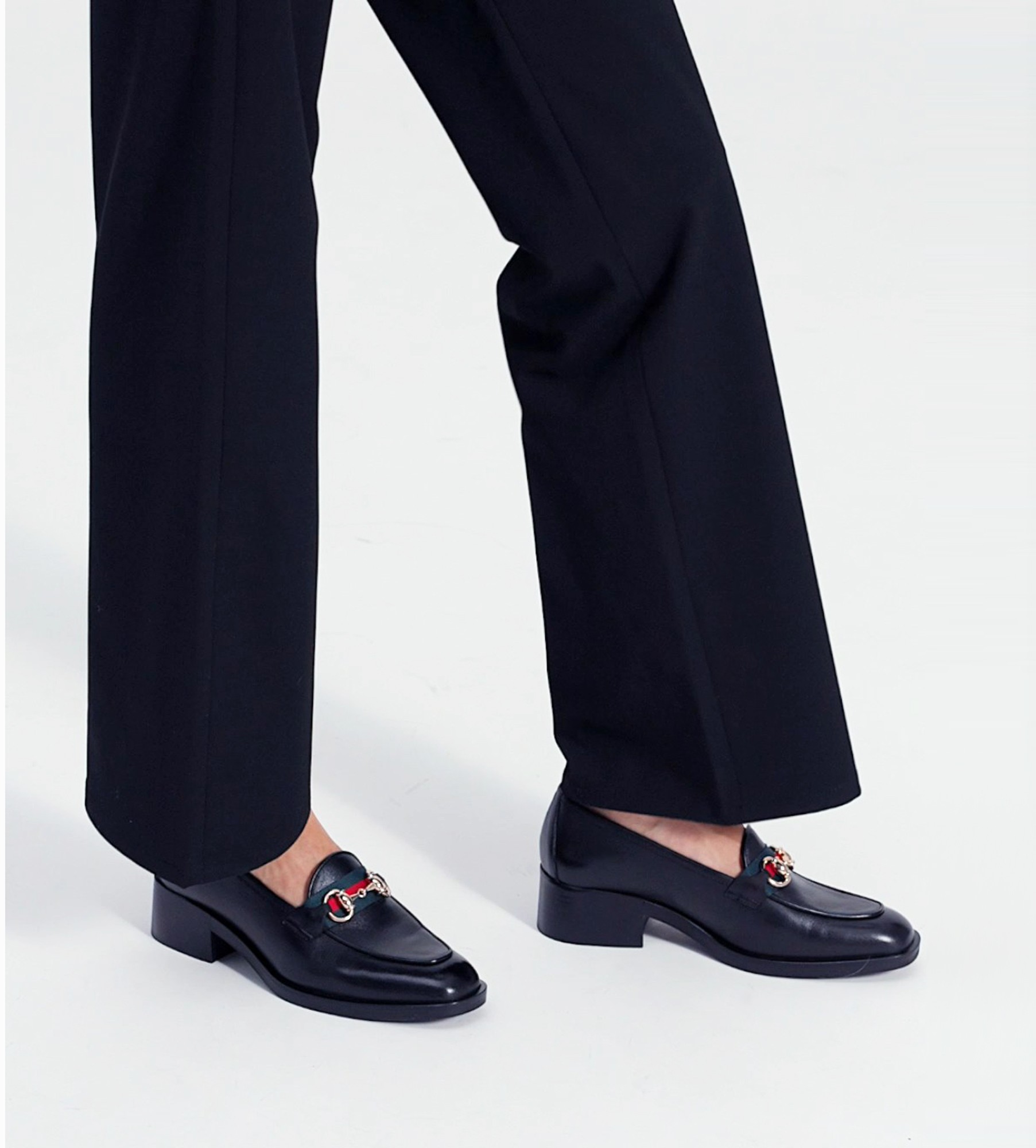 Czarne mokasyny damskie to klasyczna propozycja, łącząca elegancję i wygodę. Wykonane z najwyższej jakości naturalnej skóry cielęcej, gwarantują trwałość i wyrafinowany wygląd. Ich wnętrze wyściełane miękką skórą jagnięcą zapewnia wyjątkowy komfort noszenia. Stabilny, szeroki obcas dodaje subtelnej wysokości, a ozdobna klamra na pasku wprowadza stylowy akcent. Idealne do stylizacji zarówno biznesowych, jak i casualowych, podkreślają elegancki charakter każdej stylizacji, zapewniając jednocześnie wygodę przez cały dzień.