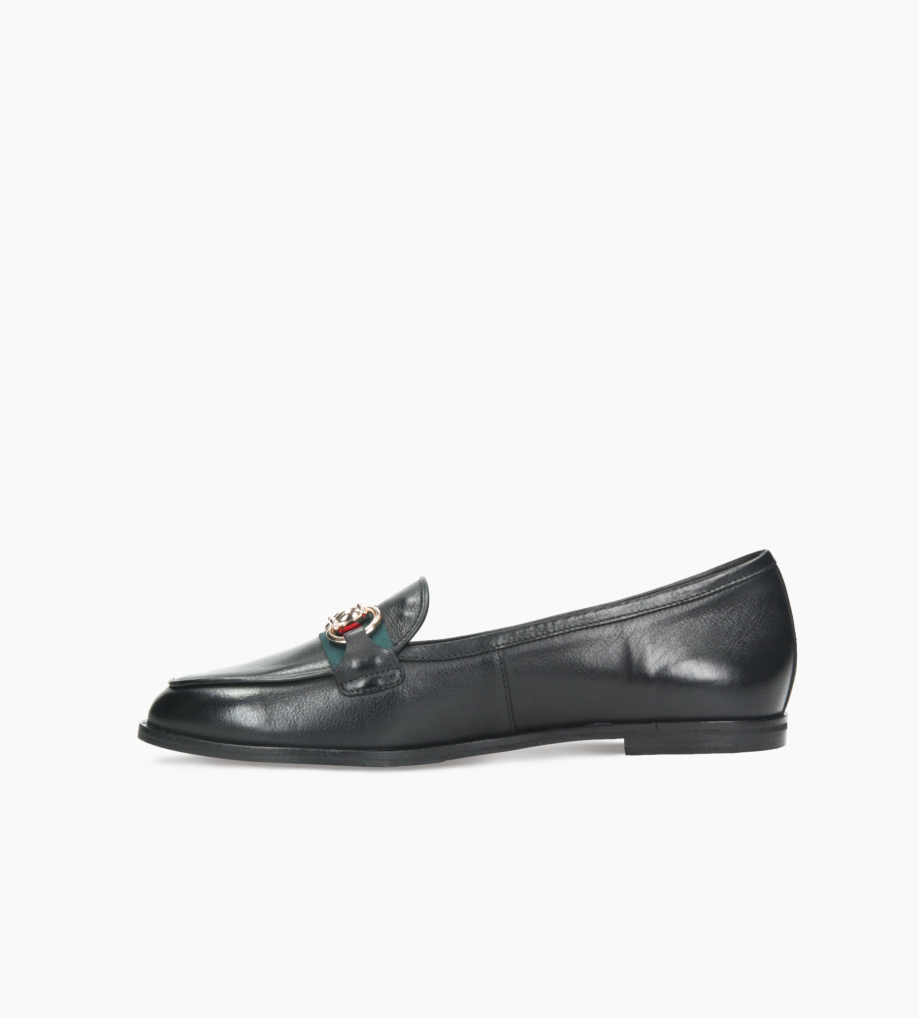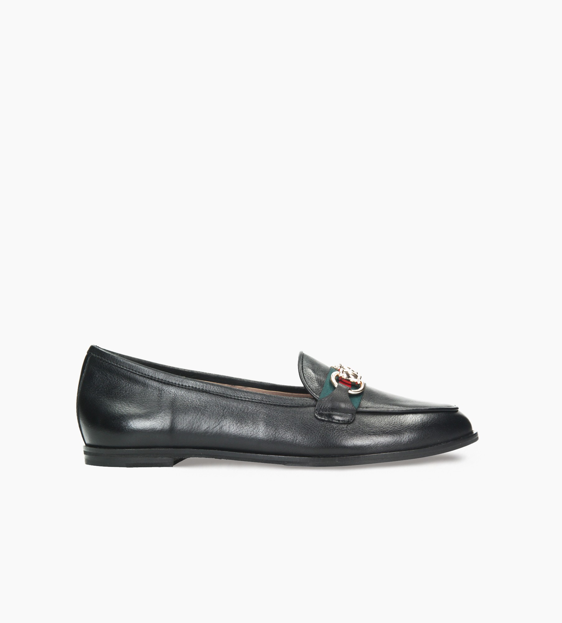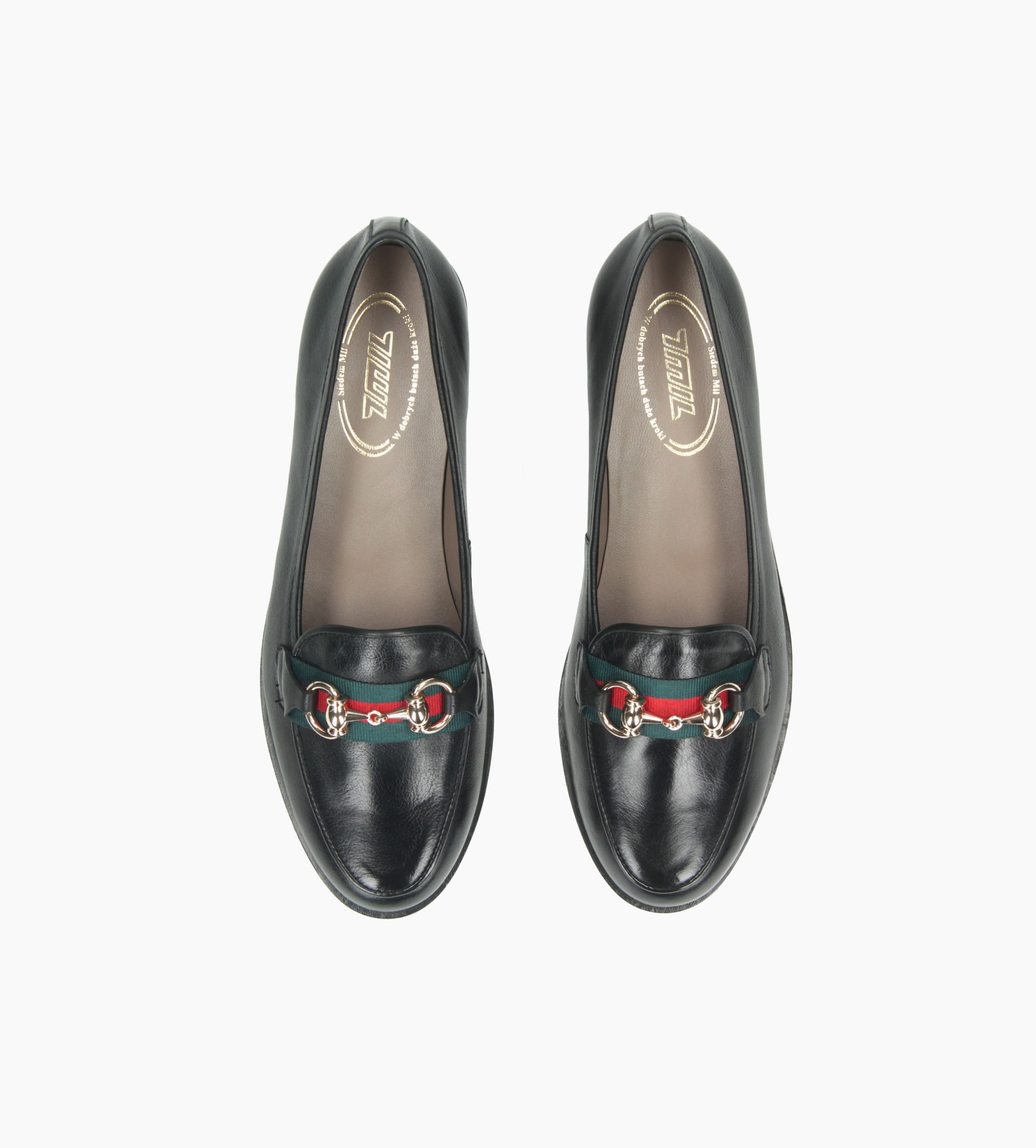 Te wyjątkowe mokasyny to kwintesencja ponadczasowej elegancji i komfortu. Wykonane z wysokiej jakości naturalnej skóry cielęcej, zachwycają gładką, miękką fakturą i perfekcyjnym dopasowaniem do stopy. Ich wnętrze wyściełane jest skórą jagnięcą, zapewniającą niezrównaną miękkość i oddychalność, dzięki czemu są idealnym wyborem na cały dzień. Charakterystycznym elementem butów jest dekoracyjny materiałowy pasek z elegancką metalową klamrą. Stylowe połączenie ciemnozielonego i czerwonego akcentu dodaje mokasynom klasy i subtelnego charakteru vintage, nawiązując do klasycznych modeli w luksusowym stylu.