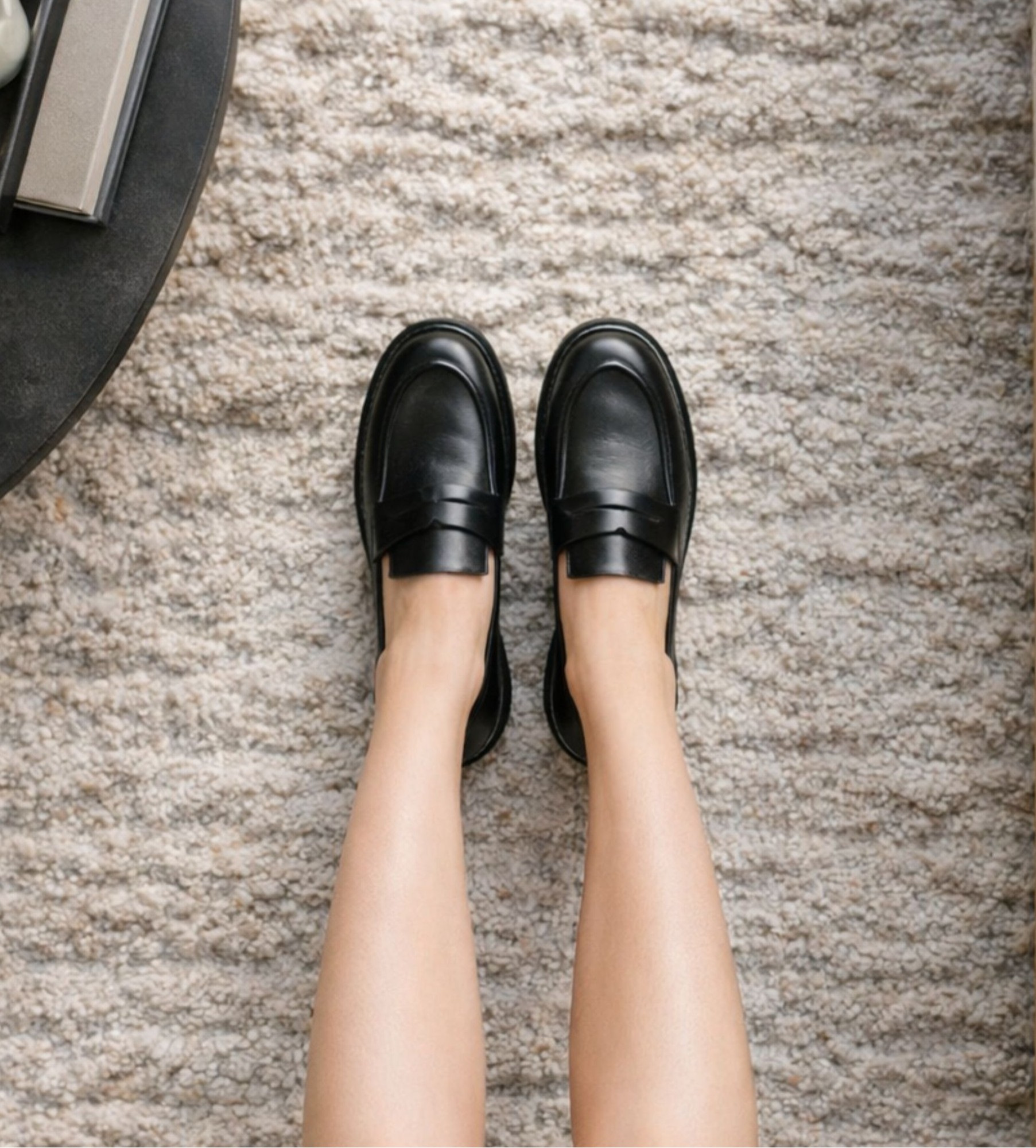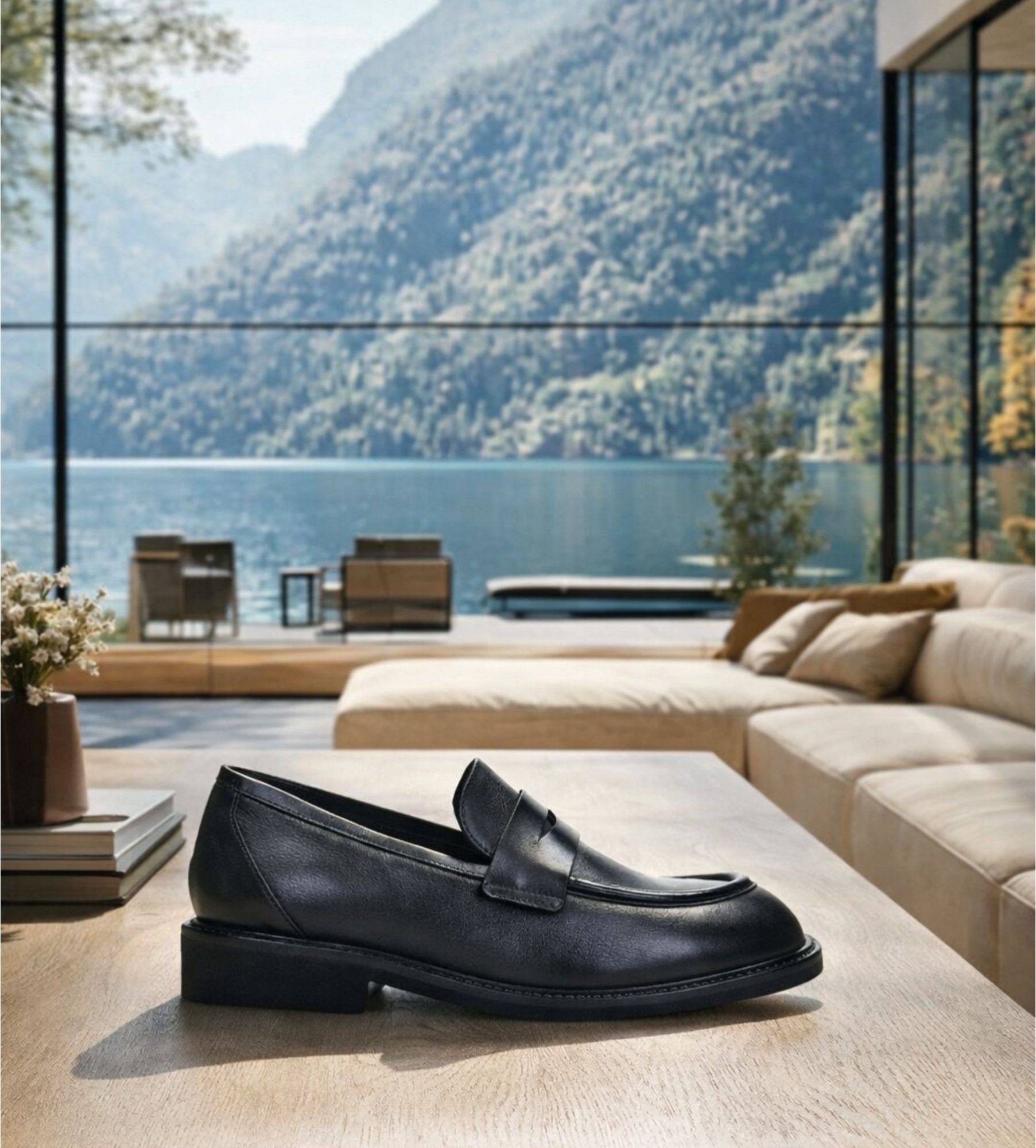 Klasyczne czarne mokasyny wykonane z naturalnej skóry cielęcej to esencja codziennej elegancji i wygody. Wnętrze buta wyściełane miękką skórą jagnięcą gwarantuje komfort noszenia, doskonałe dopasowanie oraz oddychalność przez cały dzień. Minimalistyczny fason z eleganckim przeszyciem i subtelnym paskiem sprawia, że mokasyny doskonale komponują się od garniturów po swobodne jeansy i wełniane spódnice.Solidna podeszwa i klasyczna linia zapewniają uniwersalność i ponadczasowy wygląd, dzięki czemu to idealny model zarówno do pracy, jak i na co dzień. Dla kobiet, które cenią jakość, ponadczasowy styl i nowoczesny komfort w klasycznym wydaniu.