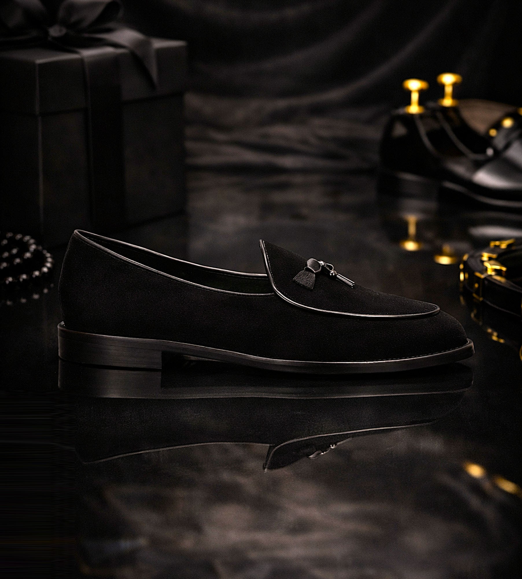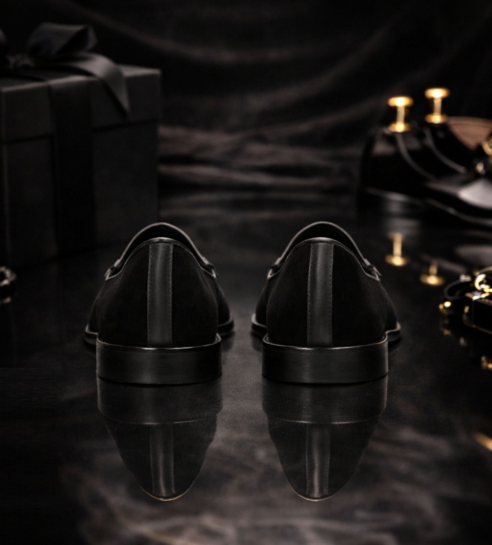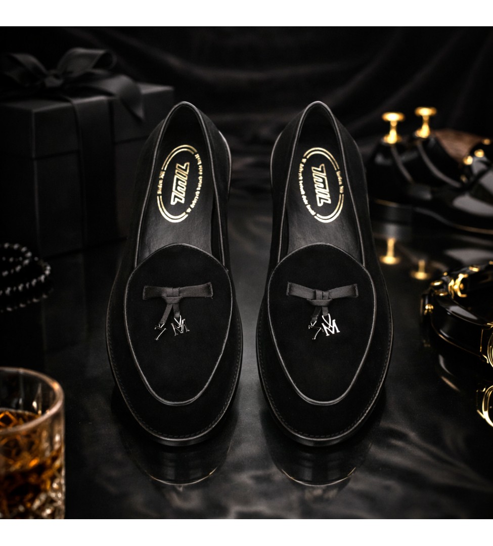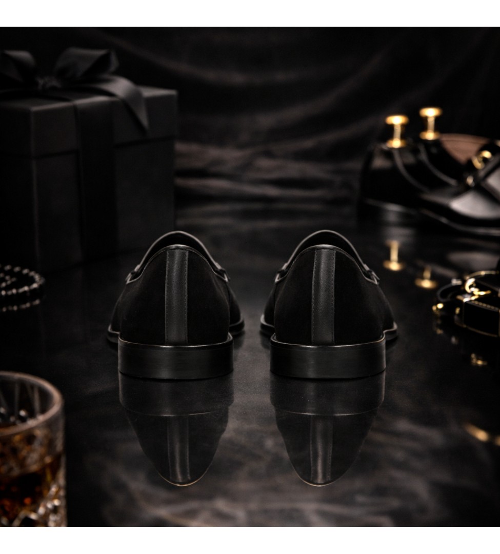 Eleganckie, czarne mokasyny damskie wykonane z wysokiej jakości zamszu to esencja ponadczasowej klasy i subtelnego luksusu. Wnętrze buta wykończone zostało miękką skórą jagnięcą, która zapewnia wyjątkowy komfort noszenia. Delikatny monogram marki oraz dekoracyjna kokardka ze skóry licowej na cholewce dodają całości wysmakowanego charakteru. Idealne na co dzień do pracy, jak i na wieczorne wyjścia – sprawdzą się w każdej garderobie kobiety ceniącej nowoczesną elegancję.
