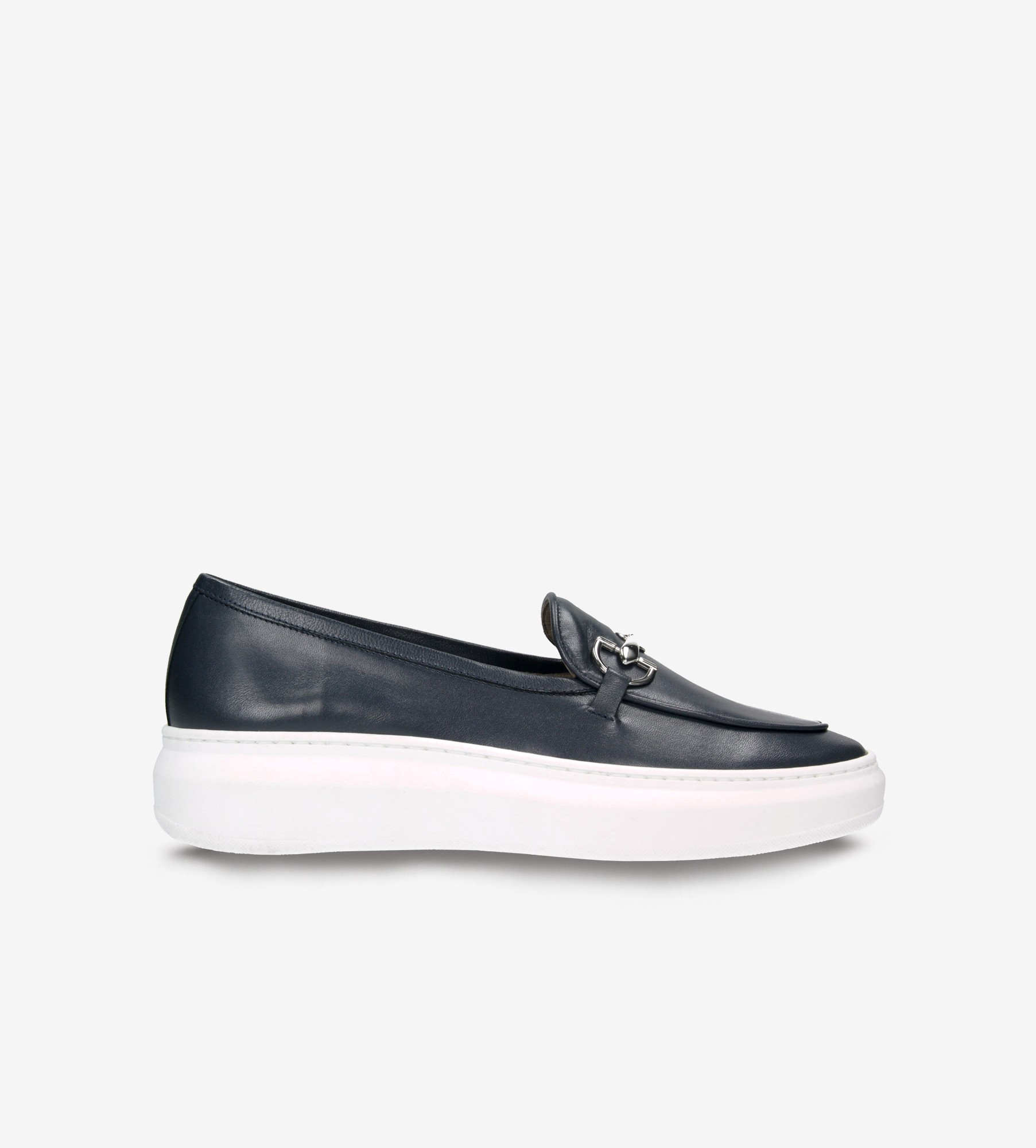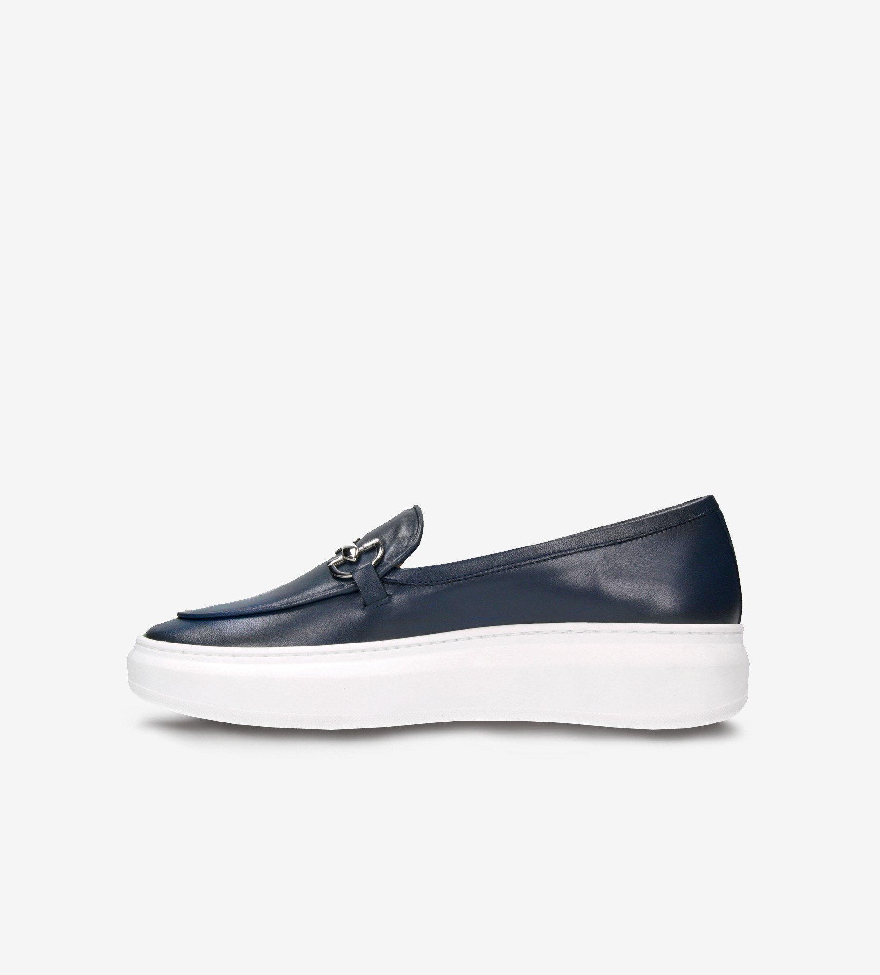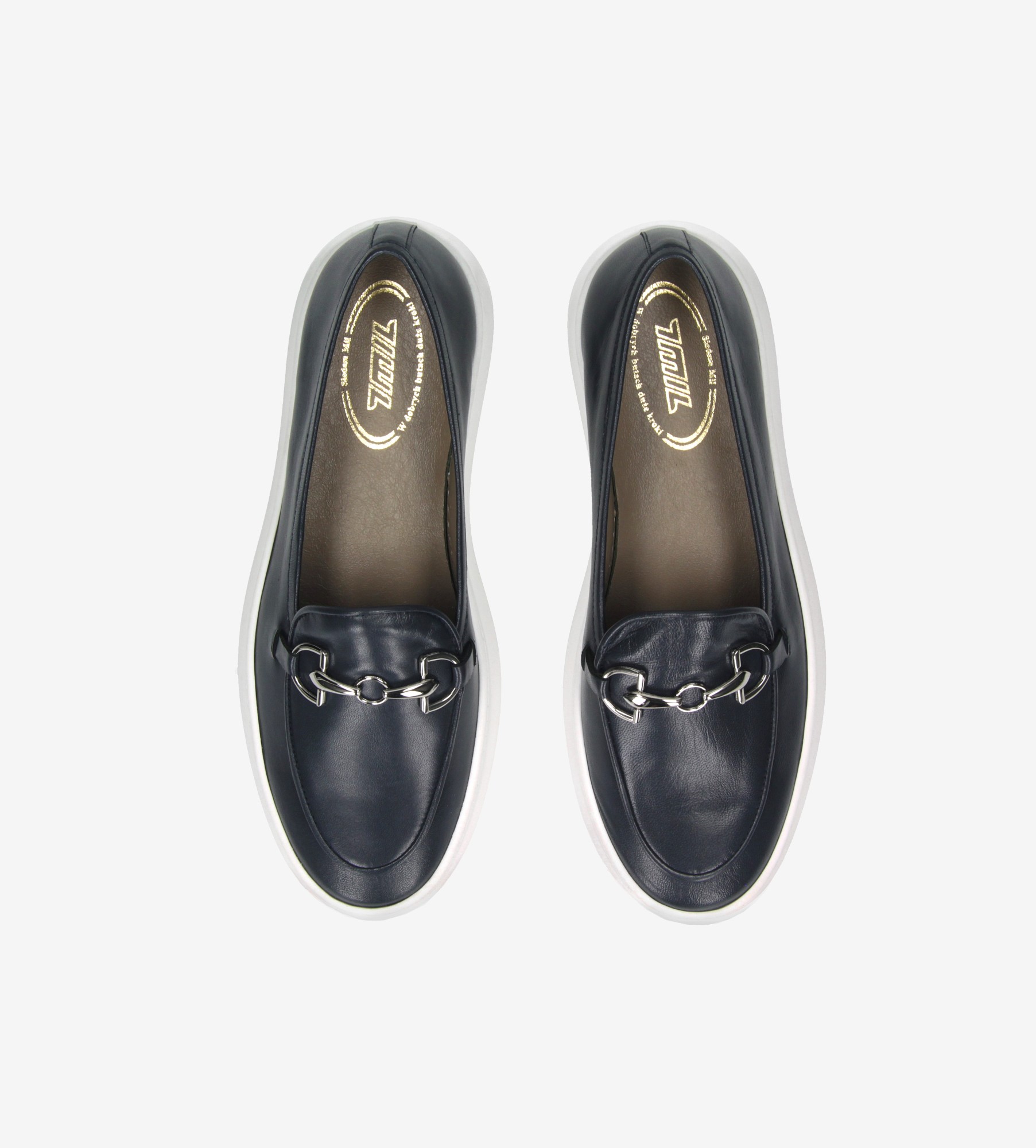 Granatowe mokasyny damskie to eleganckie buty wykonane z naturalnej skóry licowej, ozdobione subtelną srebrną ozdobą na przodzie. Wnętrze i wkładka z miękkiej skóry jagnięcej zapewniają wysoki komfort noszenia. Mokasyny mają niski obcas o wysokości 2 cm. Dzięki klasycznemu designowi i wysokiej jakości wykonania, są idealne na różne okazje, łącząc w sobie styl i wygodę.