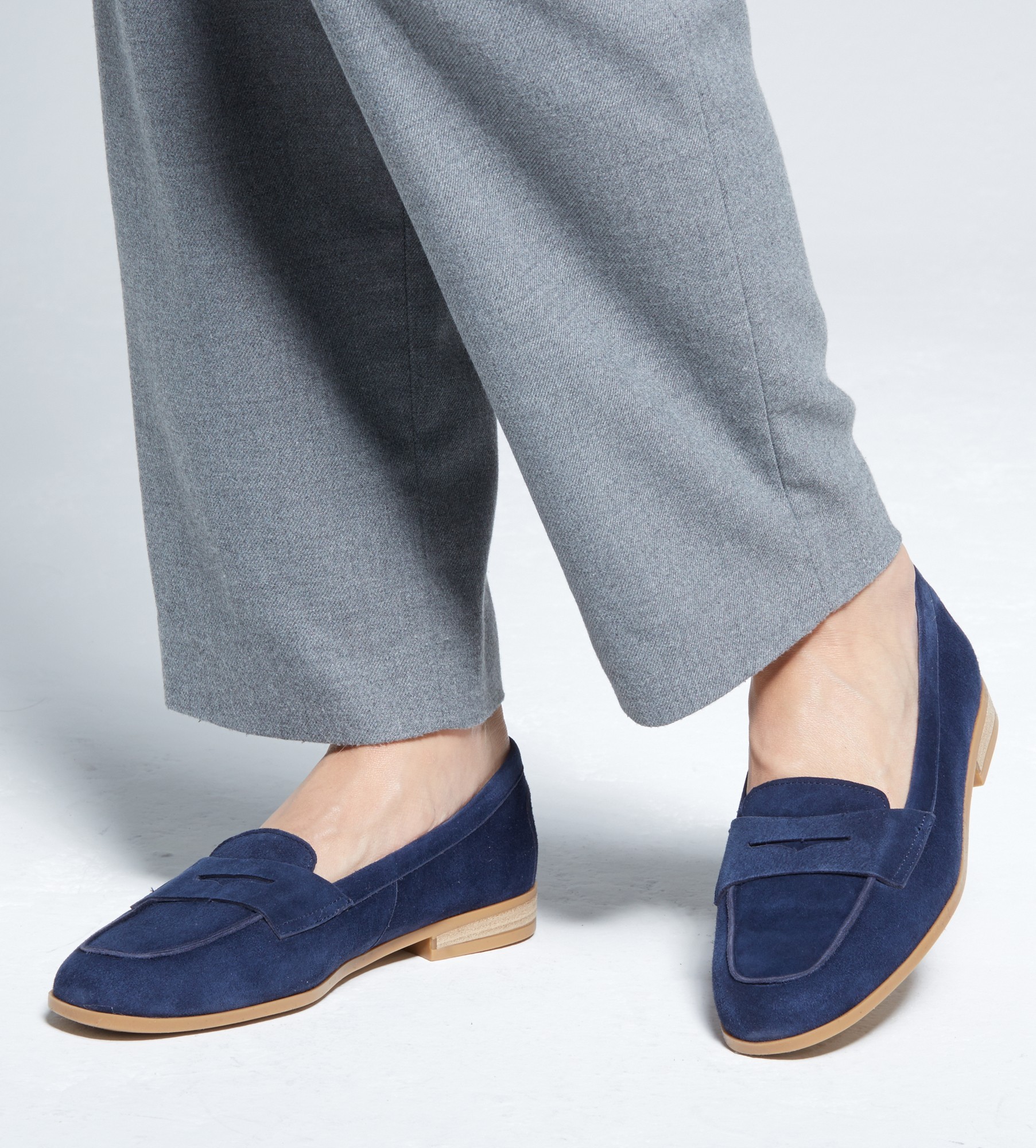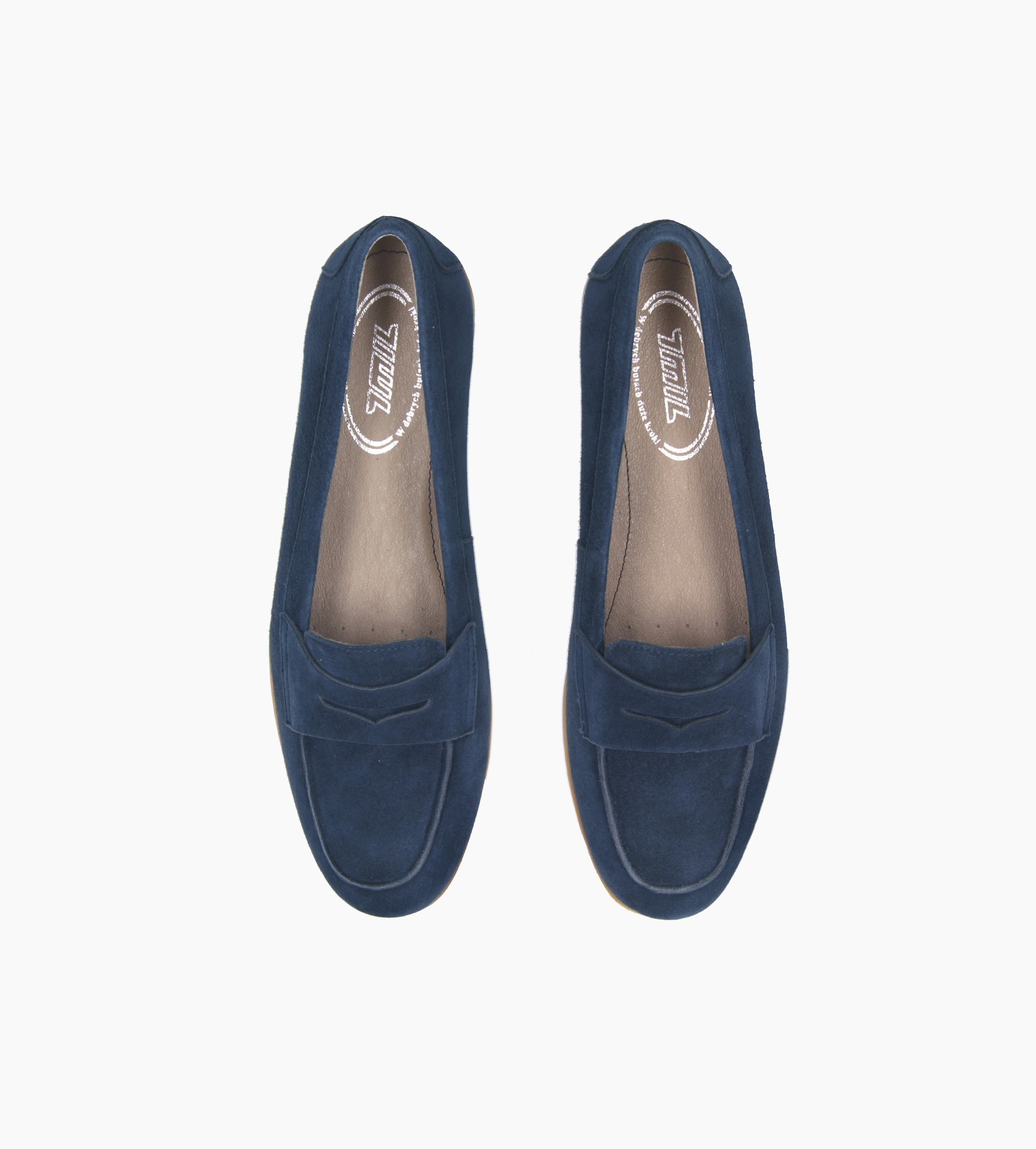 Granatowe lekkie mokasyny damskie to eleganckie i wygodne buty wykonane z naturalnej skóry zamszowej. Wyposażone w miękką skórzaną wkładkę z naturalnej skóry jagnięcej, zapewniają doskonały komfort noszenia. Ich delikatna forma oraz granatowy kolor dodają stylu i klasy każdej stylizacji. Mokasyny mają niski obcas o wysokości 2,5 cm co czyni je idealnymi zarówno na co dzień, jak i na bardziej formalne okazje.