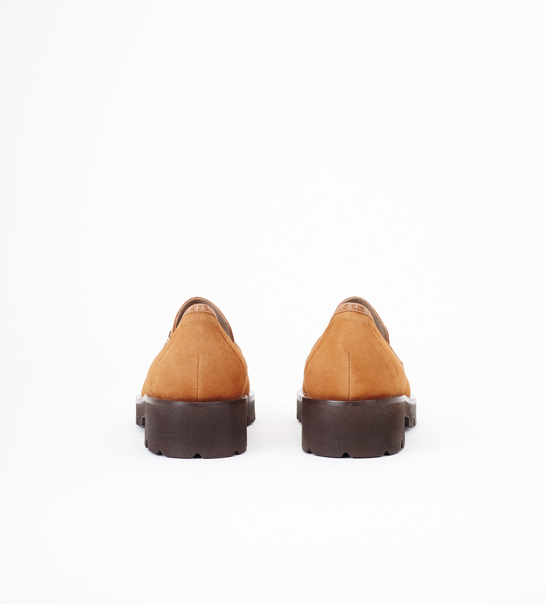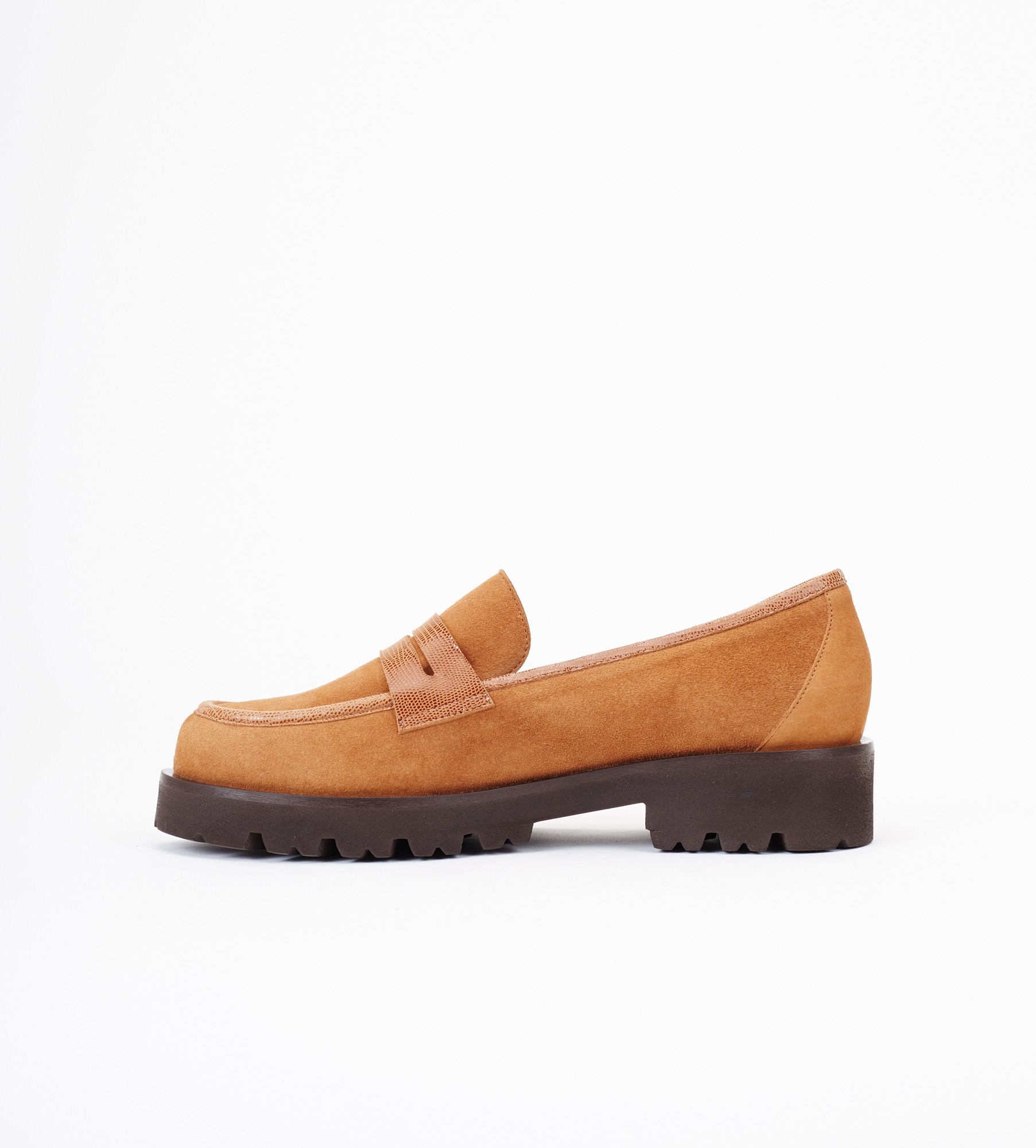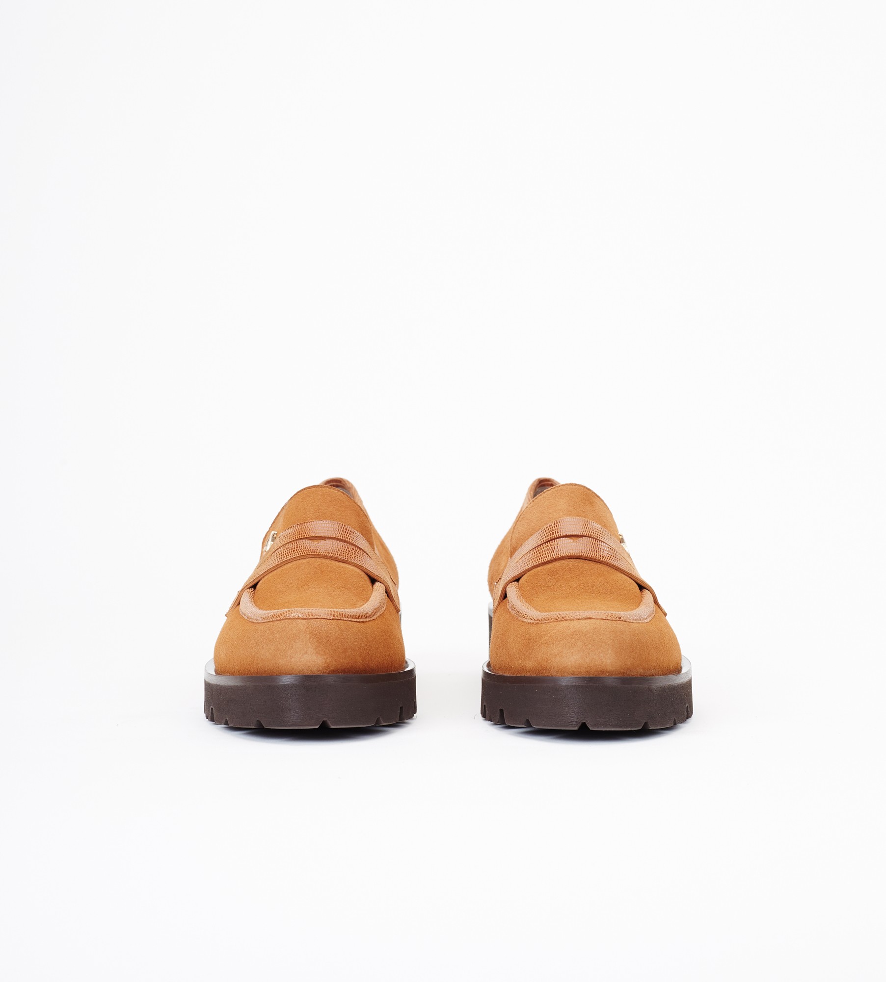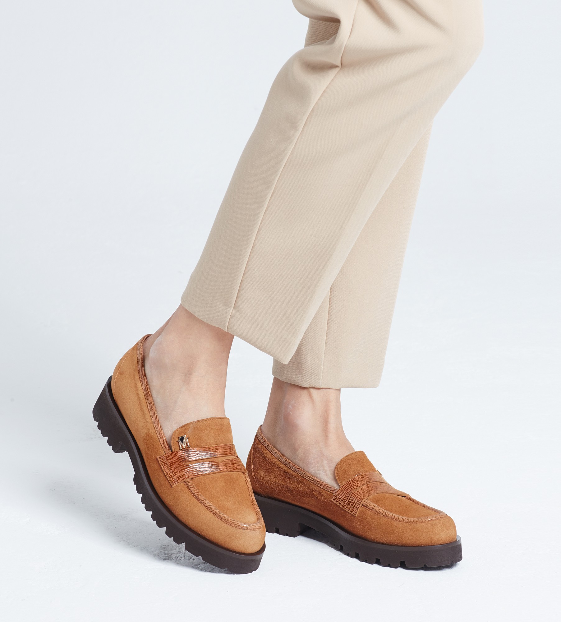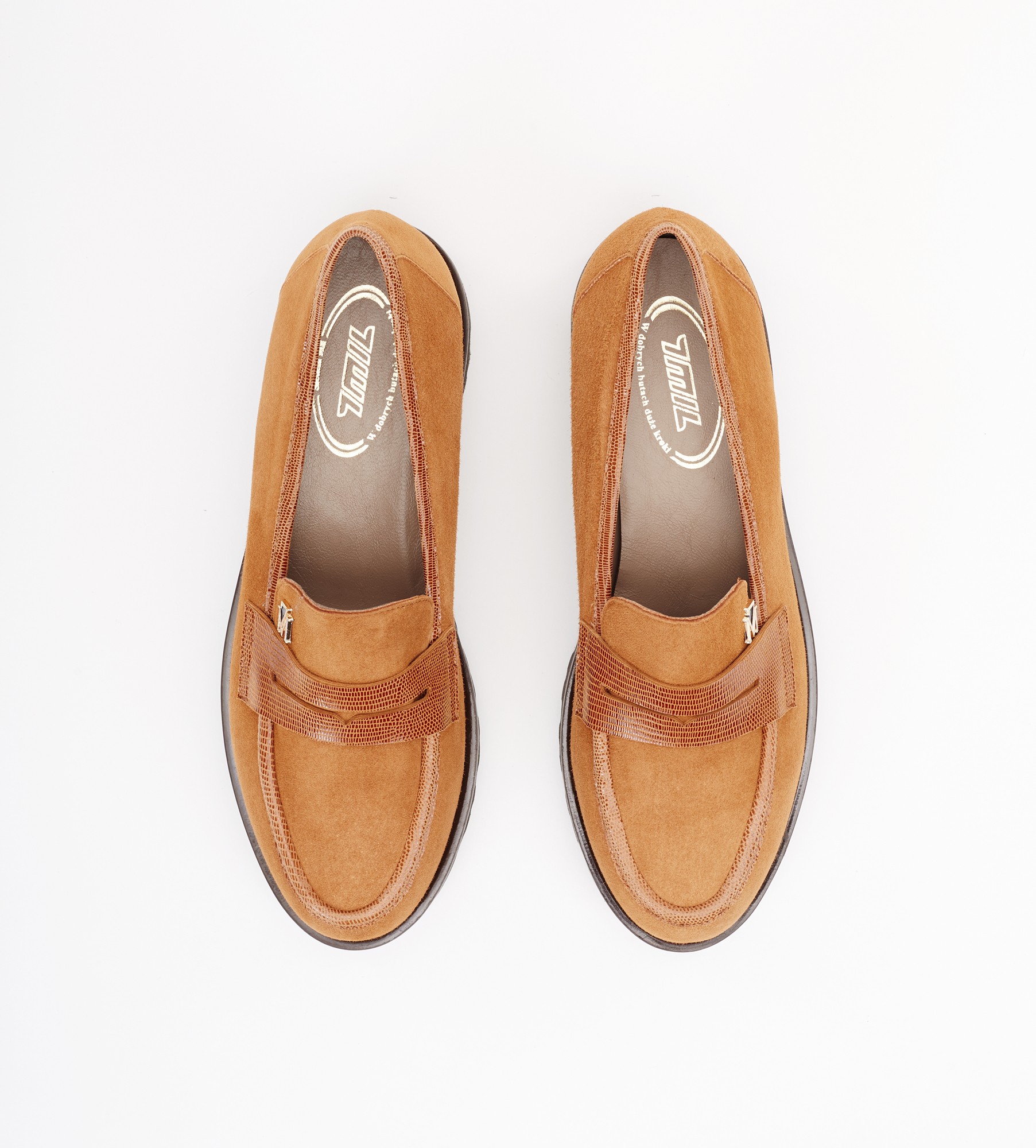 Mokasyny damskie wykonane z naturalnej skóry zamszowej w kolorze jasnego brązu to idealne połączenie klasyki i elegancji. Prezentują się niezwykle stylowo dzięki złotej delikatnej ozdobie. Wnętrze butów wyłożone jest miękką skórą jagnięcą, która zapewnia maksymalny komfort noszenia. Miękka wkładka skórzana, elastyczna podeszwa i niski obcas 3 cm dodatkowo podnoszą wygodę użytkowania.