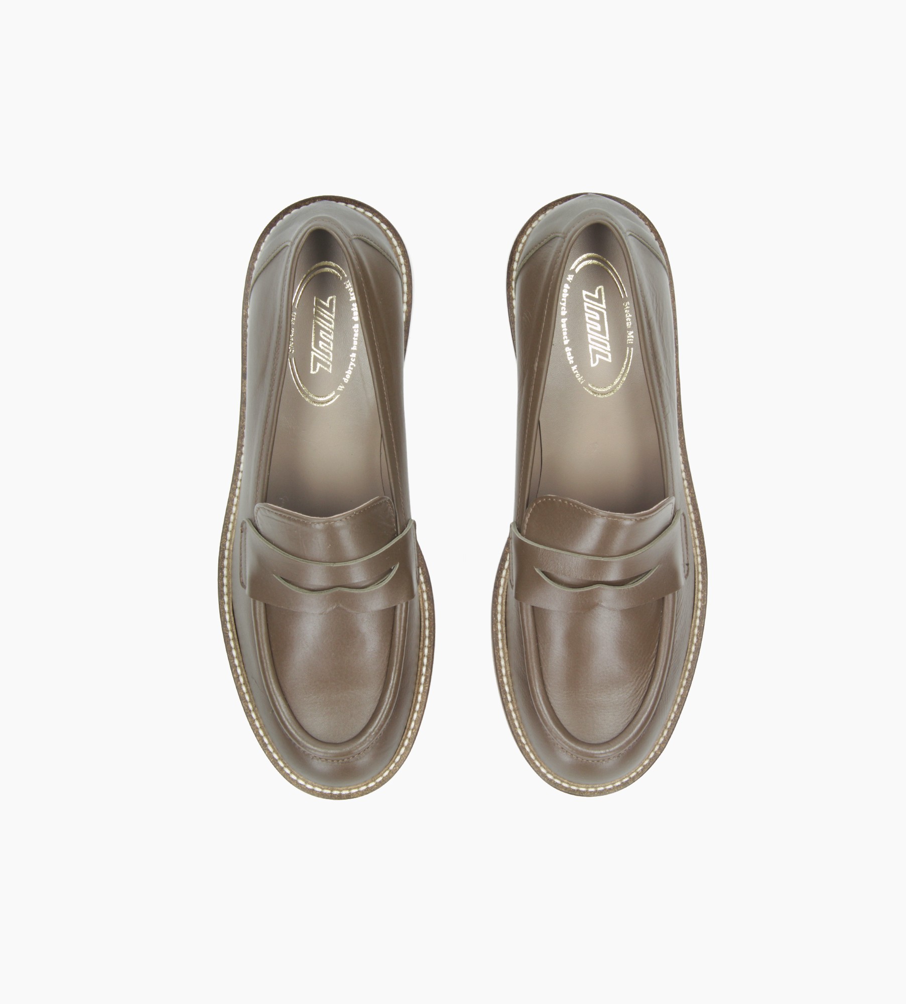 Oliwkowe mokasyny damskie to stylowe i wszechstronne obuwie, które idealnie wpisuje się w jesienne trendy. Wykonane z wysokiej jakości licowej skóry, te mokasyny wyróżniają się subtelnym oliwkowym odcieniem, który dodaje im nowoczesnego, a zarazem eleganckiego charakteru. Ich gładkie wykończenie podkreśla minimalistyczny design, który sprawia, że są one idealnym wyborem zarówno na co dzień, jak i na bardziej formalne okazje. Mokasyny te są nie tylko stylowe, ale również niezwykle wygodne. Miękka skóra licowa doskonale dopasowuje się do stopy, a elastyczna podeszwa zapewnia komfort noszenia przez cały dzień. Drobne, starannie wykonane detale, takie jak delikatne przeszycia i subtelne zapięcie, dodają całości wyrafinowanego wyglądu, który łączy w sobie klasykę i nowoczesność.