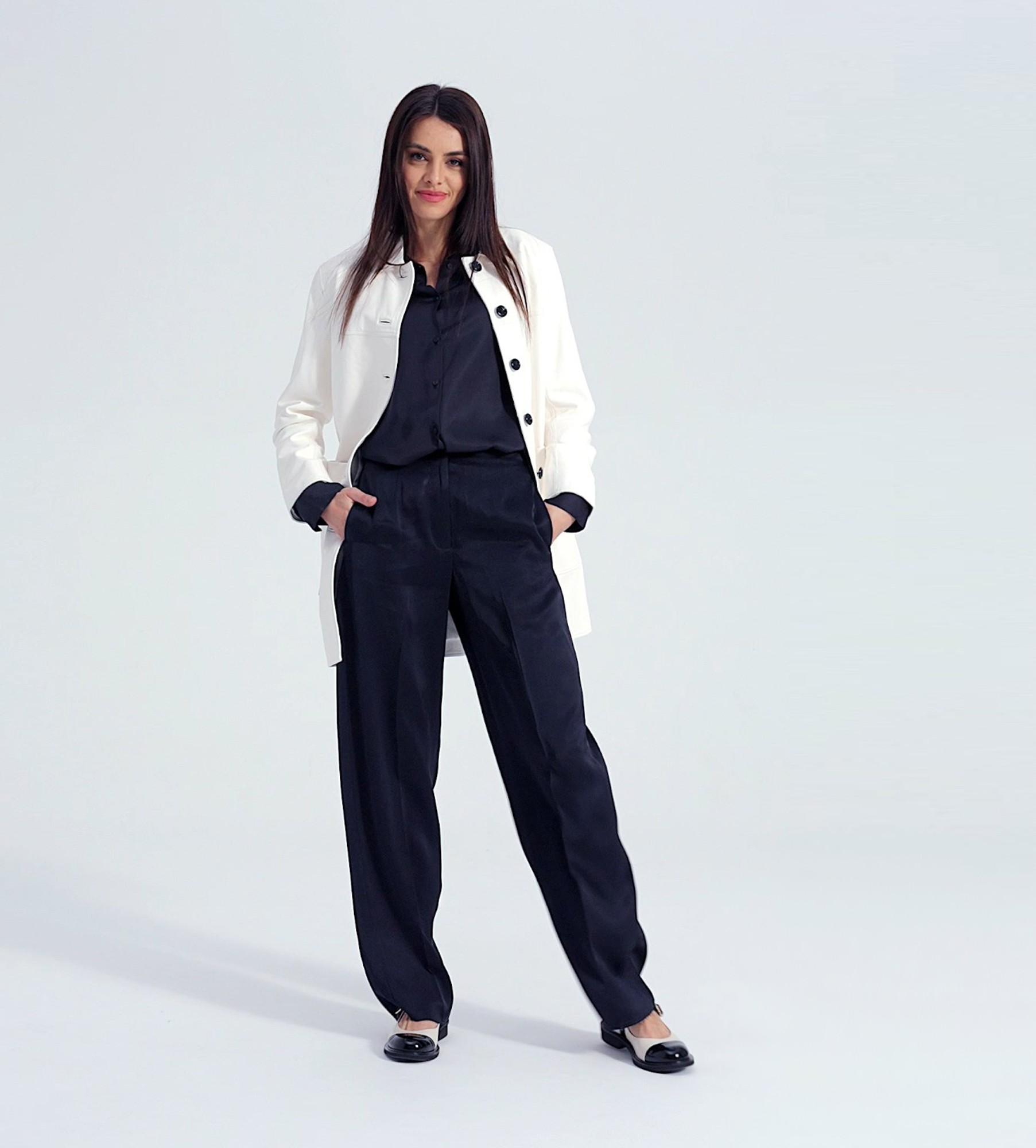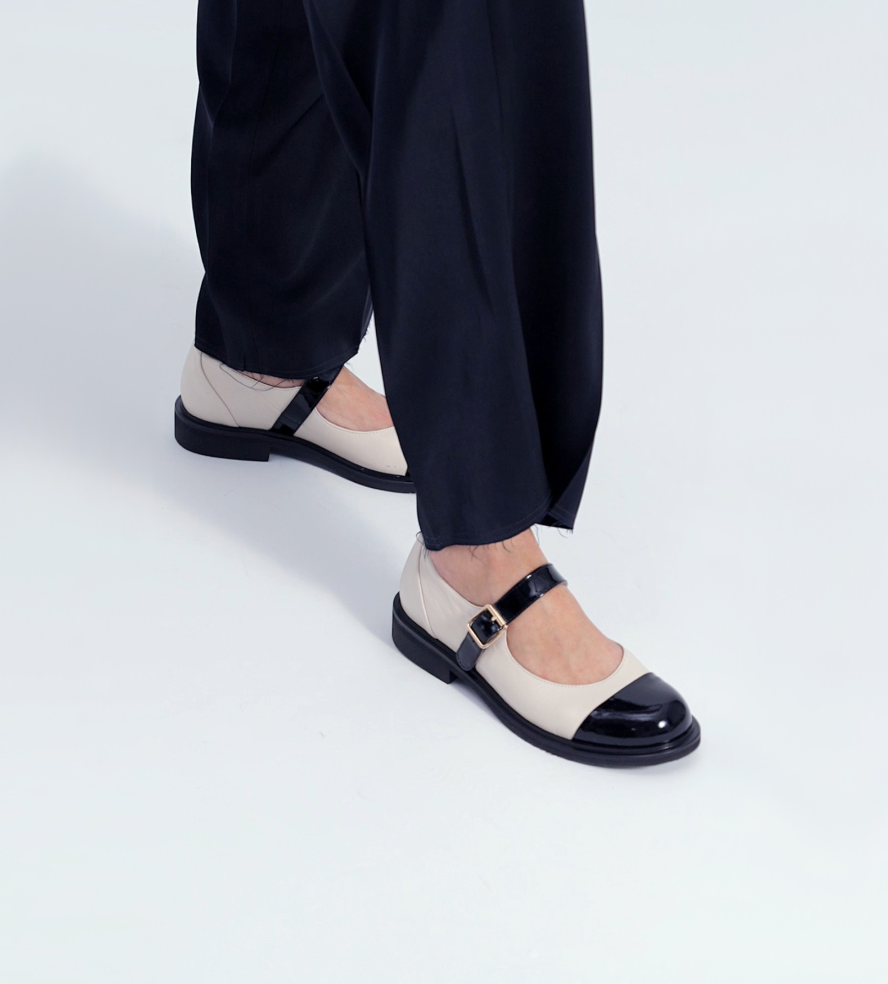 Biało-czarne półbuty damskie to kwintesencja kobiecej elegancji z nutą nostalgii. Wykonane z najwyższej jakości naturalnej skóry, łączą klasyczną biel z kontrastowymi, lakierowanymi detalami w głębokiej czerni, tworząc harmonijną i ponadczasową kompozycję. Inspirowane stylem retro, nawiązują do ponadczasowego szyku lat 50., emanując subtelną, francuską elegancją. Lakierowany nosek oraz pasek z delikatną, złotą klamerką nadają butom wyjątkowego charakteru, podkreślając ich wyrafinowany design. Smukła linia cholewki optycznie wysmukla stopę, a niski, stabilny obcas zapewnia komfort przez cały dzień, czyniąc je idealnym wyborem zarówno na eleganckie spotkania, jak i codzienne wyjścia.