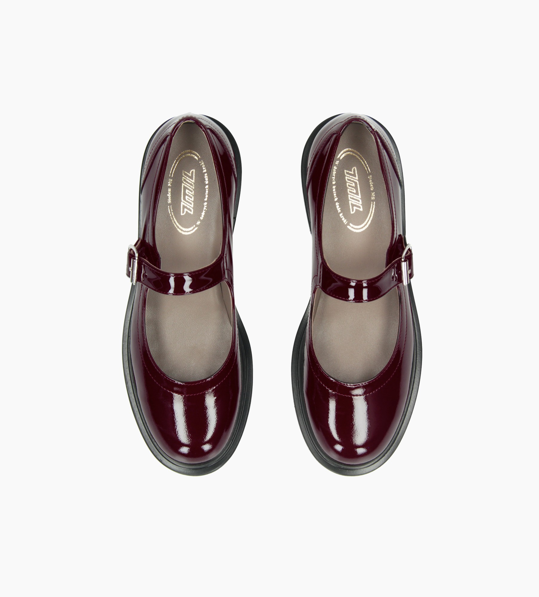 Bordowe półbuty damskie z naturalnej skóry lakierowanej to wyjątkowy wybór, łączący klasykę z odrobiną nowoczesnego stylu. Lakierowana skóra w głębokim odcieniu bordo nadaje butom elegancki, błyszczący wygląd, idealnie sprawdzający się zarówno w codziennych, jak i bardziej formalnych stylizacjach. Wnętrze wyściełane jest delikatną, miękką skórą jagnięcą, co zapewnia wyjątkowy komfort noszenia przez cały dzień. Charakterystyczny pasek z ozdobną srebrną klamrą dodaje butom subtelnego, stylowego akcentu, który przyciąga uwagę, jednocześnie zapewniając doskonałe dopasowanie. Te półbuty to idealne połączenie wygody i klasycznego stylu, doskonałe dla kobiet ceniących elegancję i komfort w jednym.