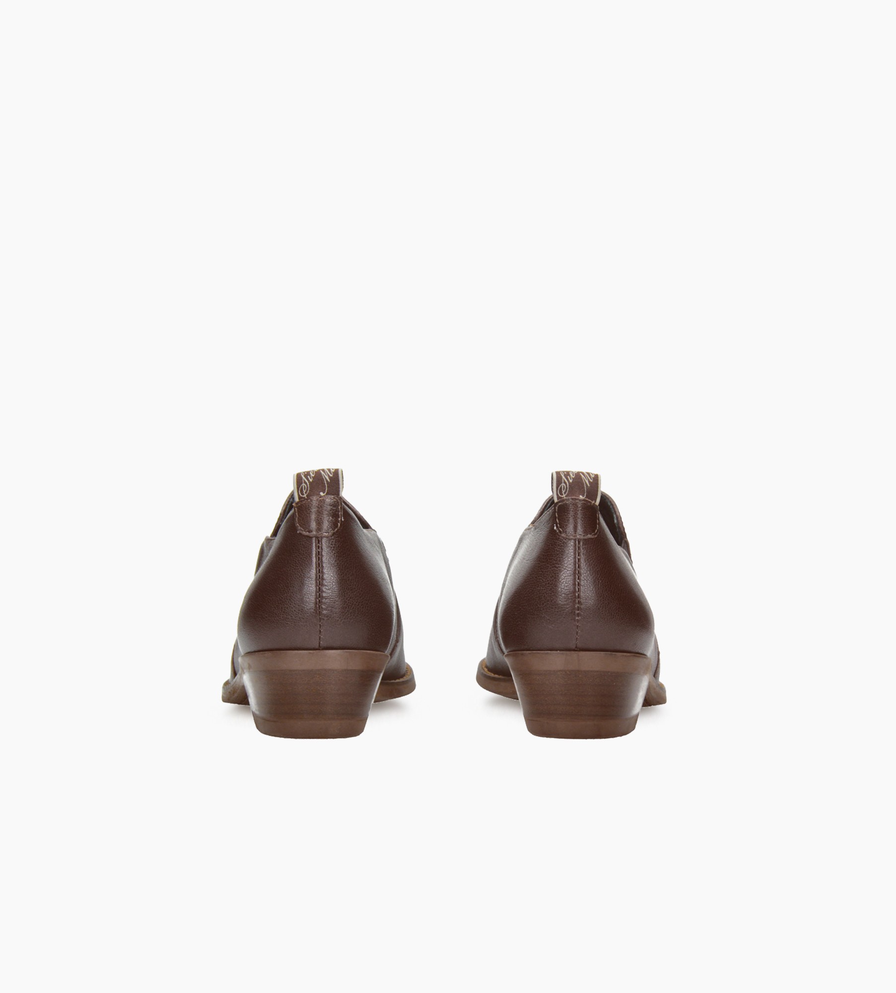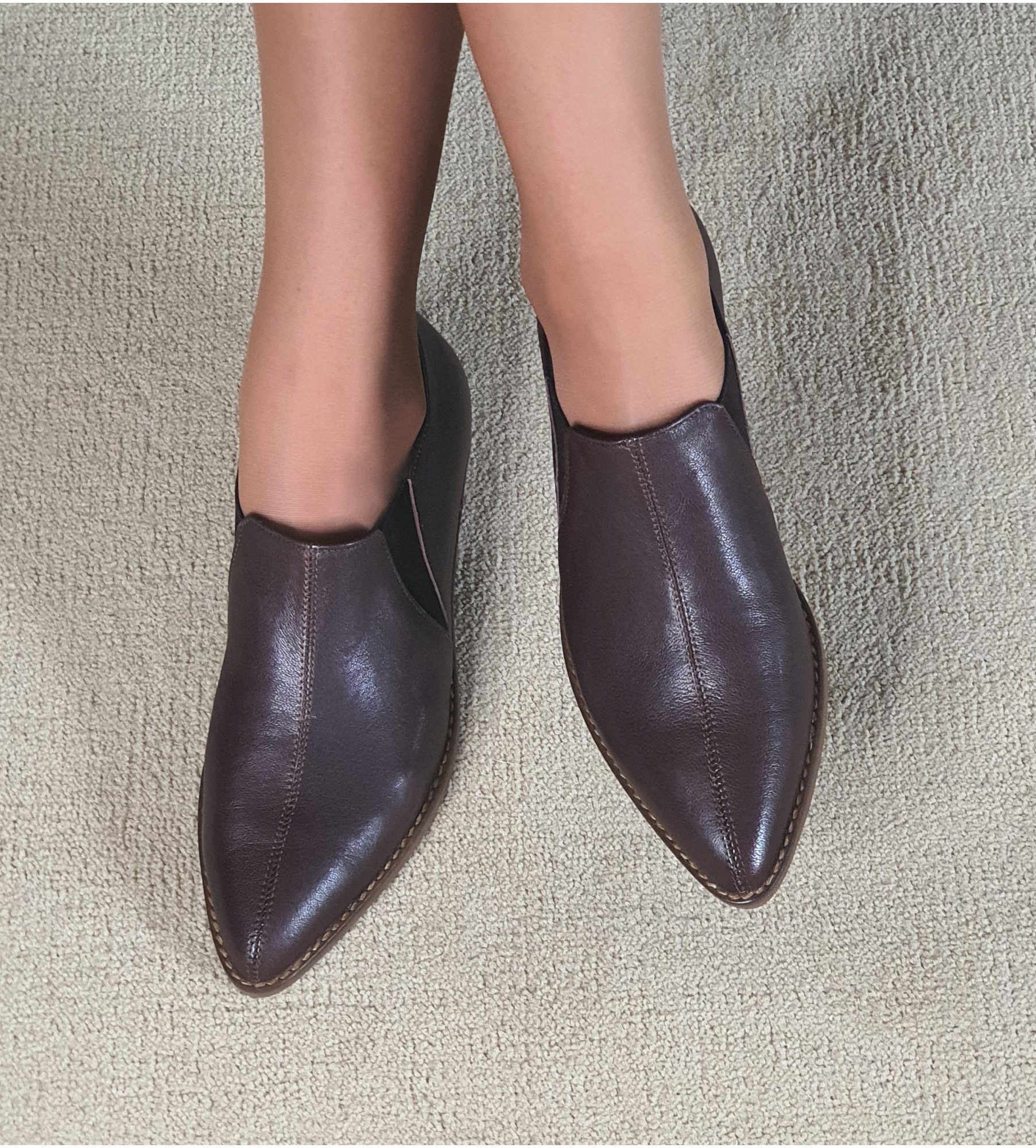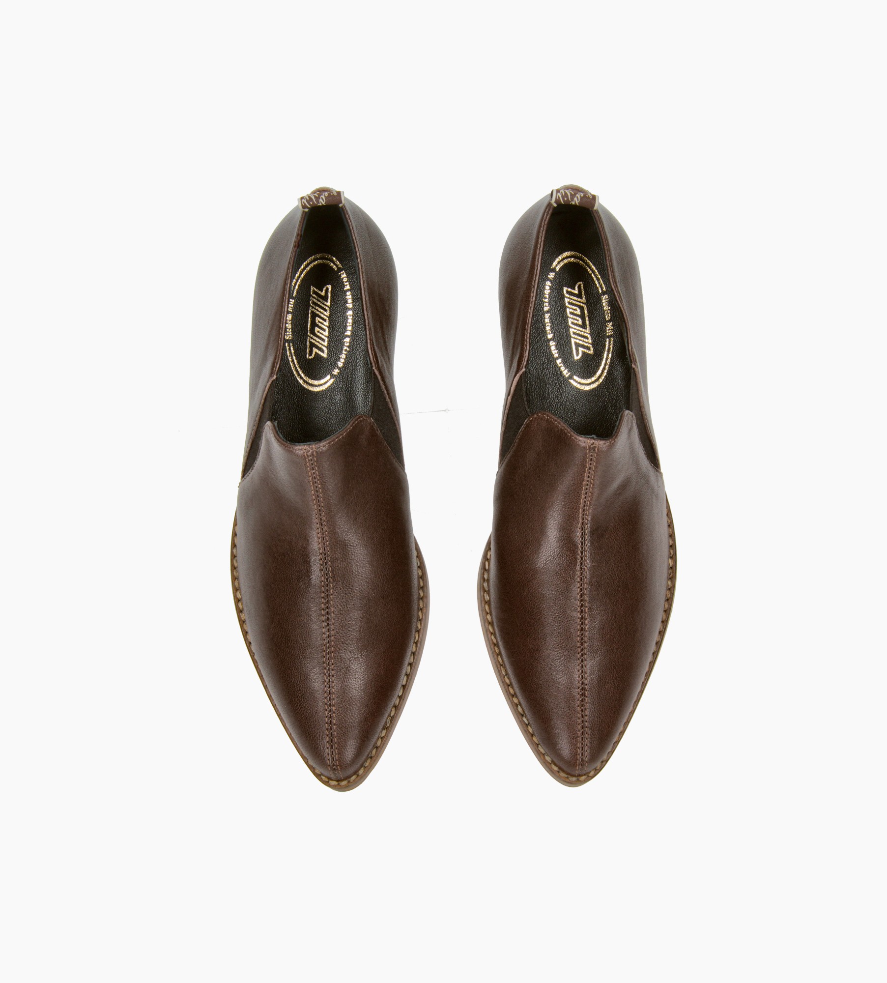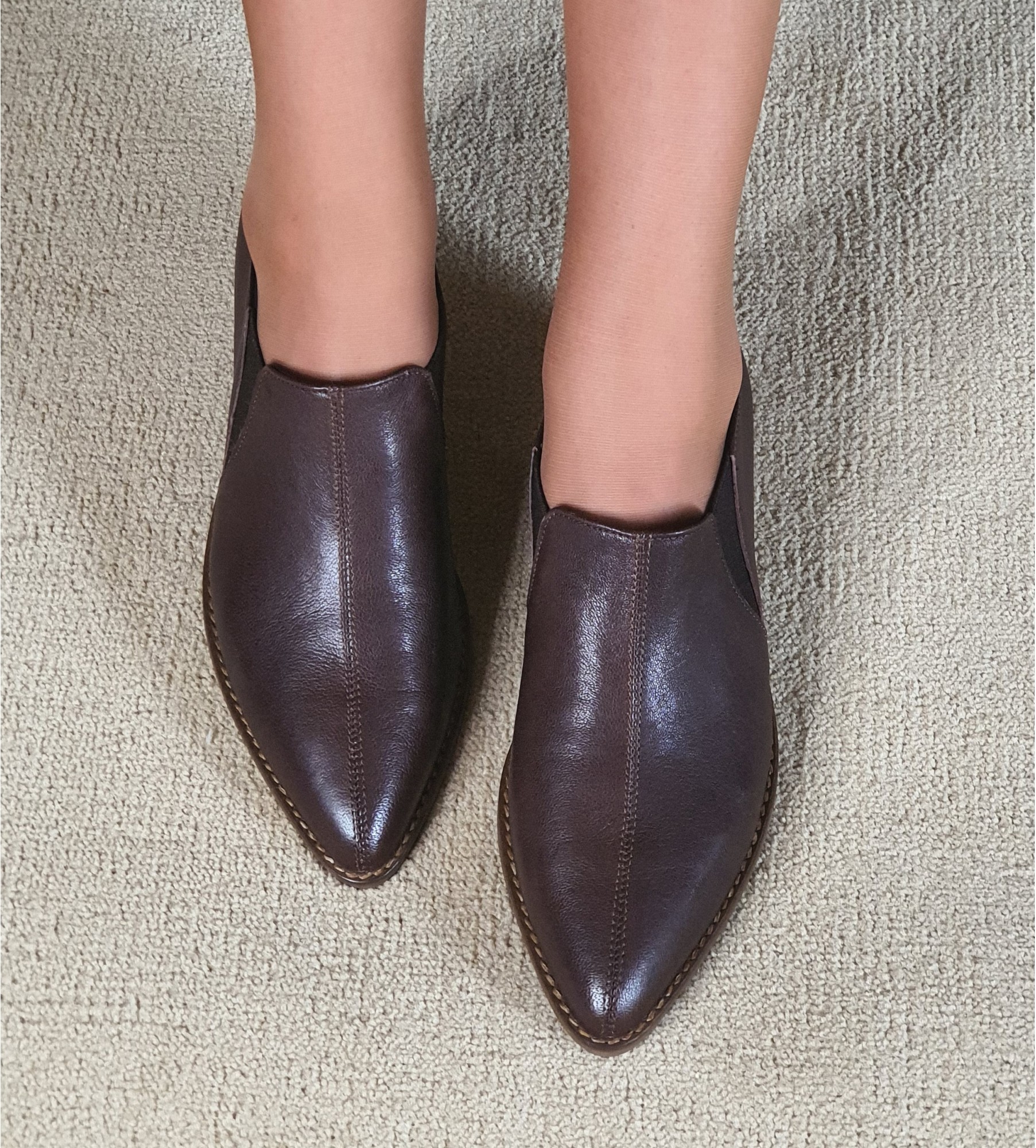 Brązowe półbuty damskie z naturalnej skóry cielęcej to elegancka i wygodna propozycja na co dzień. Wnętrze wyściełane miękką skórą jagnięcą zapewnia komfort, a elastyczne wstawki po bokach ułatwiają zakładanie i dopasowanie do stopy. Smukły nosek w szpic i subtelne przeszycia dodają im szyku, a klasyczny, czekoladowy odcień sprawia, że pasują zarówno do formalnych, jak i casualowych stylizacji.
