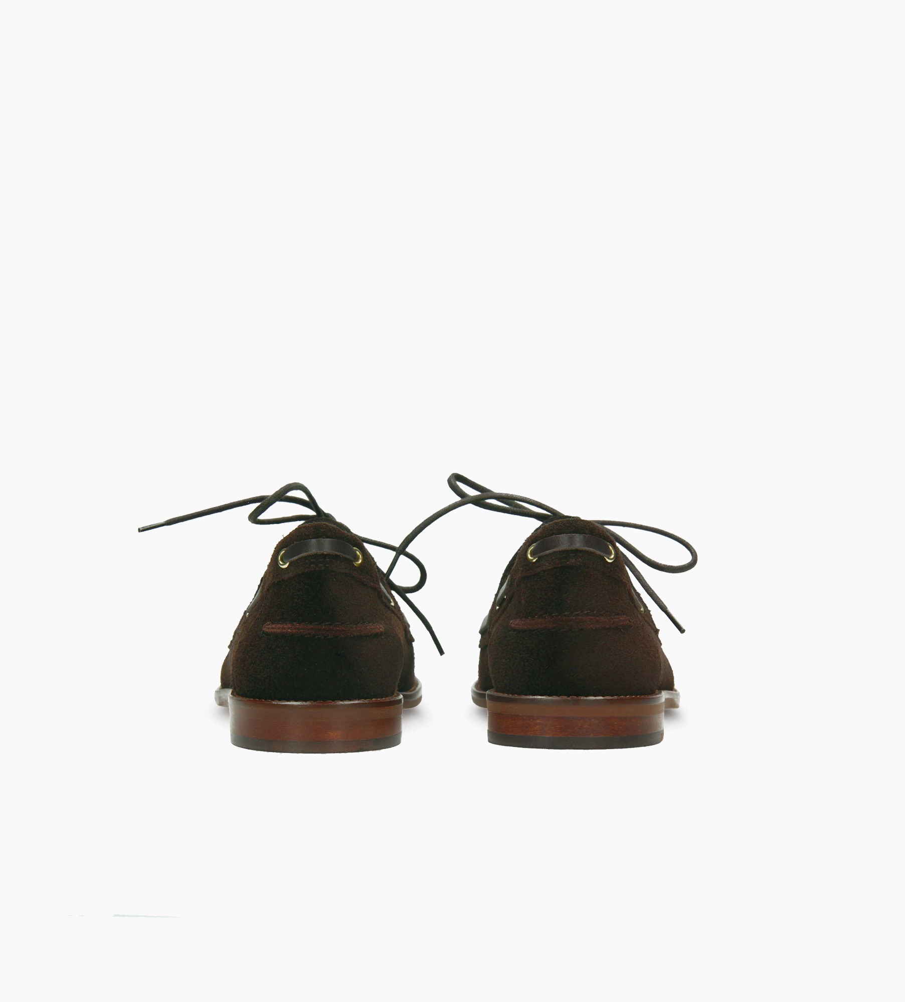 Czekoladowe mokasyny damskie wykonane z miękkiej skóry zamszowej to ukłon w stronę ponadczasowej elegancji w nowoczesnym wydaniu. Ich klasyczny fason, inspirowany stylem żeglarskim, podkreślają szlachetne przeszycia i subtelne detale – złote oczka i delikatne logo marki 7mil w formie monogramu. Środek wyściełany skórą jagnięcą gwarantuje najwyższy komfort noszenia przez cały dzień. Model ten łączy w sobie codzienną wygodę z wyrafinowaną estetyką, dzięki czemu z łatwością dopasuje się do wielu stylizacji – zarówno tych casualowych, jak i bardziej wyrafinowanych. Idealny wybór dla kobiet ceniących jakość, styl i miękkość zamszu w szlachetnym, głębokim odcieniu brązu.