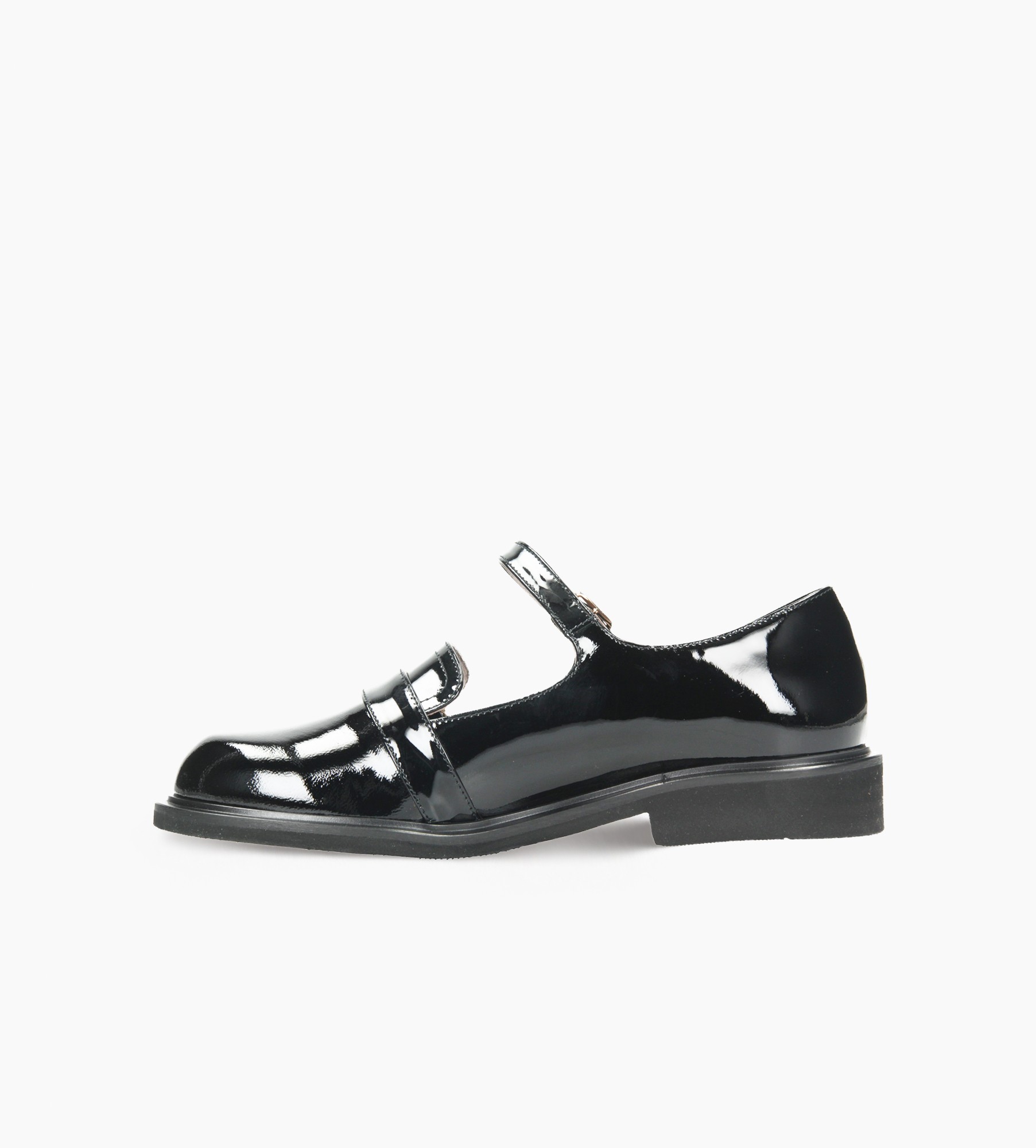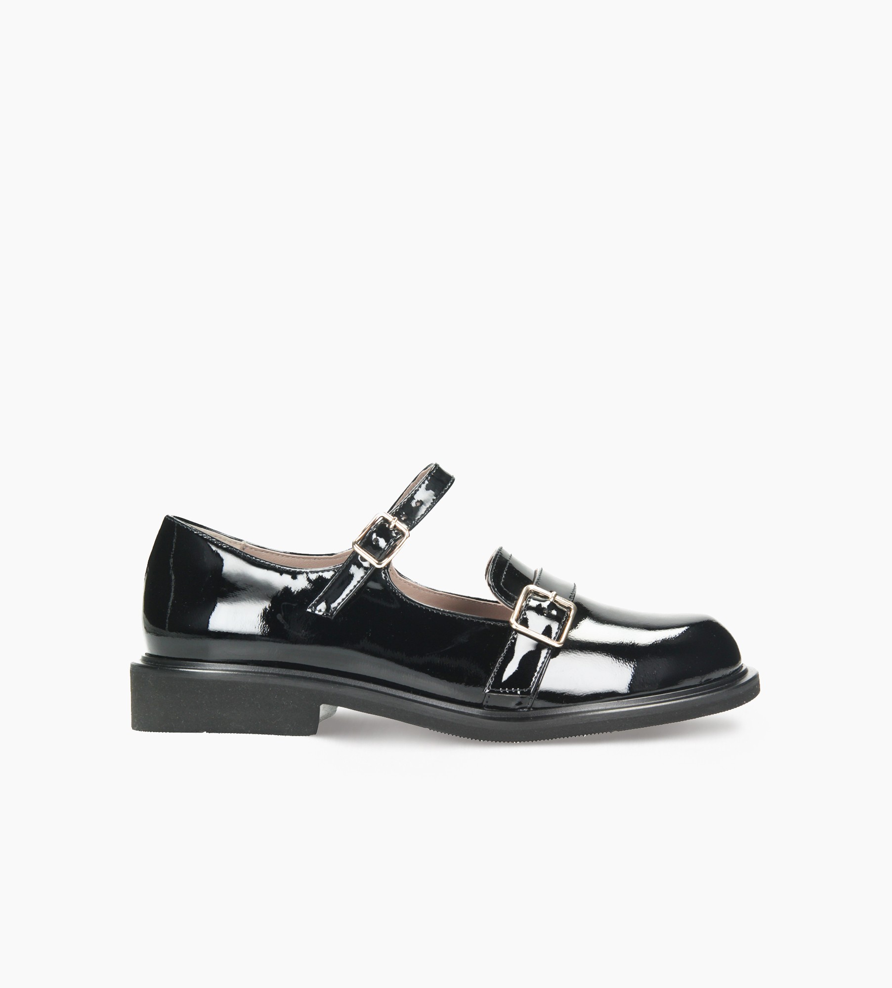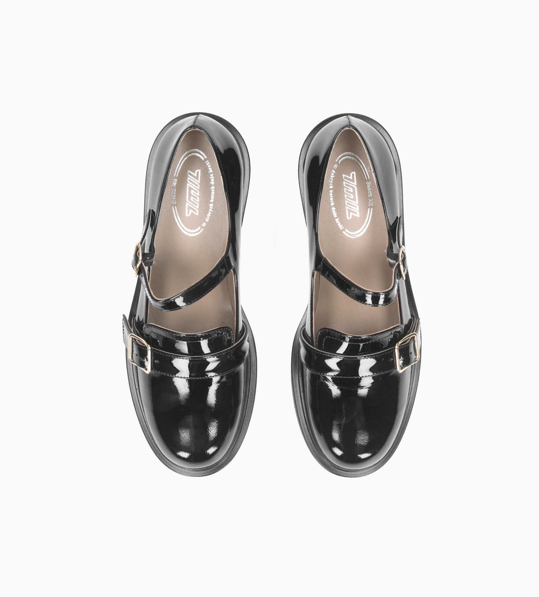 Czarne lakierowane półbuty damskie wykonane z wysokiej jakości skóry zachwycają głębokim połyskiem i ponadczasowym stylem. Ich wnętrze wyściełane jest miękką skórą jagnięcą gwarantuje to wyjątkowy komfort przez cały dzień. Dwa stylowe paski z eleganckimi klamrami – jeden oplatający podbicie, drugi umieszczony bliżej palców – podkreślają ich unikalny charakter i dodają subtelnego akcentu retro. Stabilna podeszwa i klasyczny, zaokrąglony nosek czynią je wszechstronnym wyborem zarówno do formalnych, jak i casualowych stylizacji. Perfekcyjne połączenie klasyki i nowoczesnej elegancji.