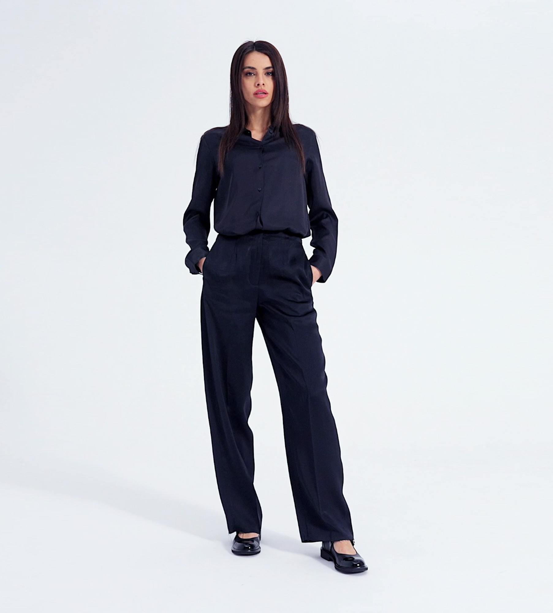 Połącz półbuty z czarnymi, szerokimi spodniami culottes i dopasowanym golfem w kolorze kremowym. Taki zestaw to idealne połączenie elegancji i codziennego komfortu. Na wierzch narzuć lekki trencz w odcieniu piaskowego beżu, który podkreśli stylowy charakter stylizacji. Torebka typu shopper bag i subtelna złota biżuteria świetnie uzupełnią stylizacje.
