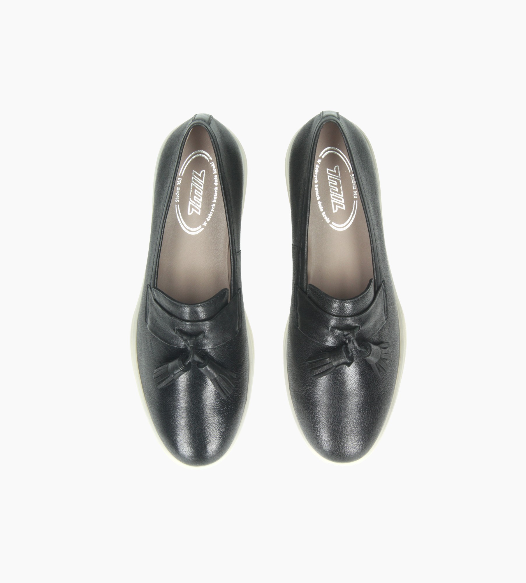 Te stylowe półbuty damskie łączą klasyczną elegancję z nowoczesnym komfortem. Wykonane z najwyższej jakości naturalnej skóry cielęcej, wyróżniają się wyjątkową miękkością i elastycznością, gwarantując doskonałe dopasowanie do stopy. Ich wnętrze zostało wyściełane delikatną skórą jagnięcą, która zapewnia maksymalny komfort i oddychalność przez cały dzień. Nowoczesnego charakteru dodaje im kontrastowa, elastyczna podeszwa w jasnym odcieniu, która nie tylko podkreśla ich modny design, ale również zapewnia lekkość i wygodę podczas codziennego użytkowania. Stylowym akcentem są ozdobne chwosty umieszczone na przodzie cholewki, które dodają butom subtelnego, ponadczasowego szyku.
