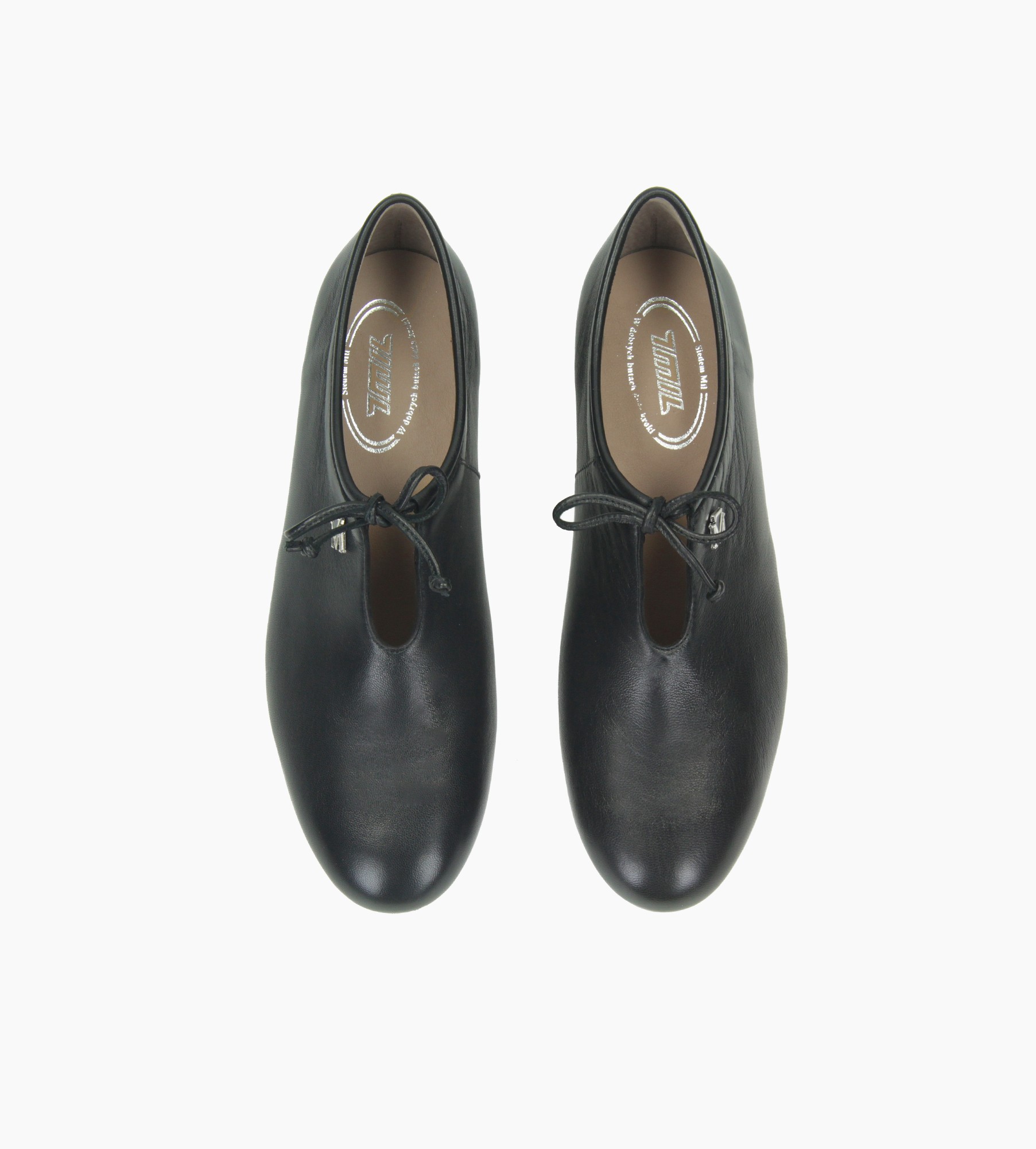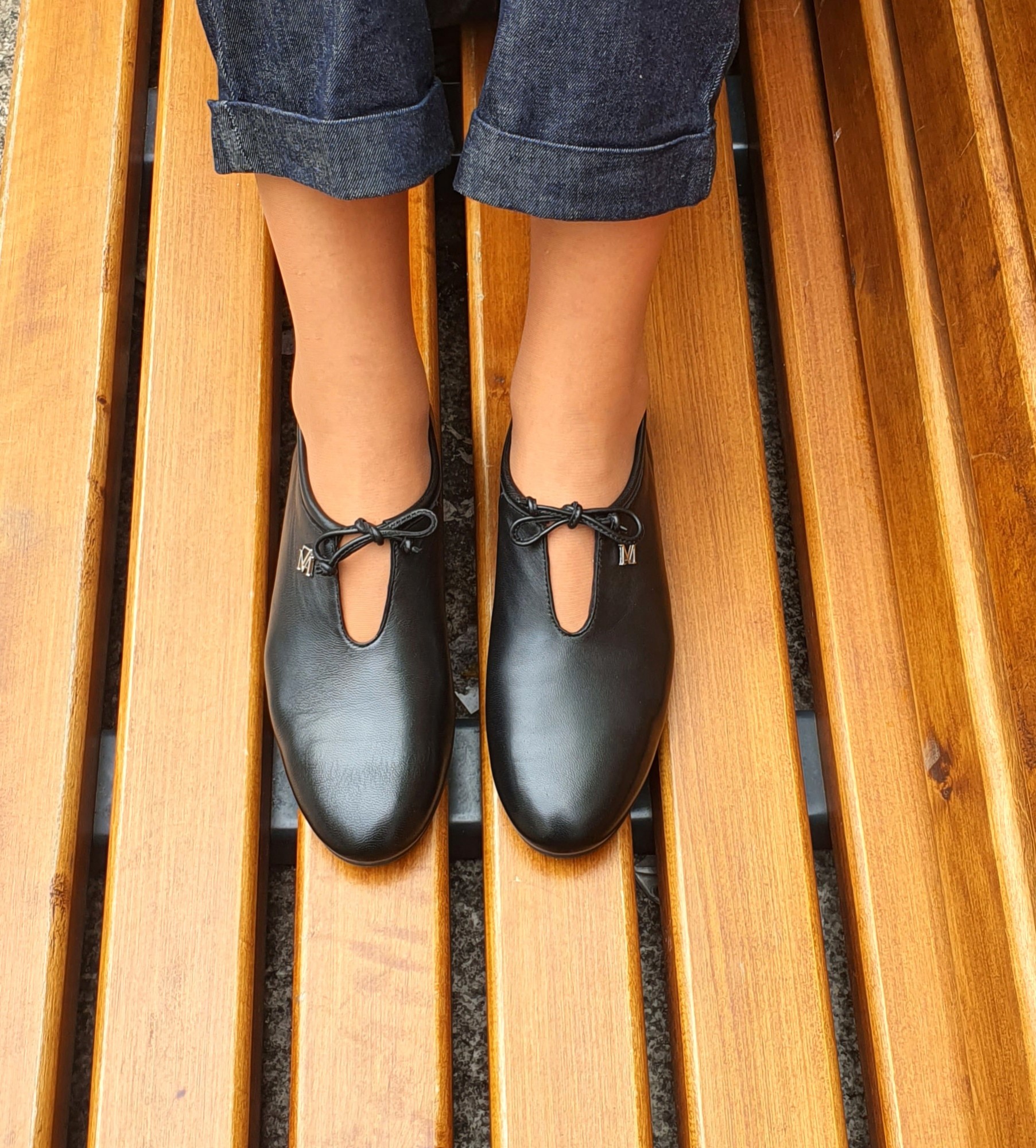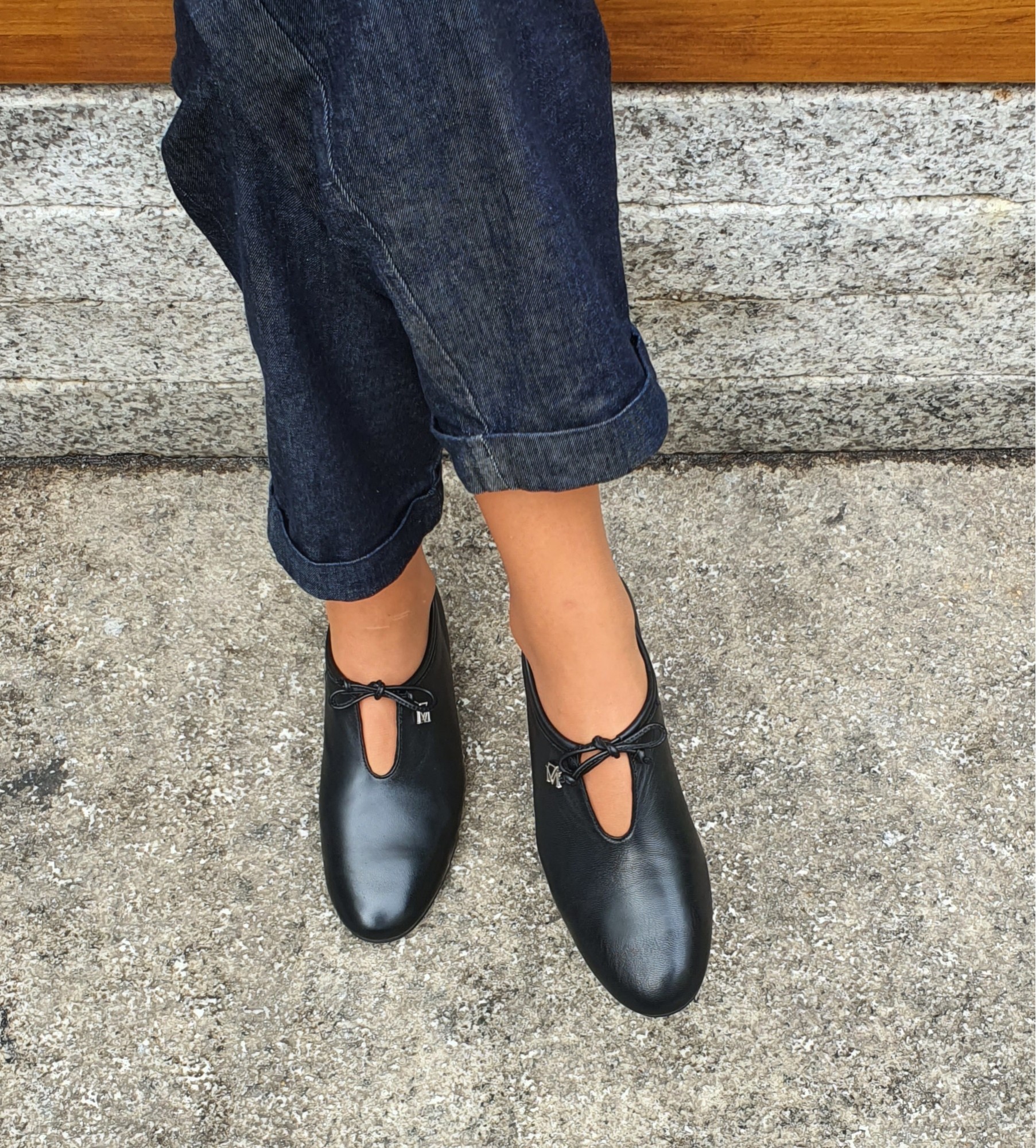 Eleganckie, czarne półbuty damskie marki 7mil, wykonane z najwyższej jakości naturalnej skóry licowej, to kwintesencja klasy i ponadczasowego stylu. Miękkie wnętrze ze skóry jagnięcej gwarantuje wyjątkowy komfort użytkowania przez cały dzień. Charakterystycznym detalem jest wiązanie na podbiciu, które nadaje modelowi subtelny retro akcent, a jednocześnie pozwala idealnie dopasować obuwie do stopy. Drobne logo marki umieszczone dyskretnie z boku dodaje butom ekskluzywnego charakteru. Idealne zarówno do pracy, jak i na eleganckie wyjścia.