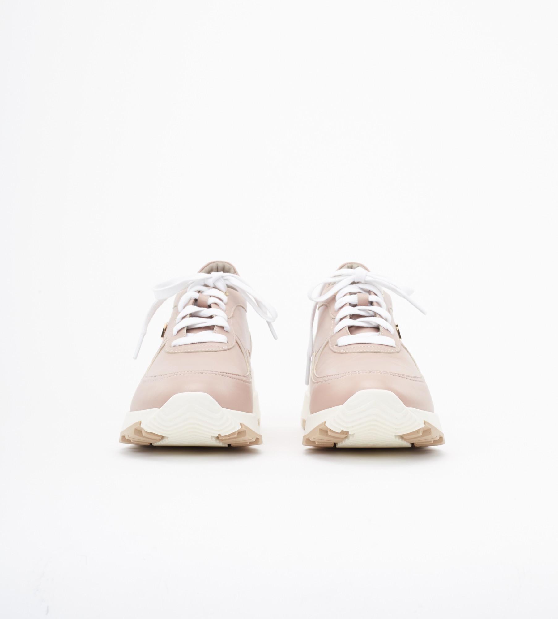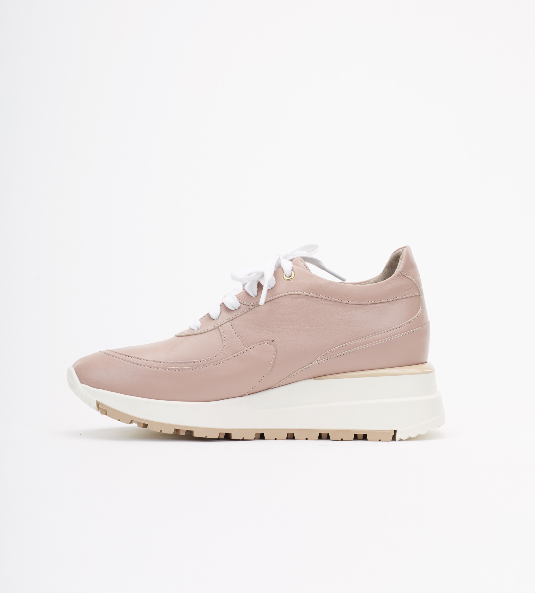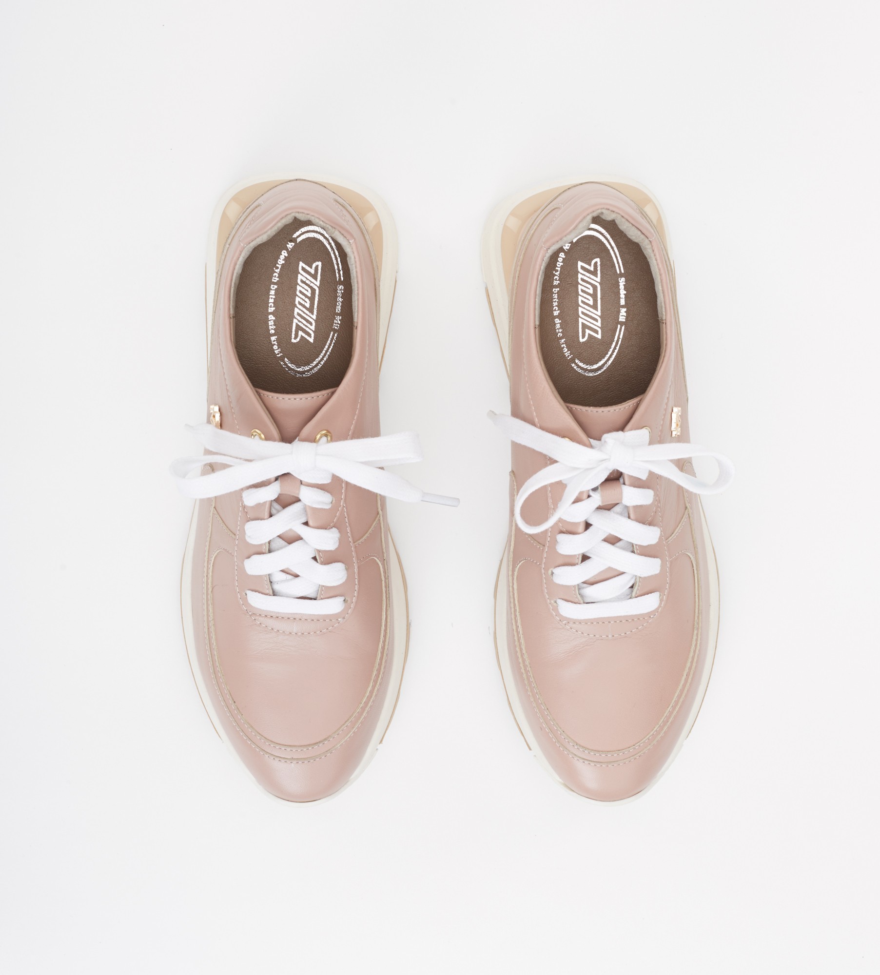 Różowe sneakersy damskie marki to kwintesencja elegancji i wygody. Wykonane z najwyższej jakości naturalnej skóry licowej, zdobione subtelnym złotym nitem, idealnie łączą styl z funkcjonalnością. Miękka skóra jagnięca wyściela wnętrze buta, zapewniając komfort noszenia, podczas gdy higroskopijna wkładka skórzana dba o odpowiednią wentylację stopy. Buty posiadają 4 cm obcas, dodający sylwetce lekkości. Kolor brudnego różu dodaje im wyjątkowego uroku, a całość dopełnia precyzyjne wykonanie, charakterystyczne dla marki 7mil.