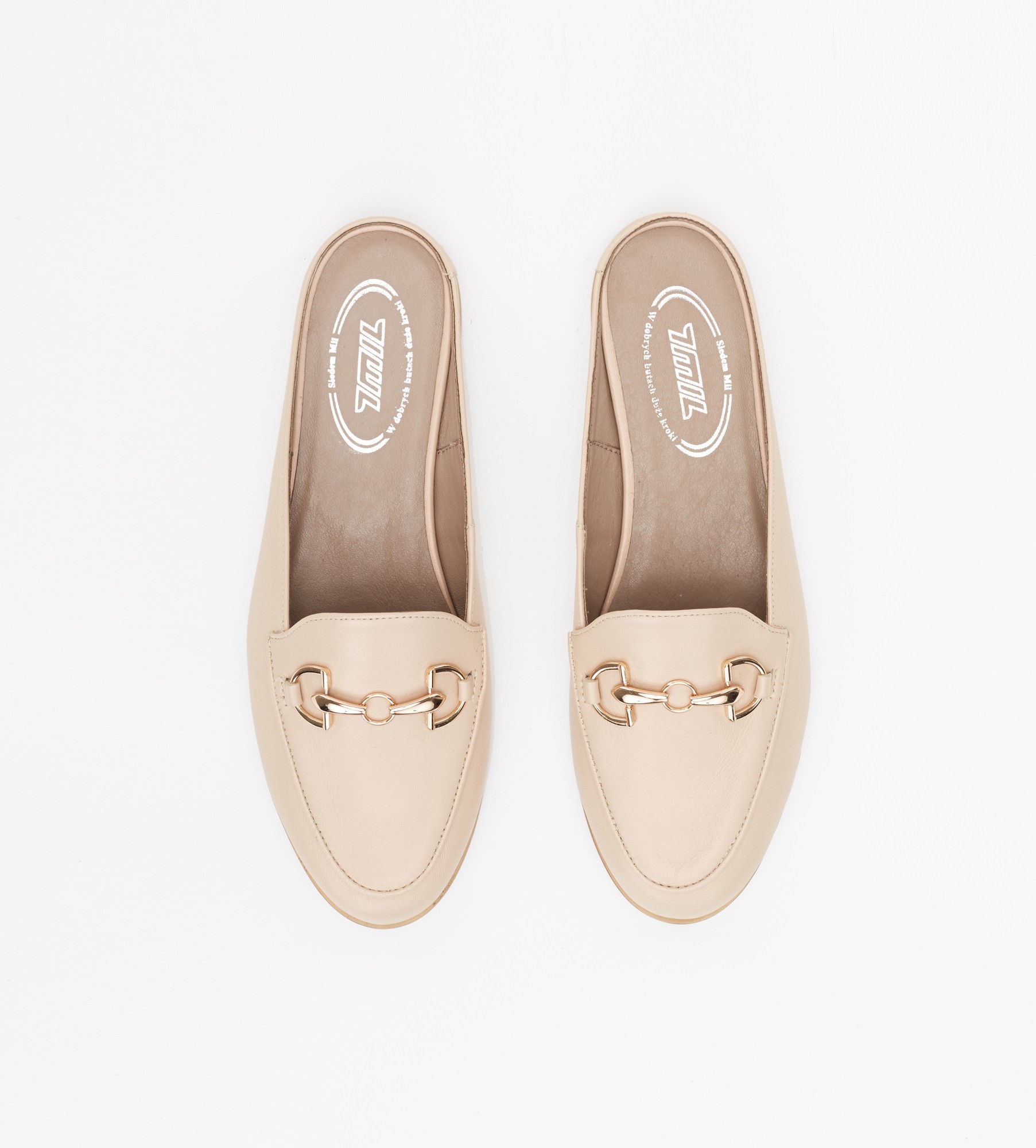 Zabudowane kobiece beżowe klapki damskie to idealne połączenie komfortu i elegancji. Wykonane z najwyższej jakości naturalnej skóry licowej, oferują luksusowy wygląd i wyjątkową trwałość. Miękka skórzana wyściółka z jagnięcej skóry zapewnia komfort noszenia przez cały dzień. Klapki zdobi subtelna złota klamerka na przodzie, dodająca im wyrafinowanego charakteru. Niski obcas o wysokości 2 cm sprawia, że są wygodne i stylowe, idealne na letnie dni.