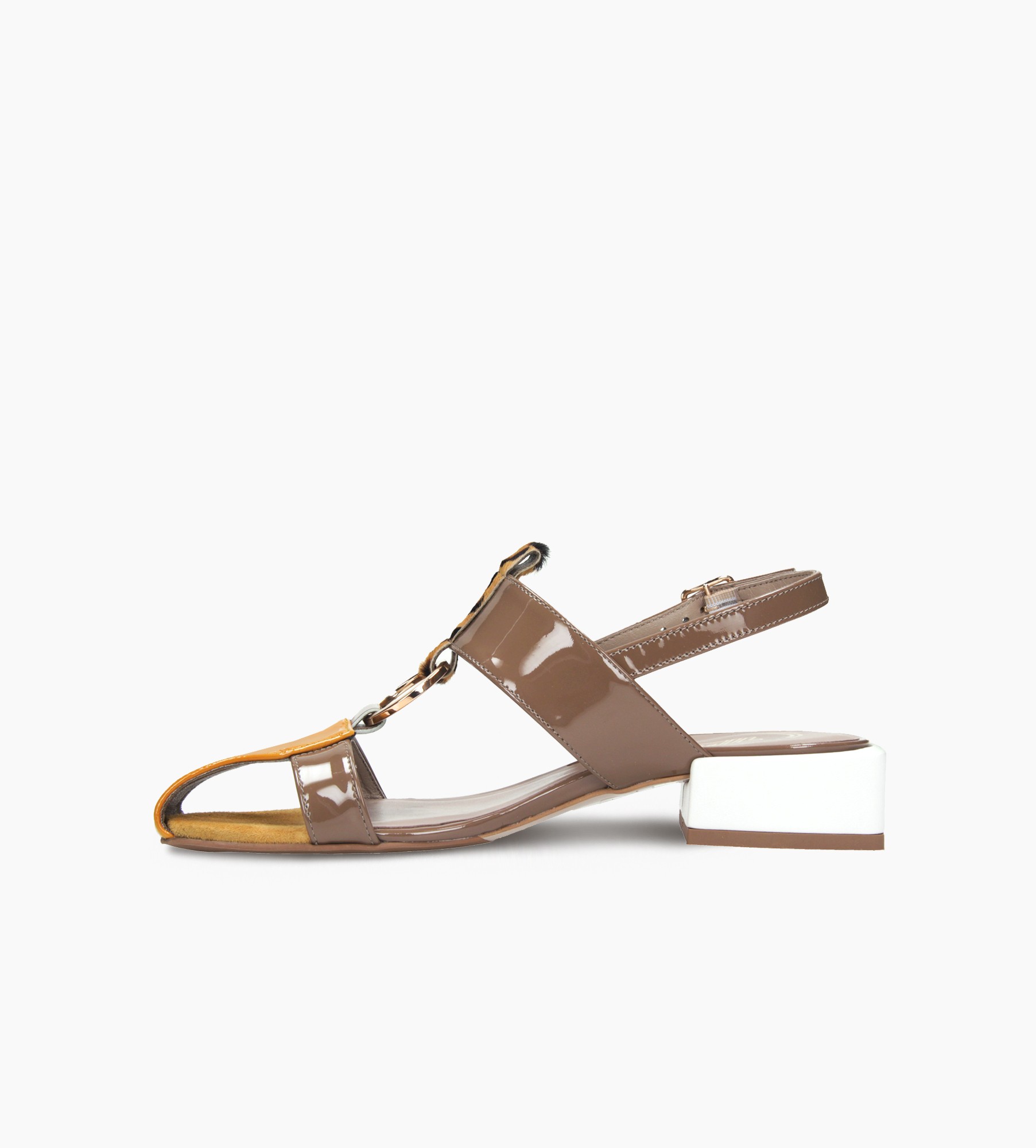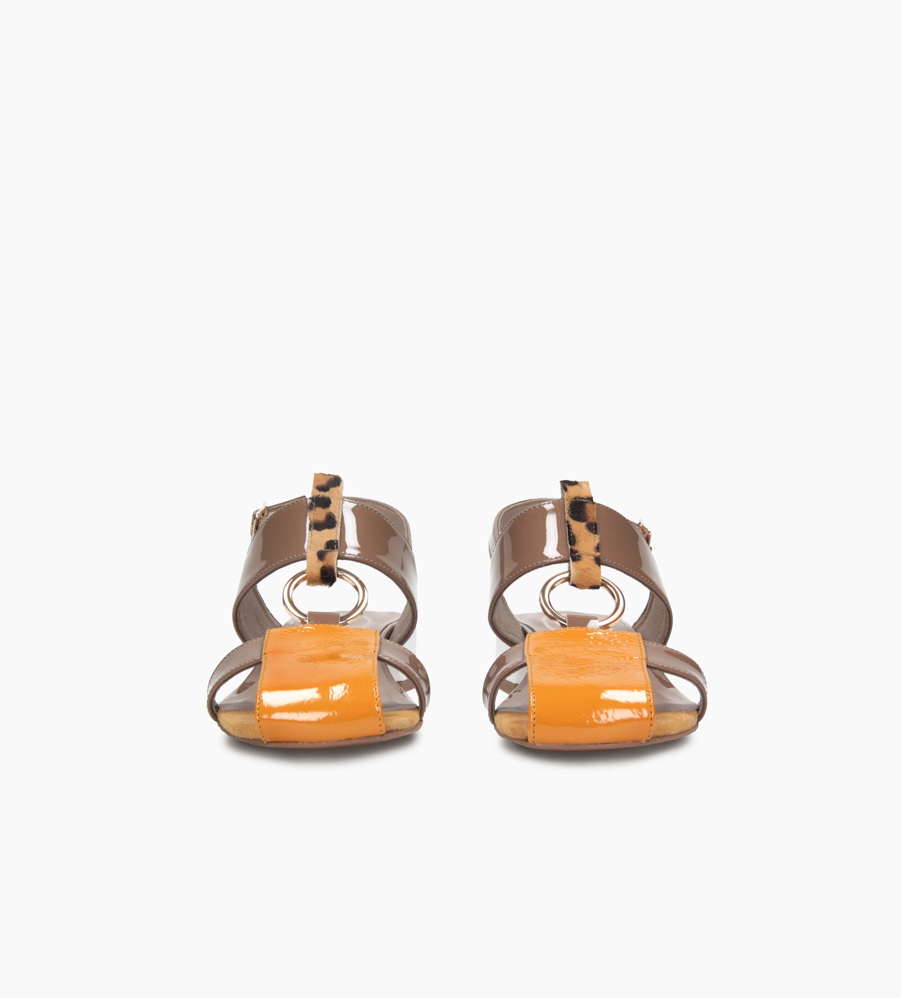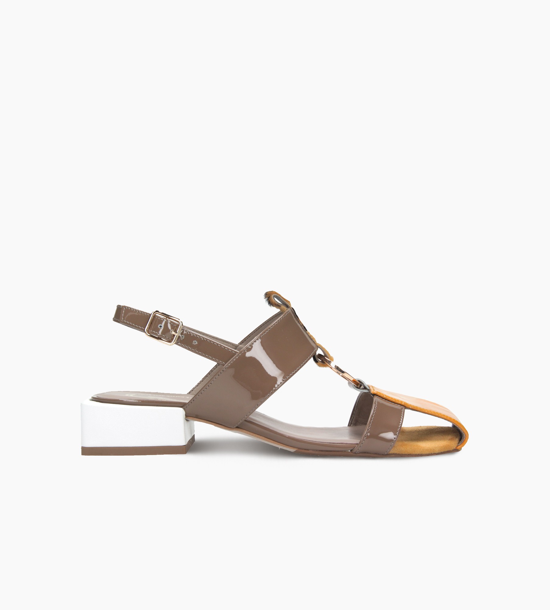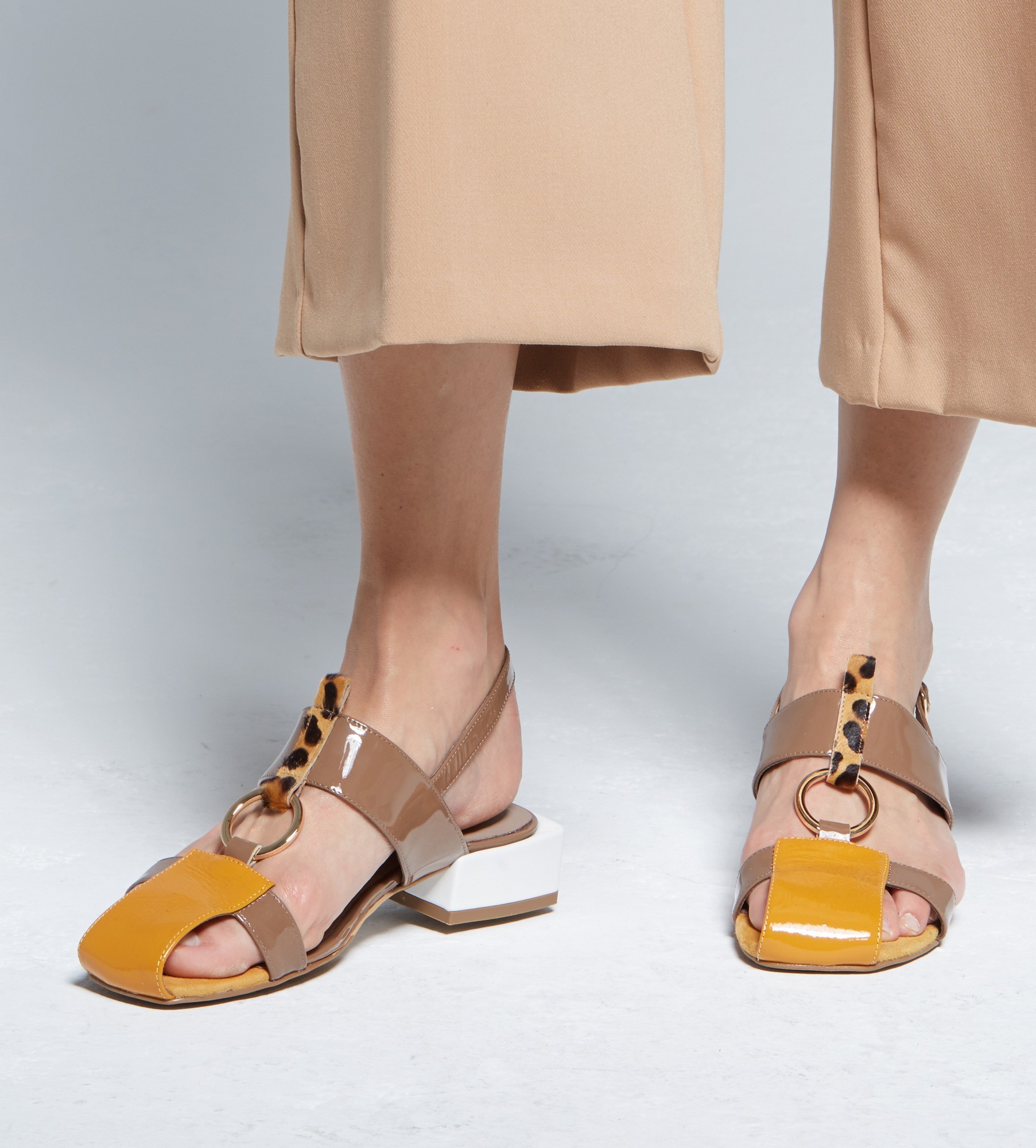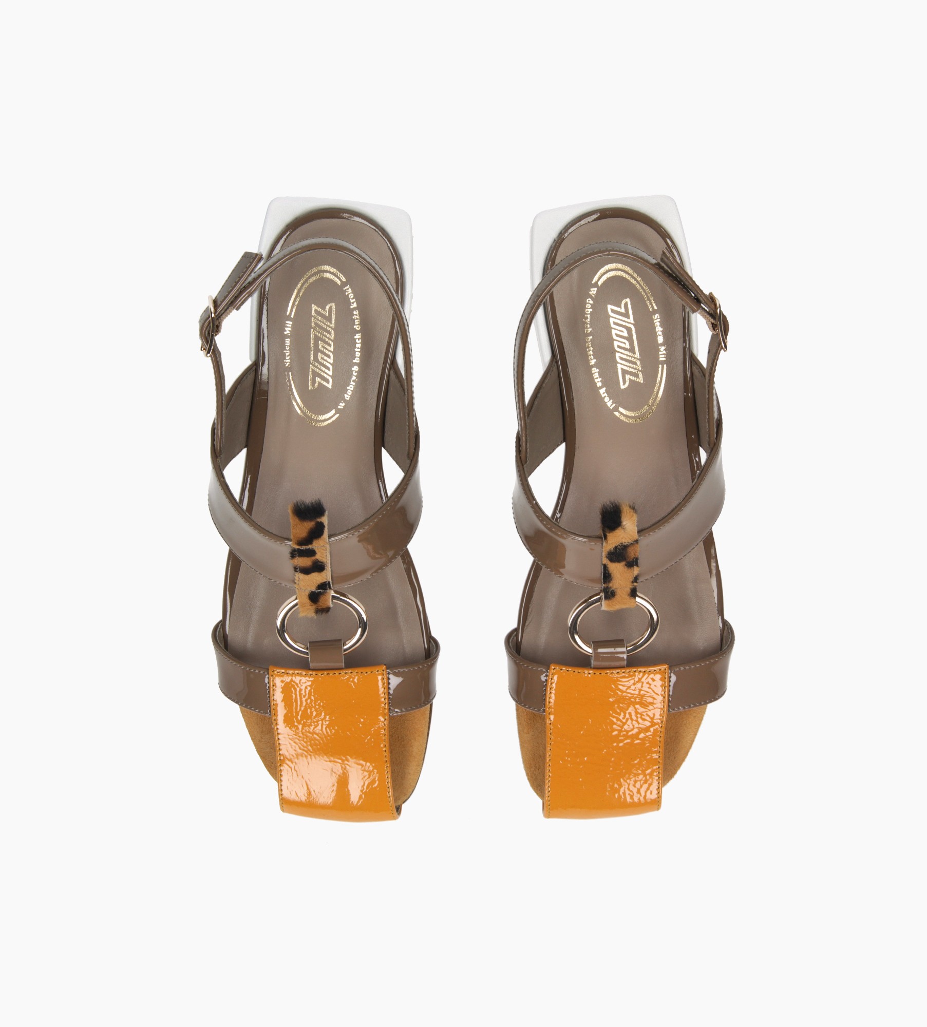 Prezentujemy beżowe sandały, które stanowią esencję współczesnego designu i komfortu. Wykonane z najwyższej jakości naturalnej skóry lakierowanej w zaskakującym połączeniu ozdób koła i ozdobnego paska ze skóry z motywem zwierzęcym. Atrakcyjny design charakteryzuje się szerokimi paskami, które otulają stopę, zapewniając doskonałe wsparcie i komfort użytkowania. Zapięcie umieszczone przy kostce nie tylko umożliwia idealne dopasowanie sandałów.
