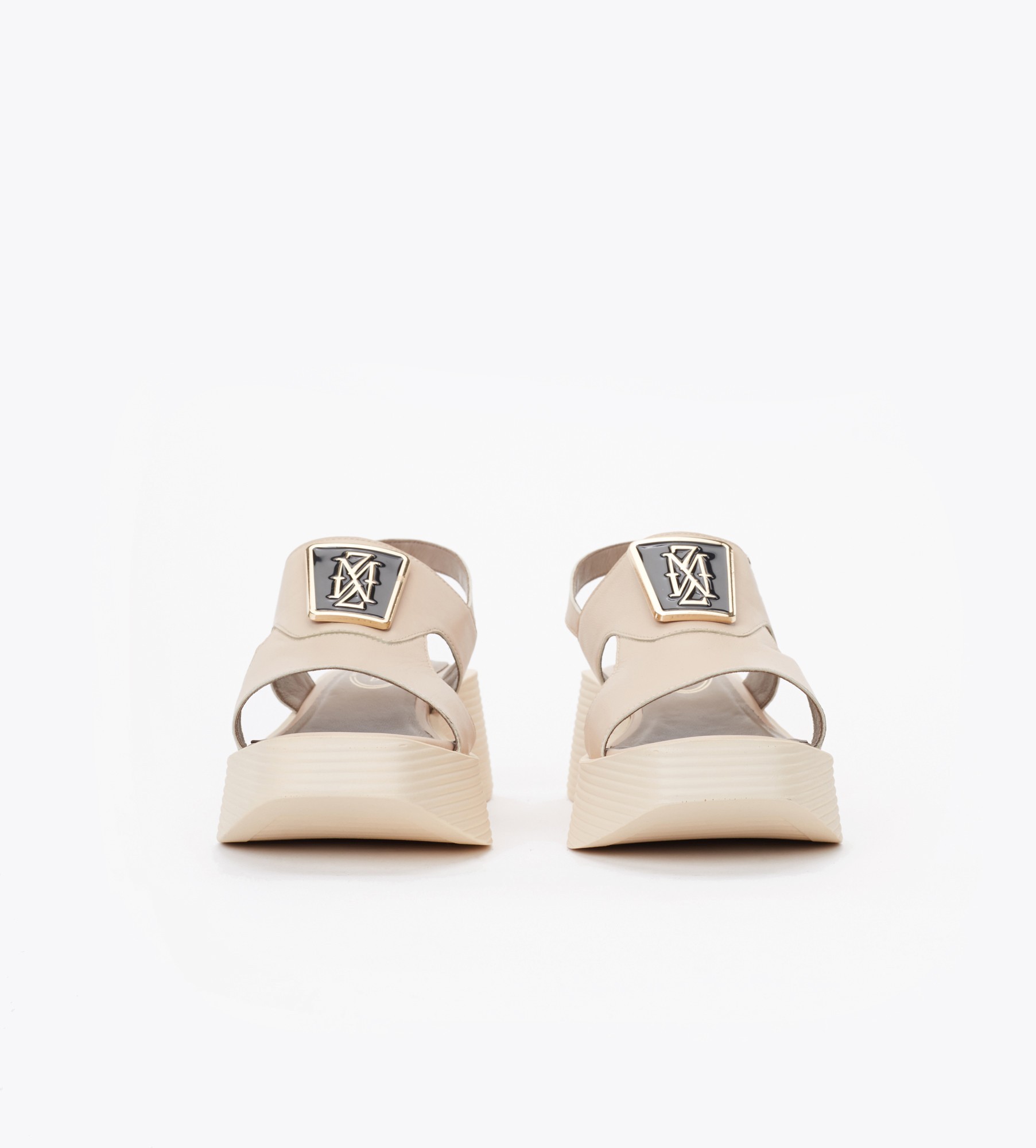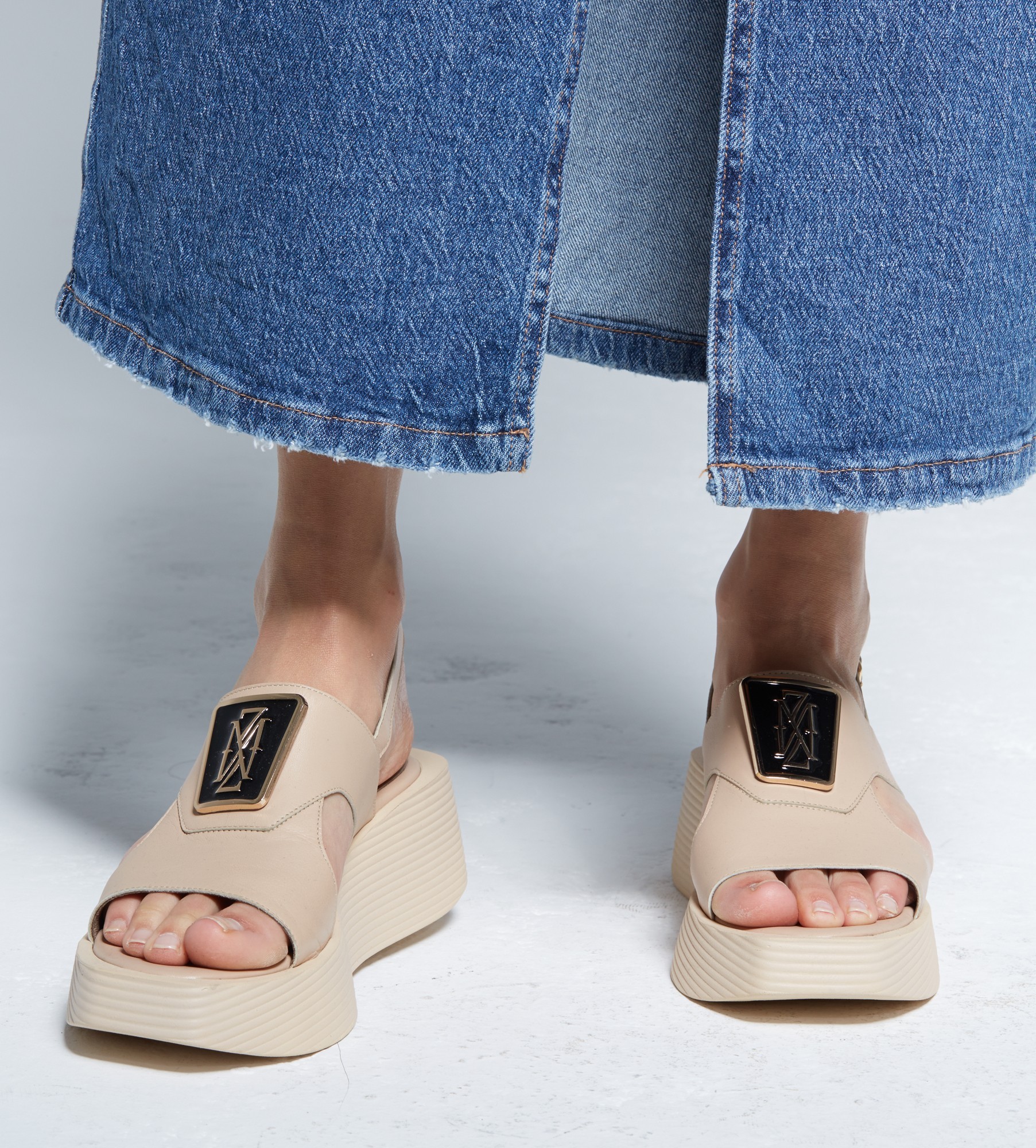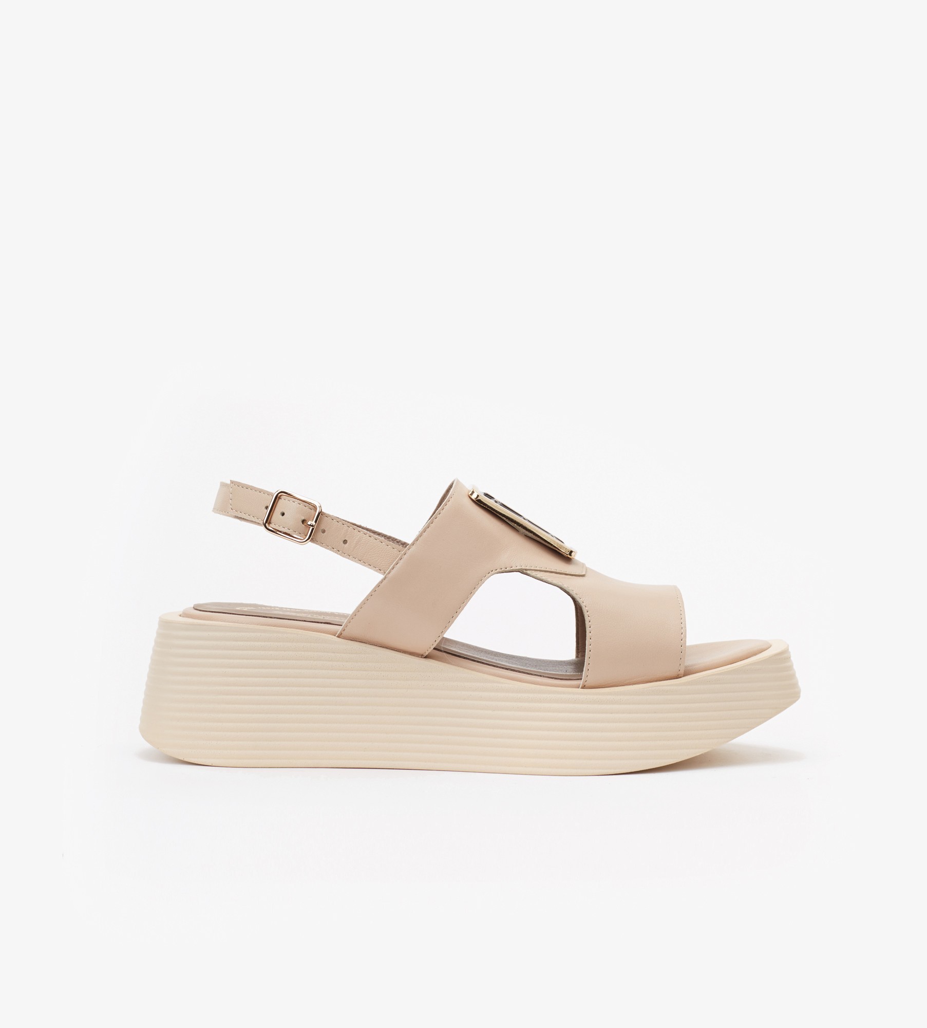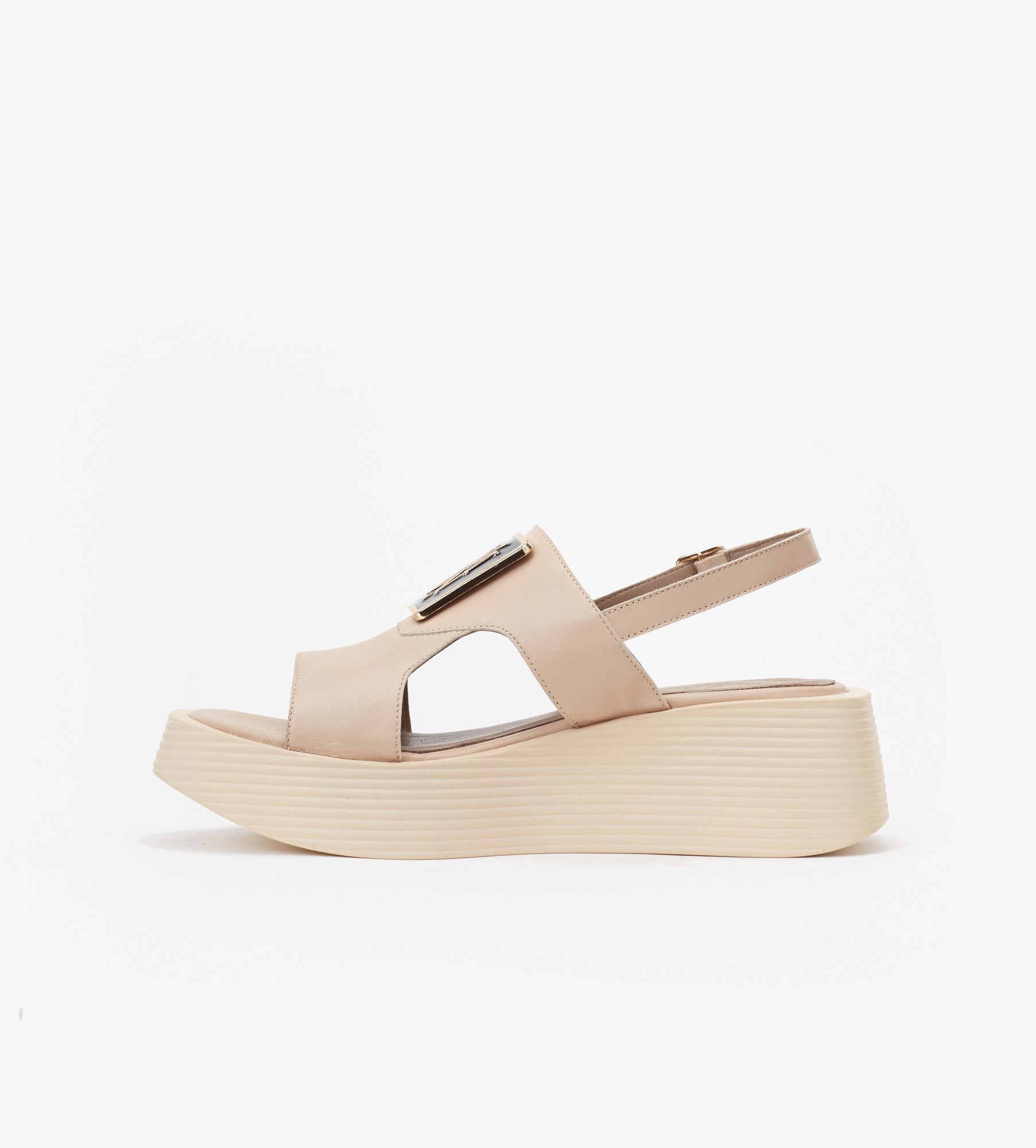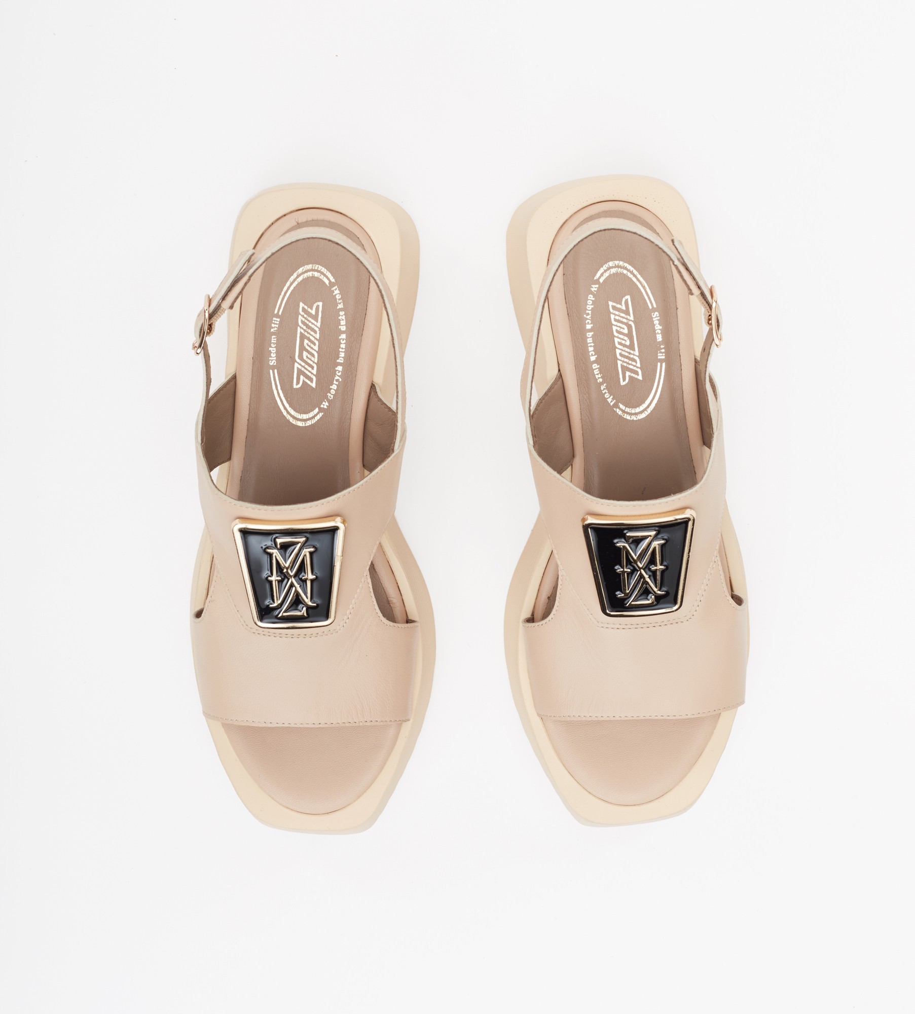 Beżowe sandały damskie są wykonane z naturalnej skóry licowej, co zapewnia im ponadczasowy wygląd i trwałość. Wnętrze buta wyściełane jest miękką skórą jagnięcą, gwarantując komfort przez cały dzień. Sandały posiadają subtelną złoto-czarną ozdobę na przodzie, dodającą im wyrafinowanego charakteru. Wyposażone są w platformę o wysokości 5,5 cm, co dodaje subtelnej elegancji i stylu każdej letniej stylizacji. Idealne na co dzień oraz na specjalne okazje.