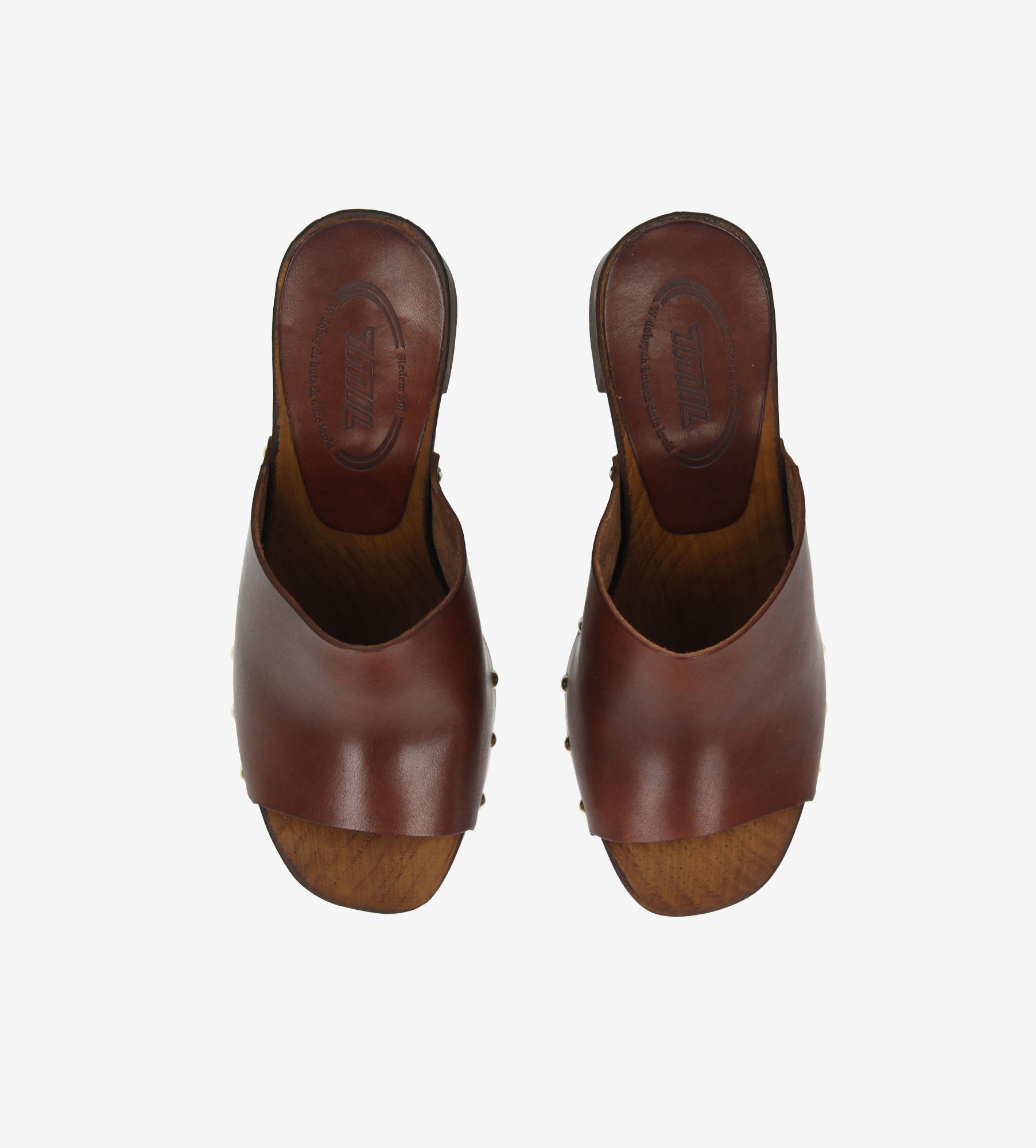 Ciemno brązowe klapki to eleganckie i stylowe obuwie wykonane z wysokiej jakości naturalnej skóry licowej. Zdobione subtelnymi, złotymi nitami, które dodają im wyrazistego wyglądu. Wnętrze butów wyścielone jest miękką skórą jagnięcą, zapewniającą komfort noszenia przez cały dzień. Skórzana wkładka oraz stabilna lekka podeszwa gwarantują wygodę i trwałość. Charakterystyczne dla tego typu obuwia są grube podeszwy oraz szerokie paski, które stabilnie trzymają stopę. Klapki i są idealne zarówno na codzienne wyjścia, jak i na bardziej formalne okazje, dodając każdej stylizacji elegancji i szyku.