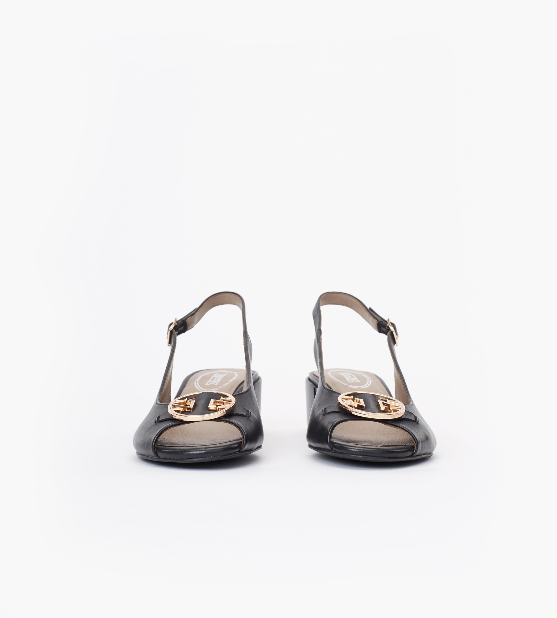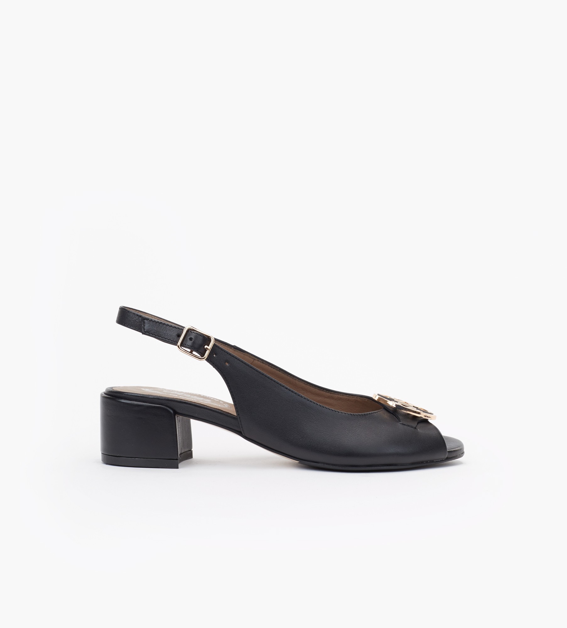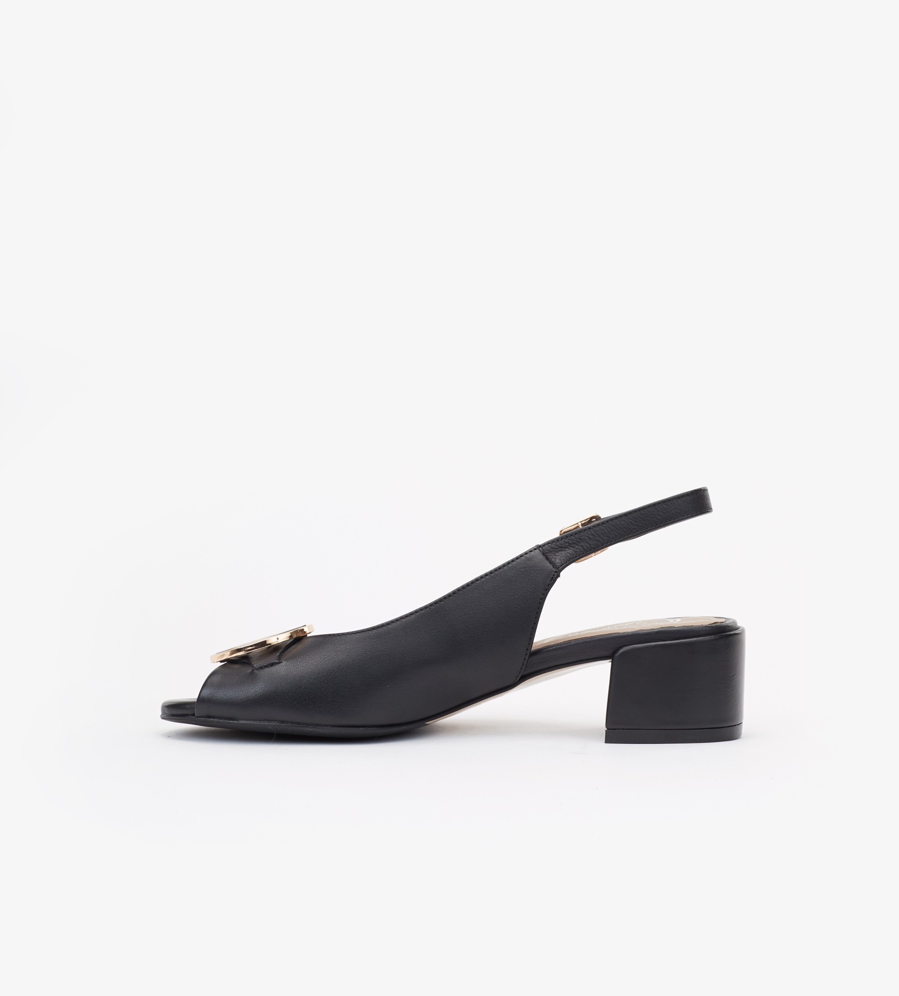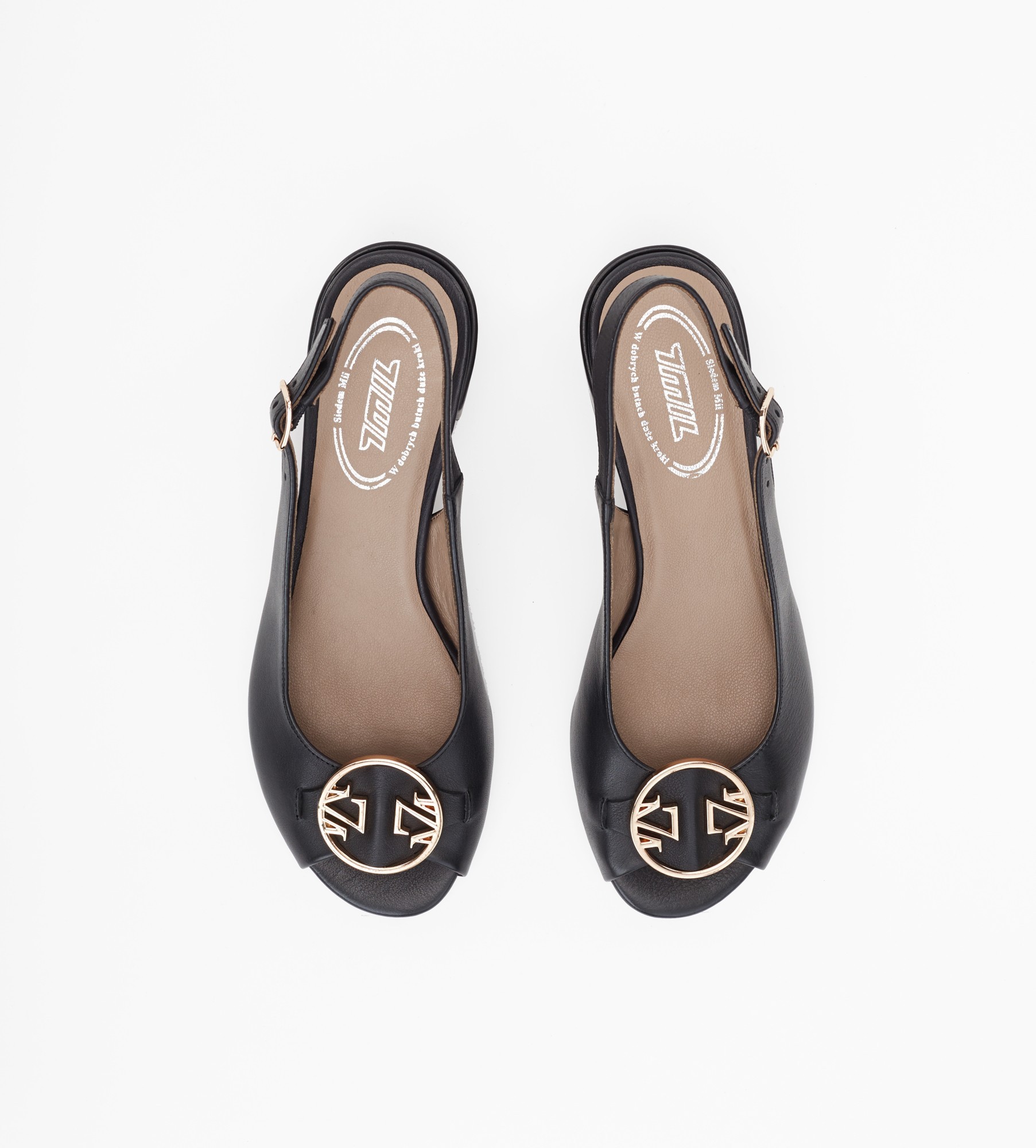 Klasyczne czarne sandałki damskie wykonane są z wysokiej jakości naturalnej skóry licowej, co zapewnia trwałość i ponadczasowy wygląd. Wnętrze buta wyściełane jest miękką skórą jagnięcą, gwarantując komfort noszenia przez cały dzień. Sandały posiadają złotą ozdobę, dodającą im wyrafinowanego charakteru. Niski obcas o wysokości 5 cm zapewnia wygodę, czyniąc te sandały idealnym wyborem zarówno na codzienne, jak i bardziej formalne okazje.