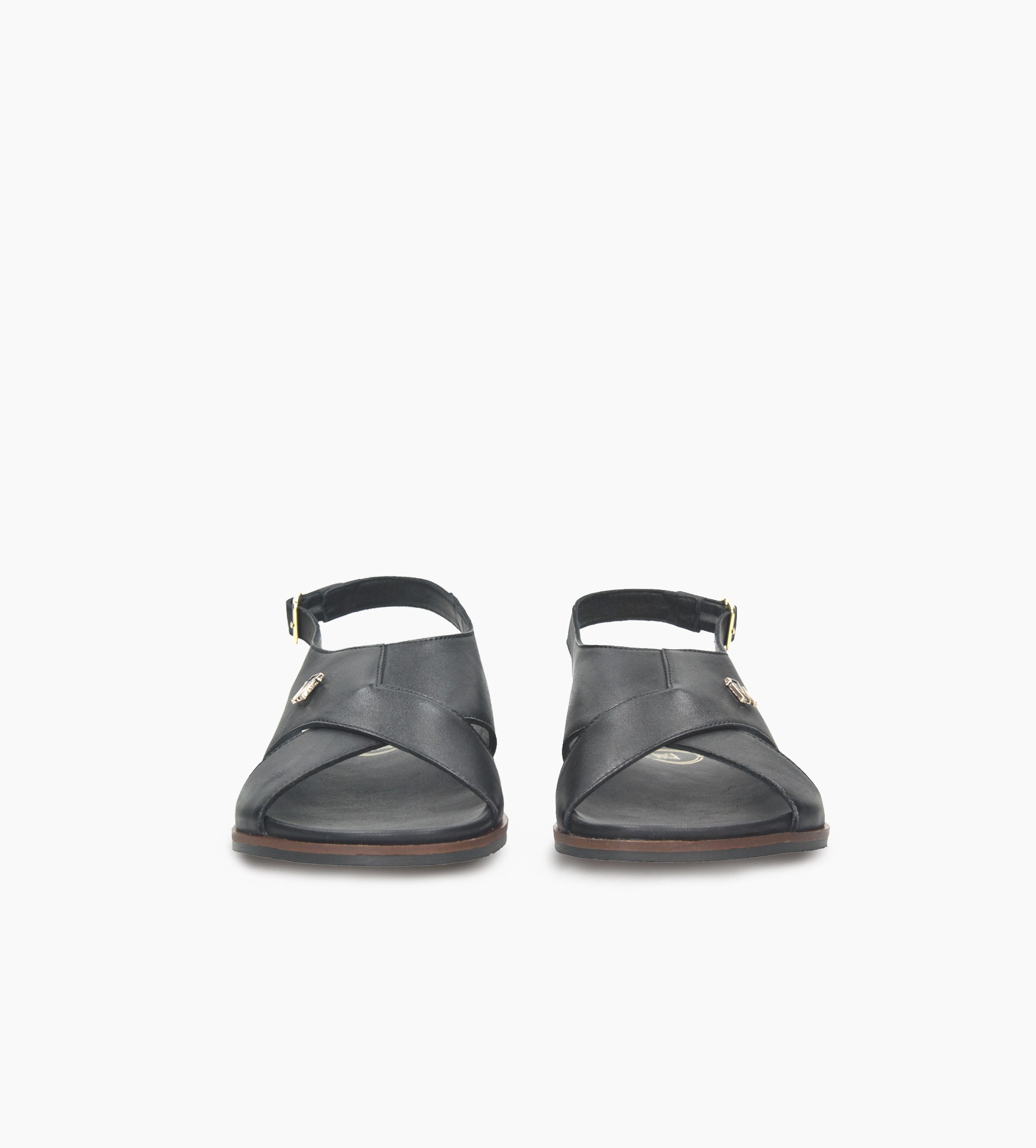 Czarne sandałki to synonim delikatności i wygody, wykonane z najwyższej jakości naturalnej skóry cielęcej. Wnętrze i wkładka z luksusowej skóry jagnięcej zapewniają niezrównany komfort. Delikatna złota ozdoba na górze dodaje im szyku i wyrafinowania. Niski, 2-centymetrowy obcas jest idealny na całodzienne noszenie, oferując jednocześnie subtelne podwyższenie. Te sandały są doskonałym wyborem dla kobiet, które cenią sobie zarówno styl, jak i komfort.