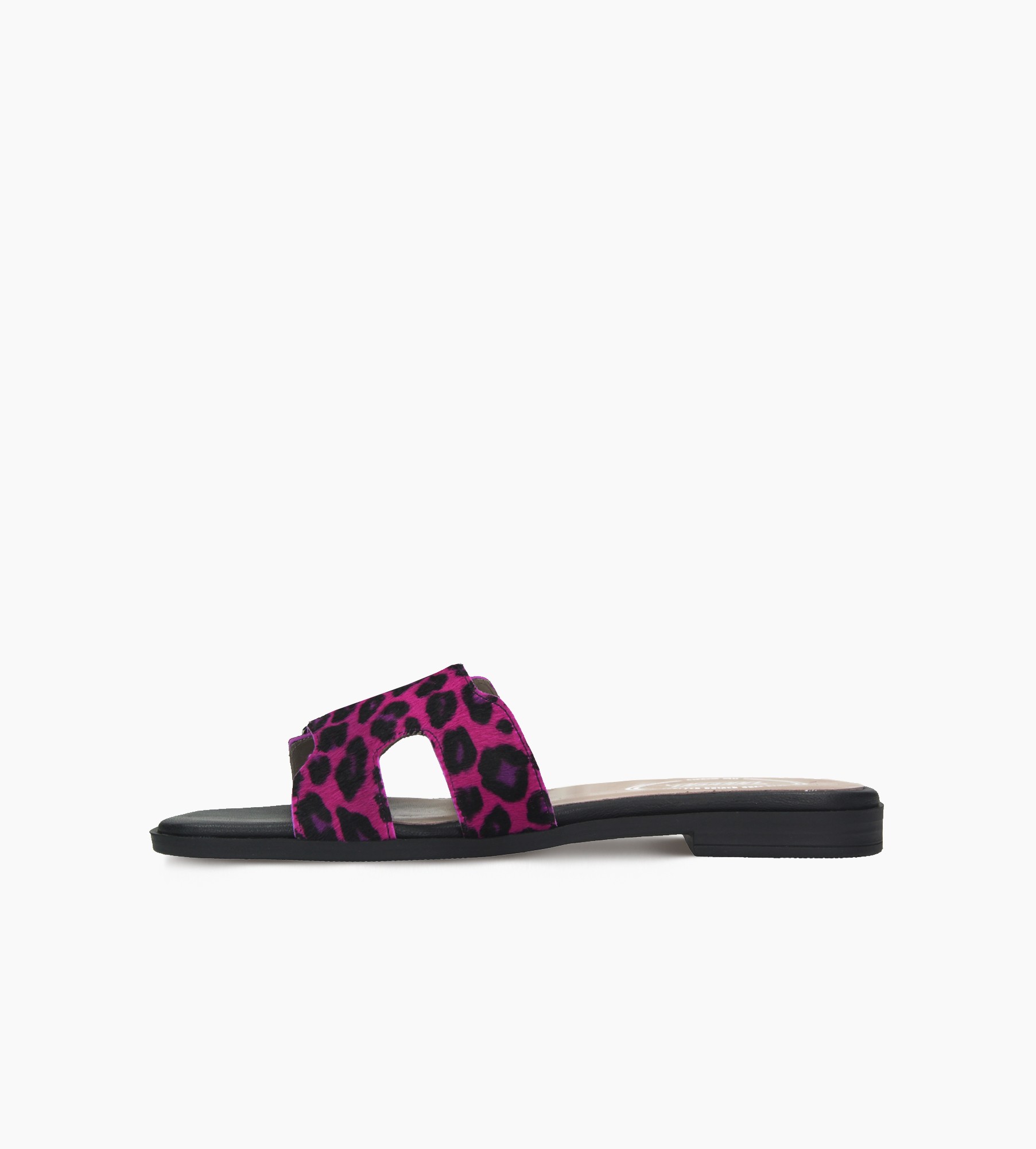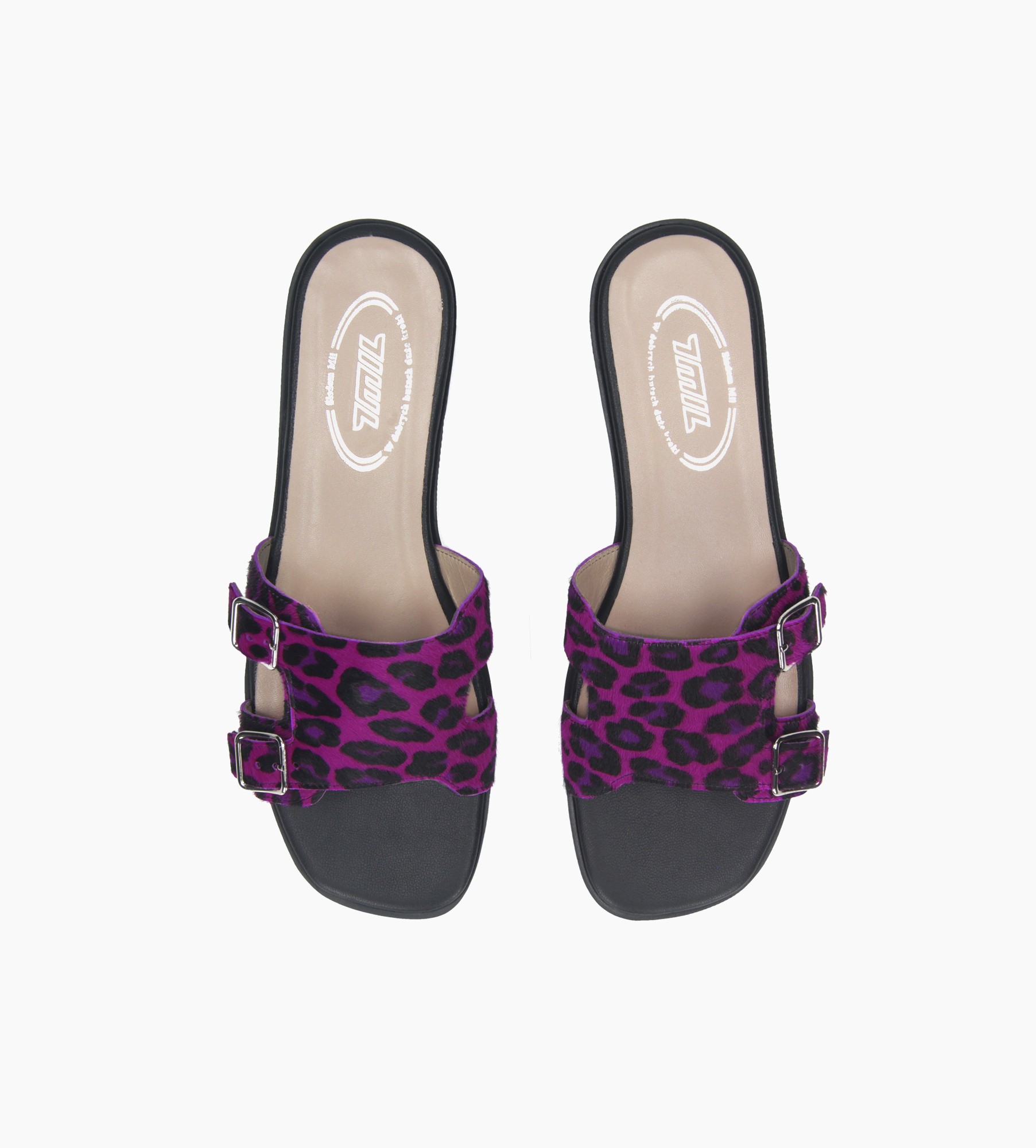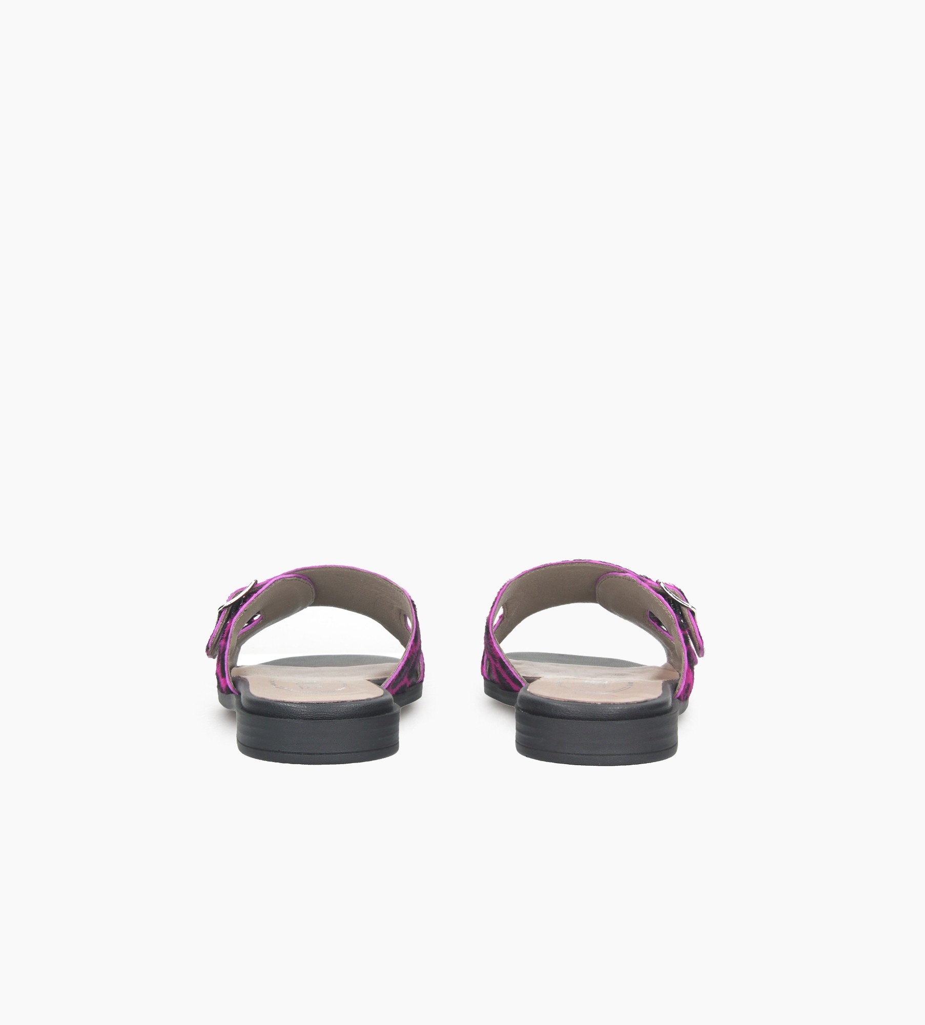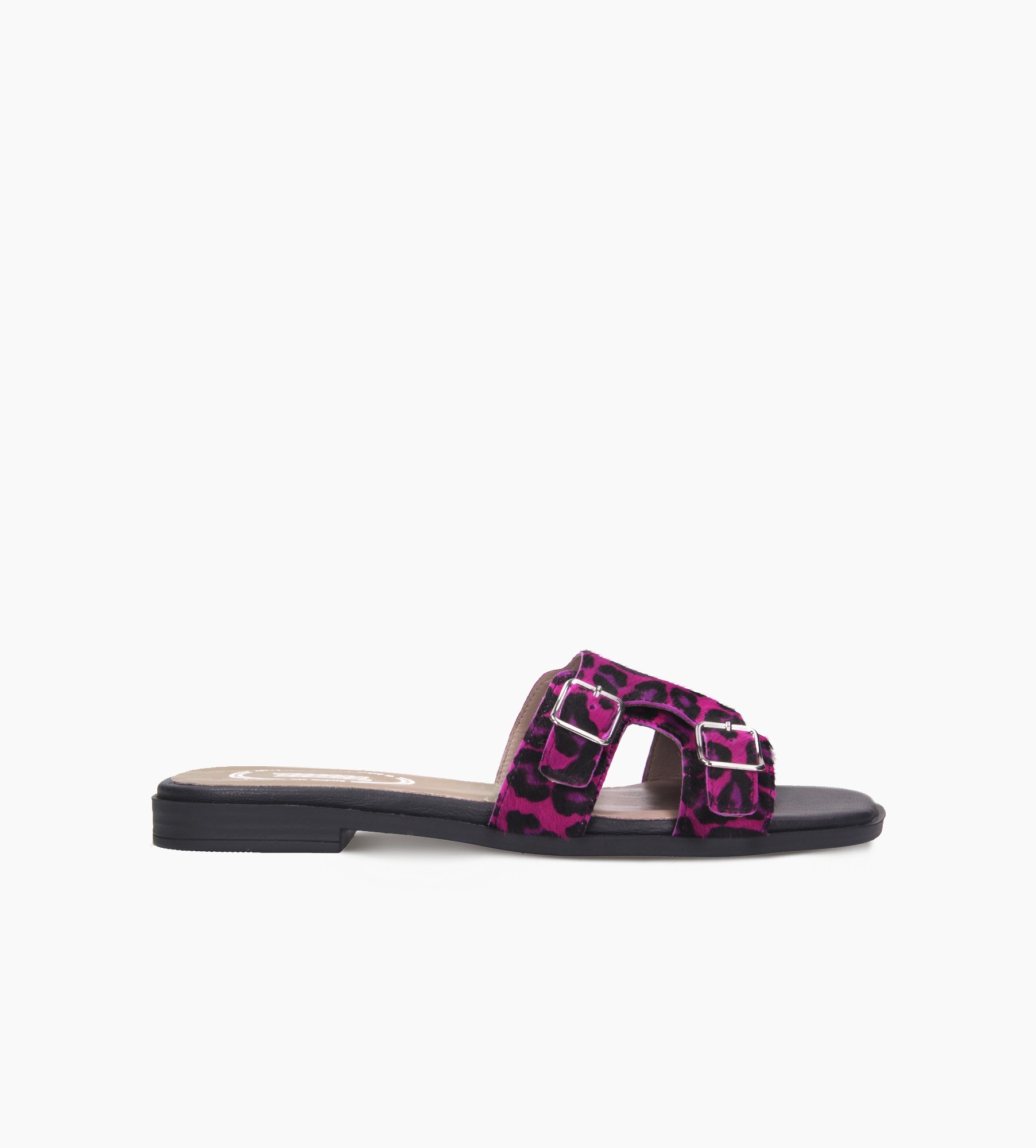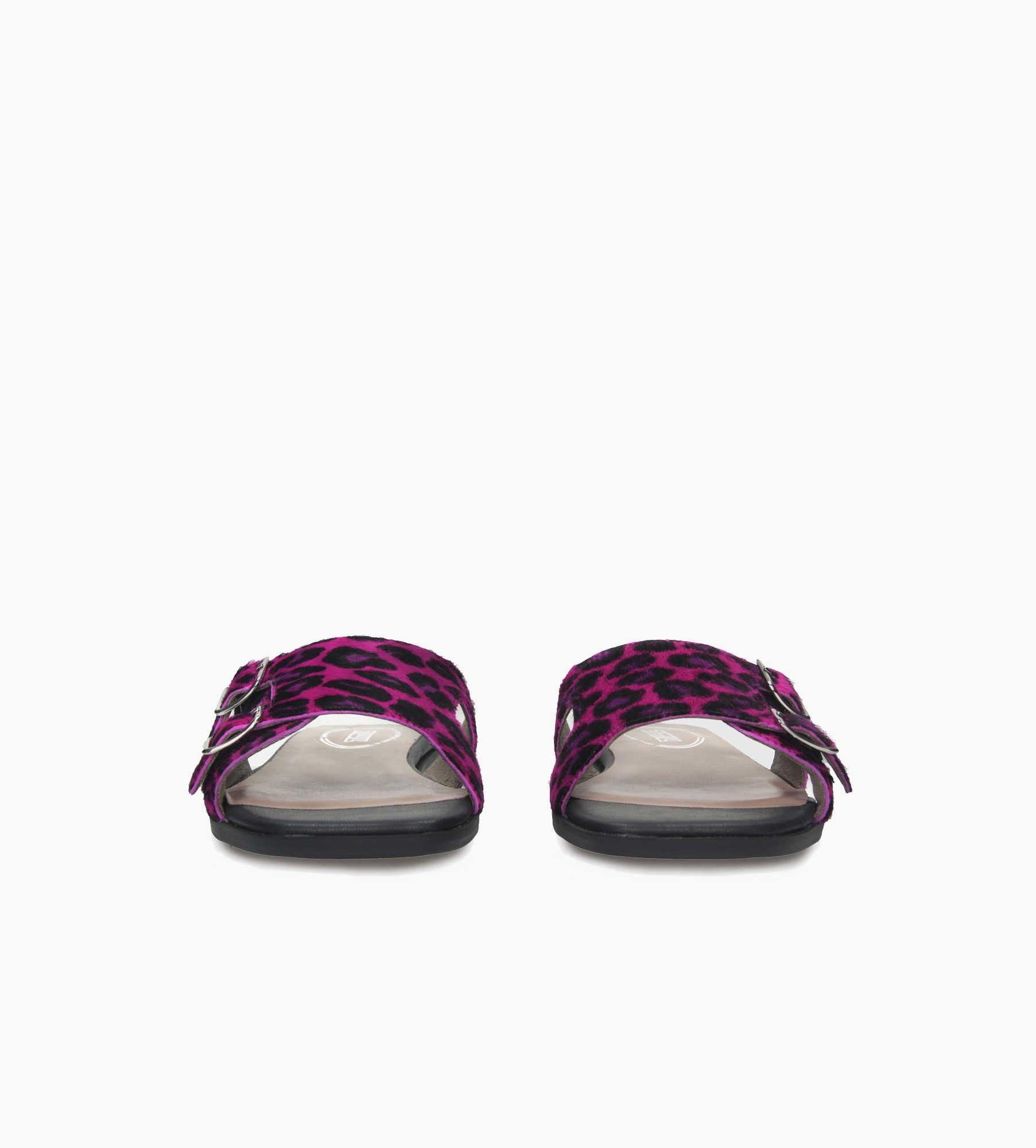Klapki wykonane z naturalnej skóry koziej z włosiem w kolorze fuksji ze zwierzęcym printem są kwintesencją kobiecego wdzięku i elegancji. Nie tylko prezentują się zjawiskowo, ale również zapewniają niesamowity komfort noszenia. Dodatkowym atutem jest możliwość regulacji paska, co pozwala na idealne dopasowanie do stopy. Wkładka butów, wykonana z najwyższej jakości skóry naturalnej jagnięcej, idealnie dopasowuje się do kształtu stopy, gwarantując nie tylko wygodę, ale również utrzymując stopy w idealnym stanie. Niski obcas o wysokości 2 centymetrów dodaje lekkości i wygody podczas użytkowania.