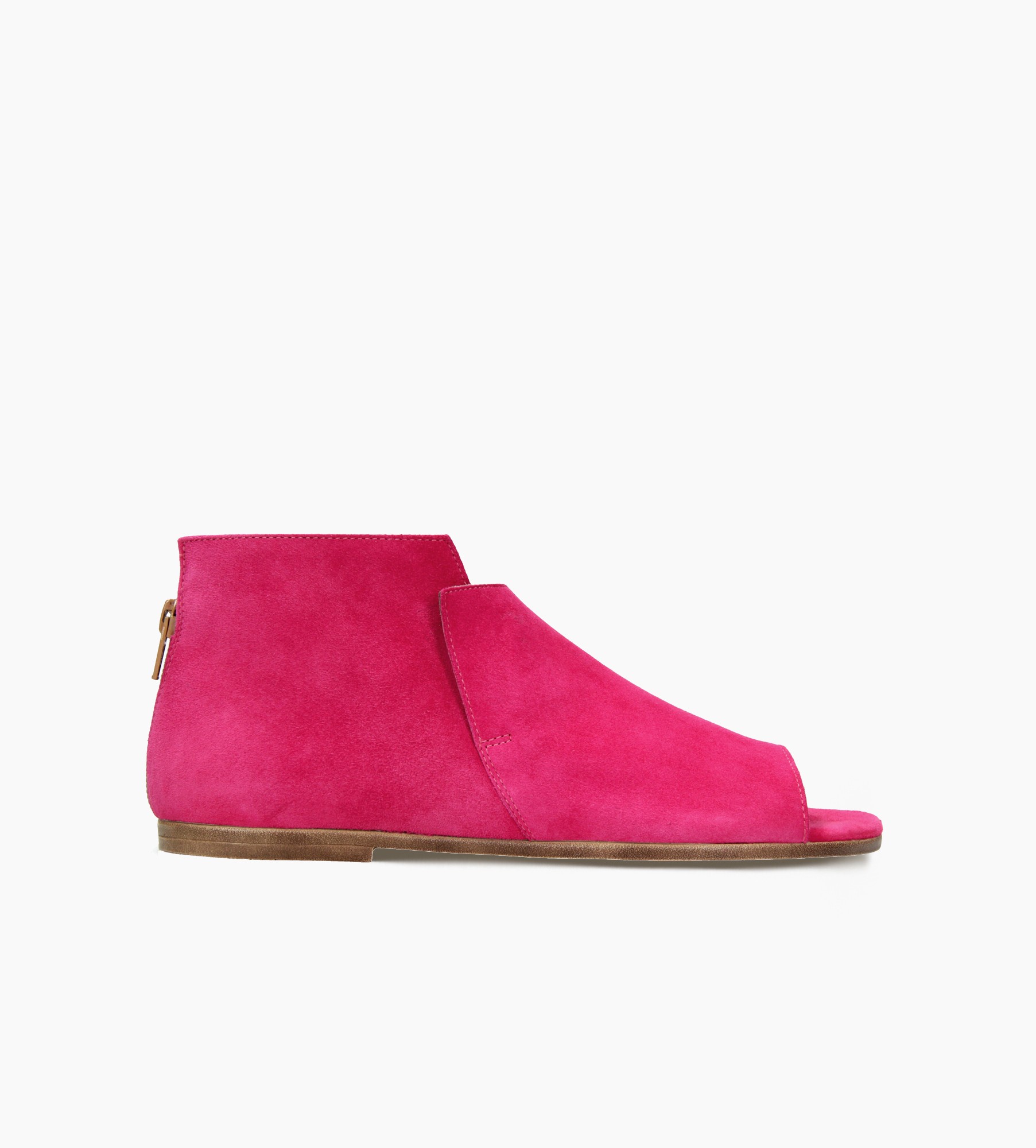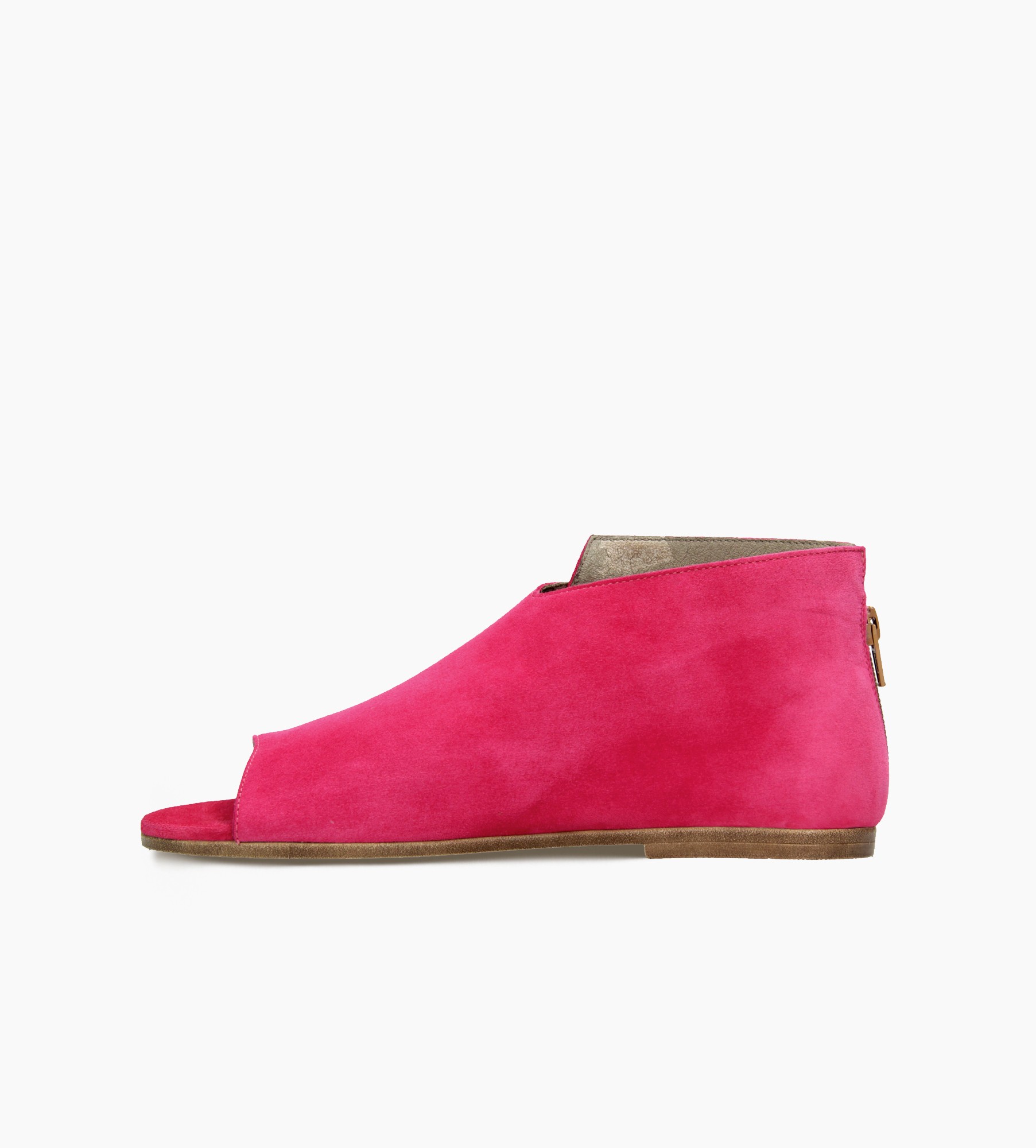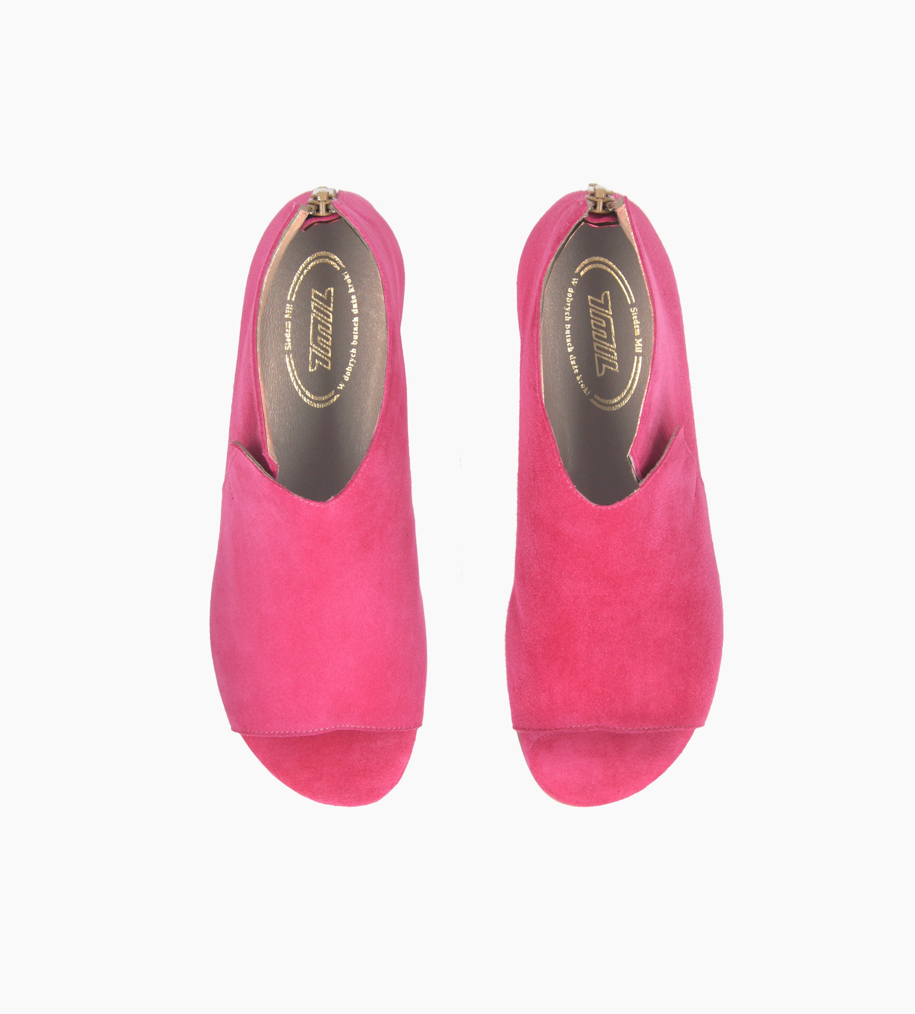 Różowe sandały damskie w bardzo wyrazistym kolorze. Wykonane z najwyższej jakości naturalnej skóry zamszowej, sandały przykuwają wzrok a ich największym atutem jest ogromy komfort i wygoda użytkowania, dodającym każdej stylizacji blasku i wyrafinowania. Skórzana wkładka z naturalnej skóry jagnięcej zapewnia wyjątkowy komfort, a praktyczny suwak na pięcie umożliwia łatwe zakładanie i zdejmowanie. Te sandały to idealny wybór zarówno na codzienne wyjścia, jak i na wyjątkowe okazje.