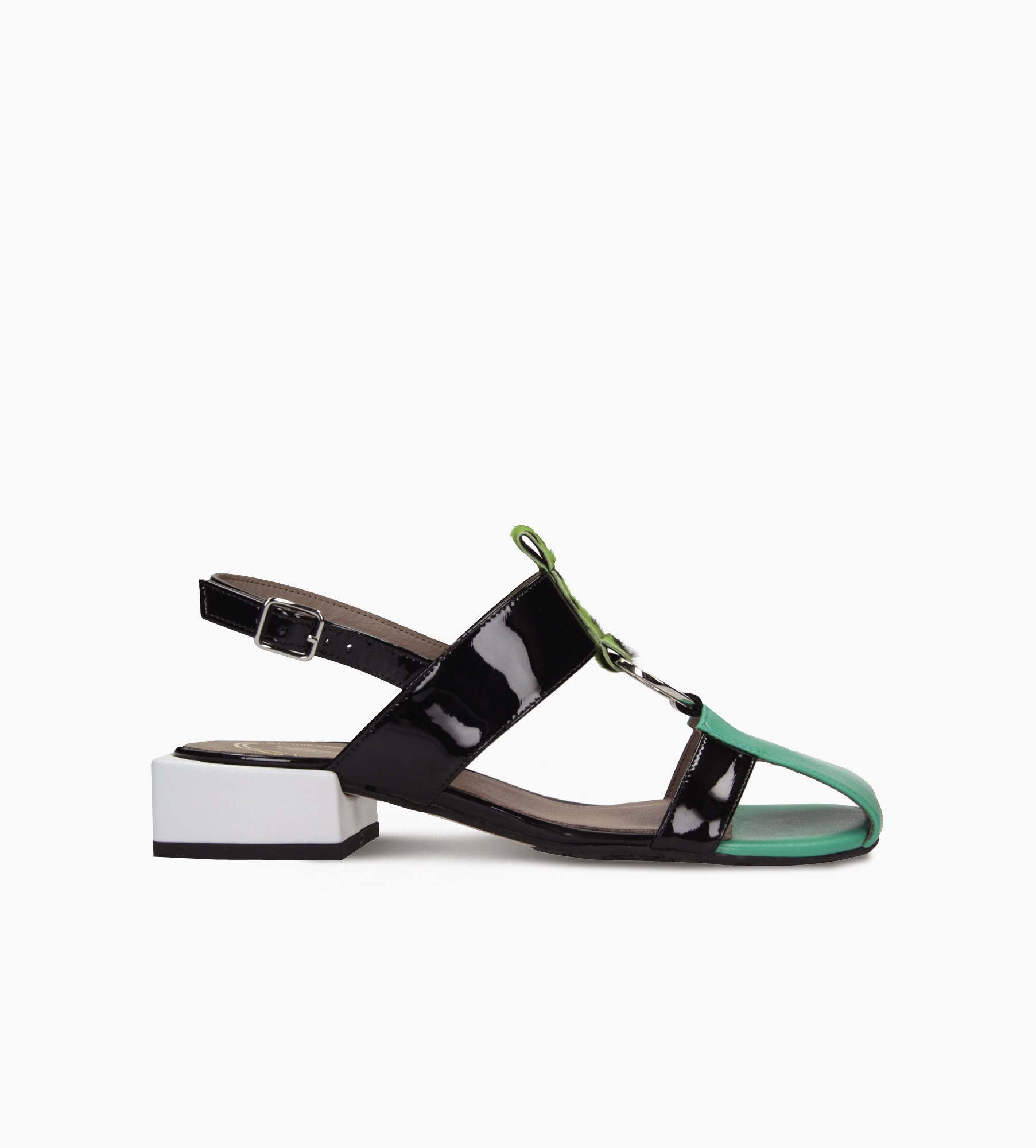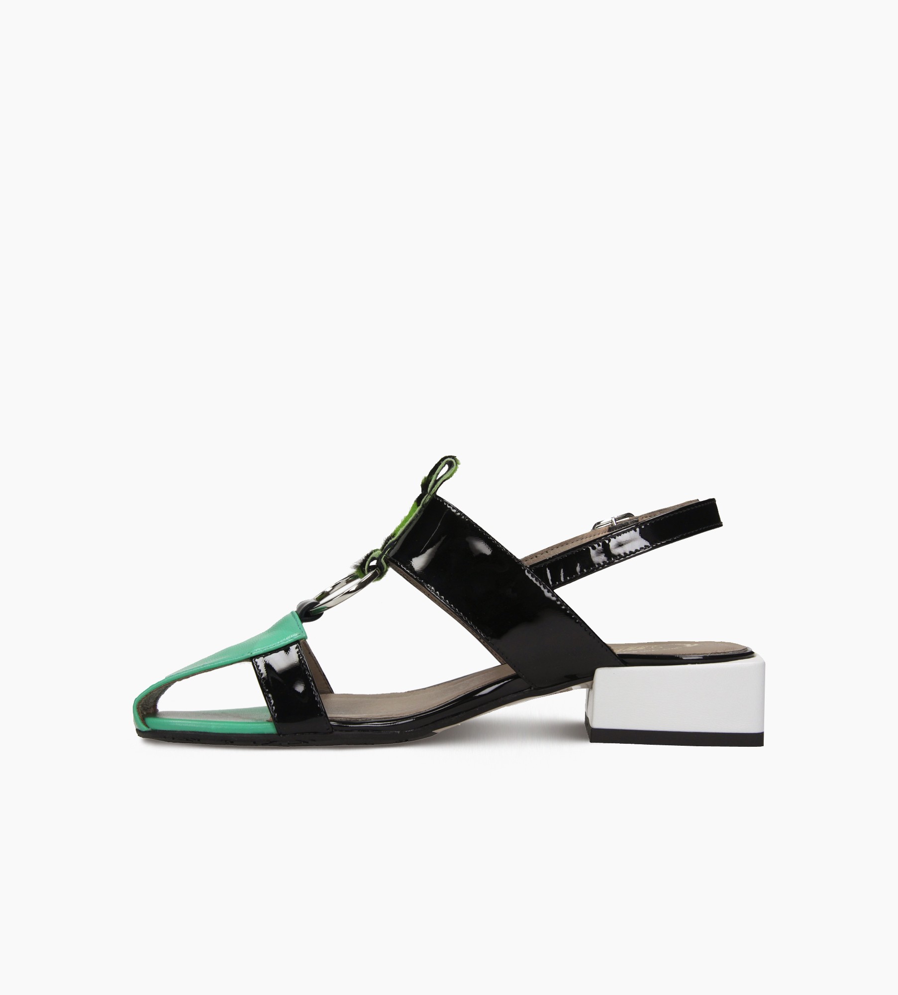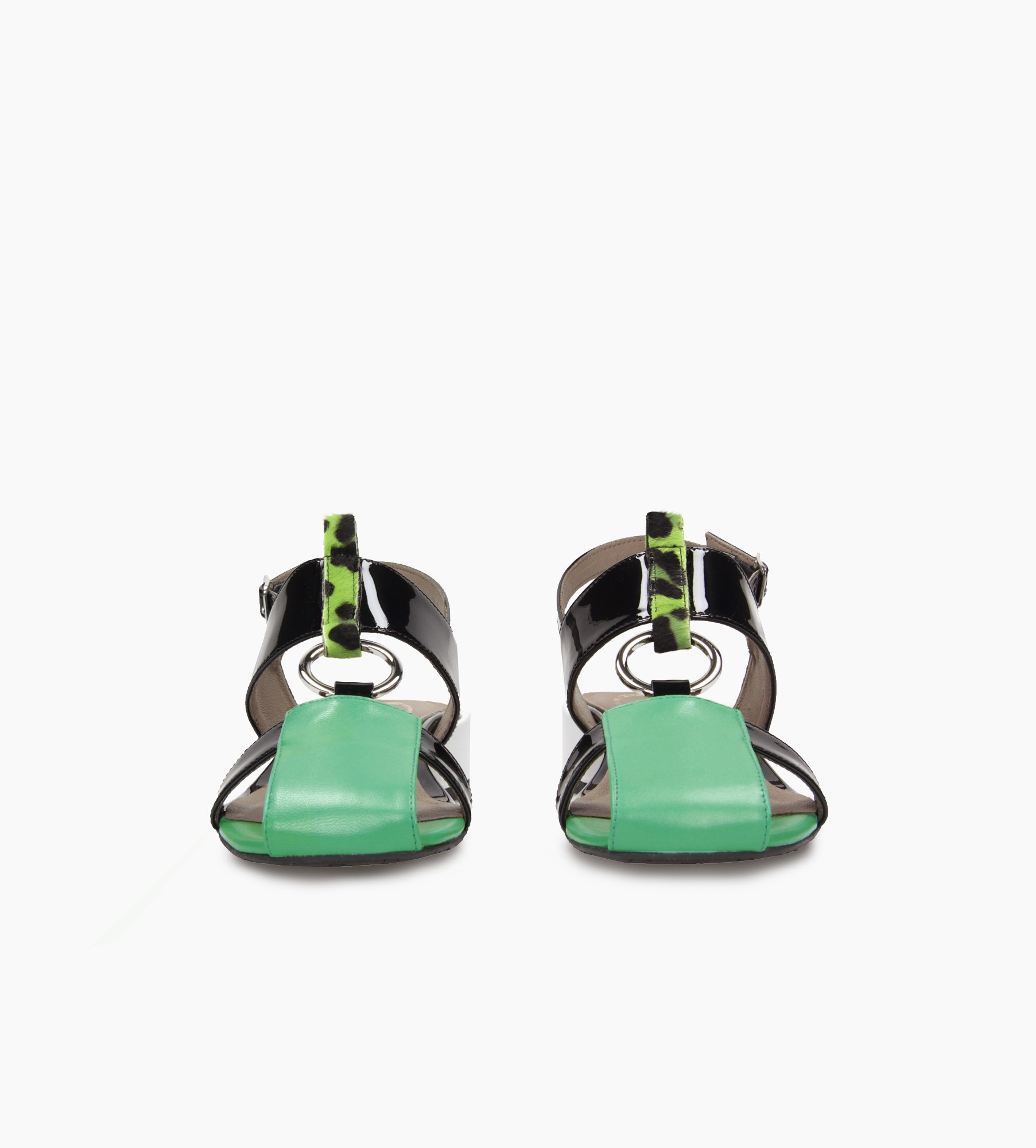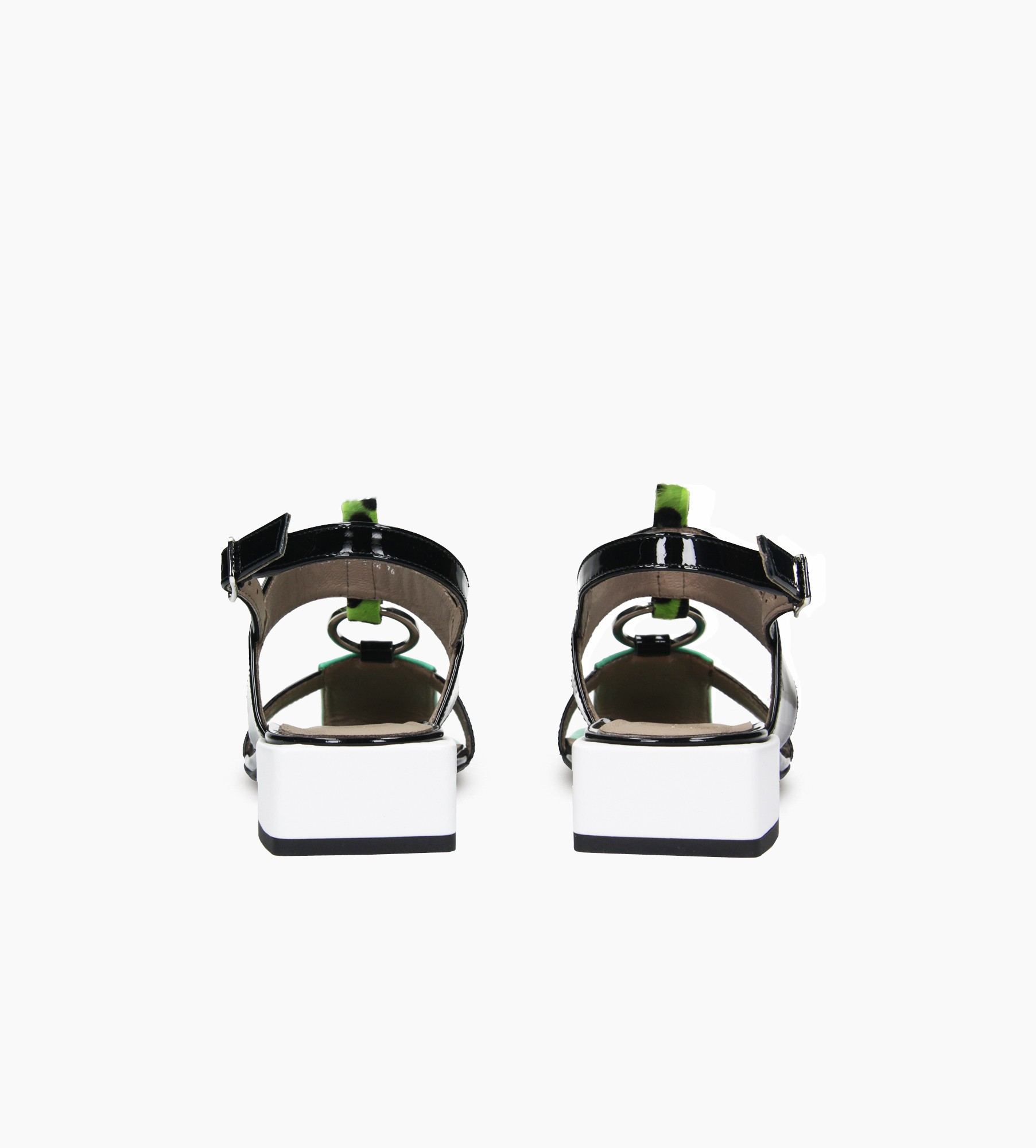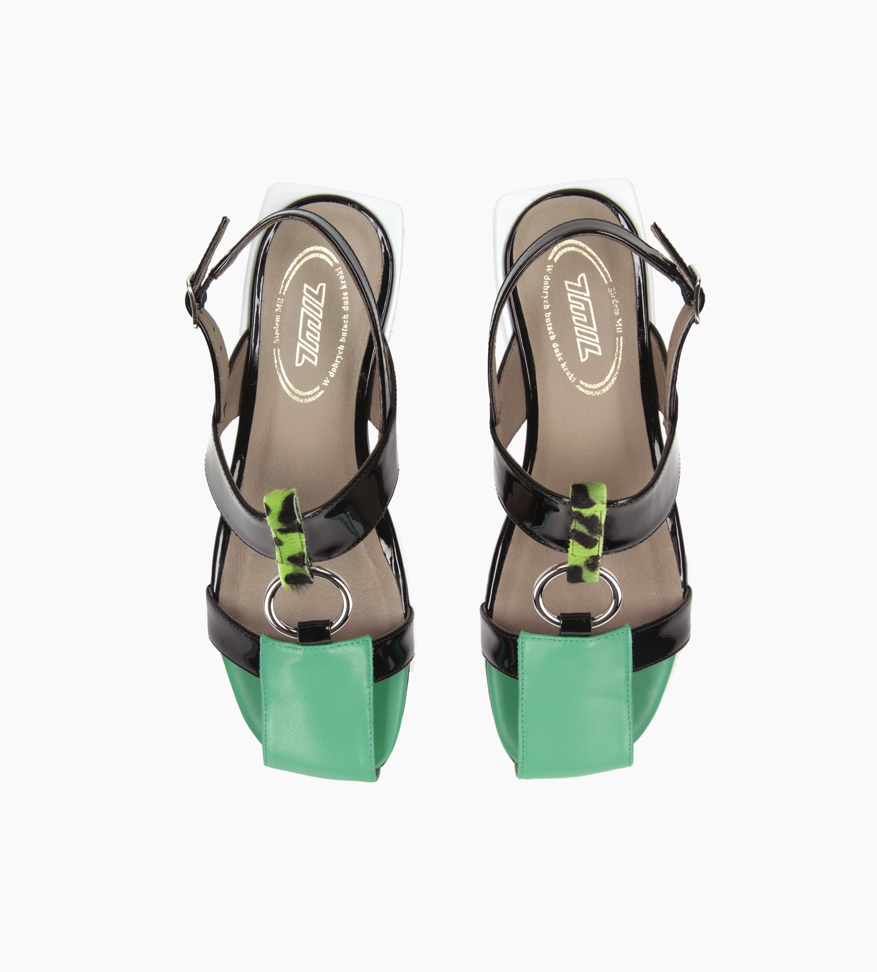 Prezentujemy mutikolorowe sandały, które stanowią esencję współczesnego designu i komfortu. Wykonane z najwyższej jakości naturalnej skóry lakierowanej w zaskakującym połączeniu ozdób koła i ozdobnego paska ze skóry z motywem zwierzęcym. Atrakcyjny design charakteryzuje się szerokimi paskami, które otulają stopę, zapewniając doskonałe wsparcie i komfort użytkowania. Zapięcie umieszczone przy kostce nie tylko umożliwia idealne dopasowanie sandałów.
